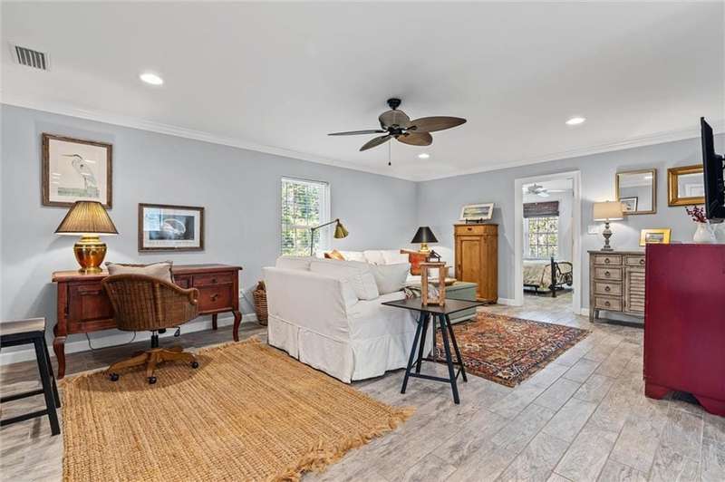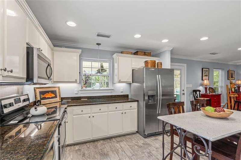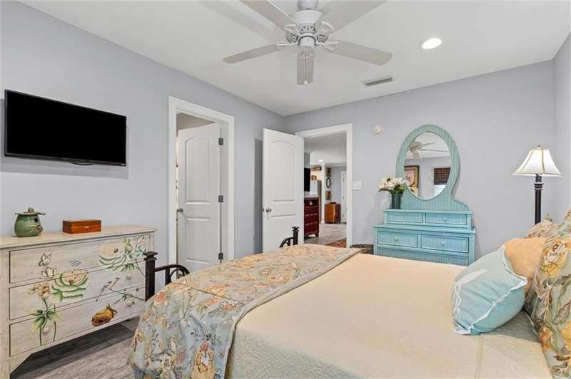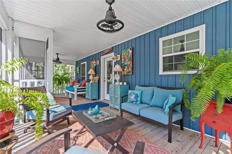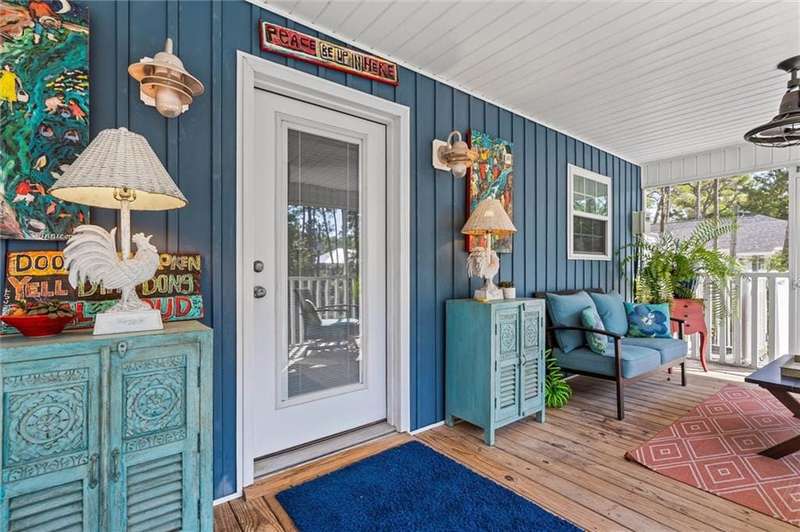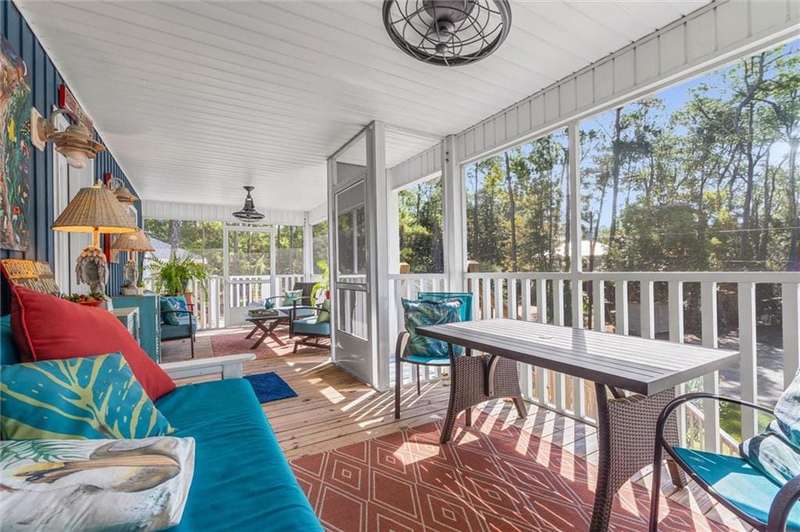 This lovely Island home is a must see! Thoughtful design elements and stylish details can be found throughout. The 2-bedroom, 2-bathroom floor plan flows nicely with large and open living areas. You will enter an oasis on the screened-in front porch and feel your cares melt away. The 11 x 30 porch is well thought out with screening underneath, oscillating ceiling fans, plenty of outlets, and a well-positioned hose bibs for your plants. There is a second screen door that leads to the cargo lift to bring up all your groceries and deliveries. The screen porch is the perfect area for outdoor living and dining! Upon entering the home, you will find stylish furniture and decor throughout. The main living area and kitchen has crown molding, and there is durable wood plank ceramic tile throughout the home. The spacious eat-in kitchen has granite countertops, stainless steel appliances, and white wood cabinets. The U-shaped design is very functional and offers tons of cabinet space. The primary bedroom has an en-suite bathroom with a tub and shower combo and a walk-in closet. The guest bath is immediately adjacent to the second bedroom and includes a double vanity and large shower. Both bedrooms overlook the beautiful and well-maintained back yard. Under the home features a 10 x 16 storage area, and a 15 x 20 fenced area for pets. Beautiful details and landscaping make the downstairs area great for entertaining. Make this home the jumping off point for all of your Island adventures! From this neighborhood, you are just a short walk from the bicycle path, boat launches, and several local parks. The bay is right around the corner- you can access the water at the end of Ft Conde St, or a block over at Forney Johnson Park, which features a sandy beach and picnic area under the oak trees. The bird sanctuary, Steiner Preserve, and several other conservation areas are only a short walk away. The east end beach is close by for a day in the sand or load the golf cart up and head to Dority's for live music and fun! Schedule a showing today and start your island life! *Buyer to review deed restrictions, zoning or local regulations, and other matters or record. Buyer to verify all information independently. Any and all updates are per Seller(s).