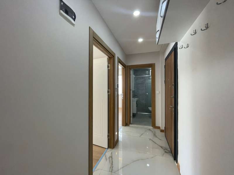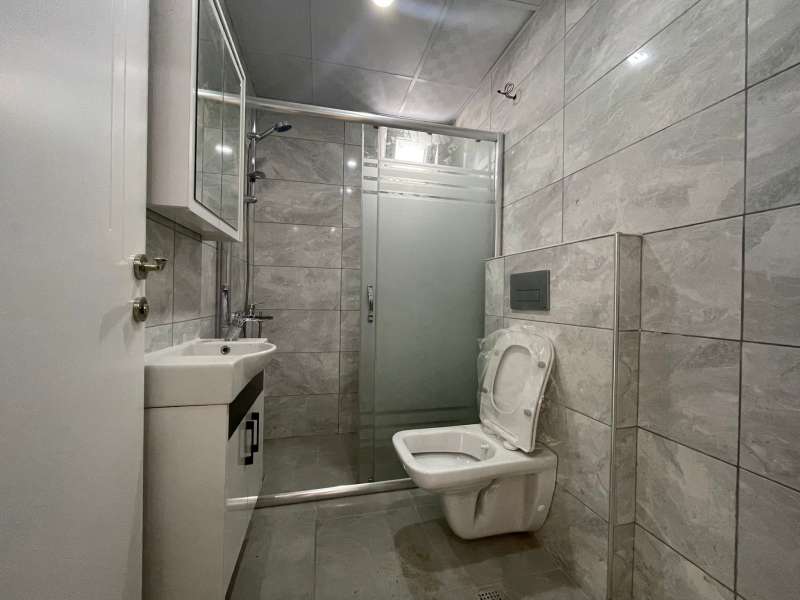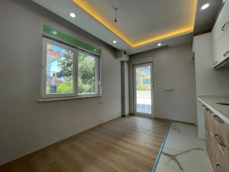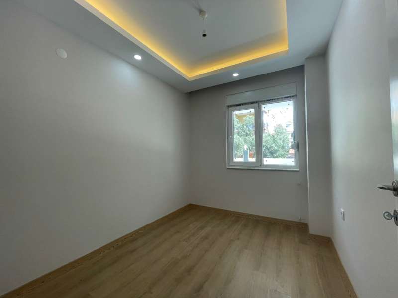 The flat for sale in Muratpasa, Antalya consists of 2 bedrooms, a living room, an open-plan kitchen, a bathroom, and a balcony. It has internet, natural gas and air conditioning infrastructure, a shower cabin, steel door, shutters, and a cloakroom.