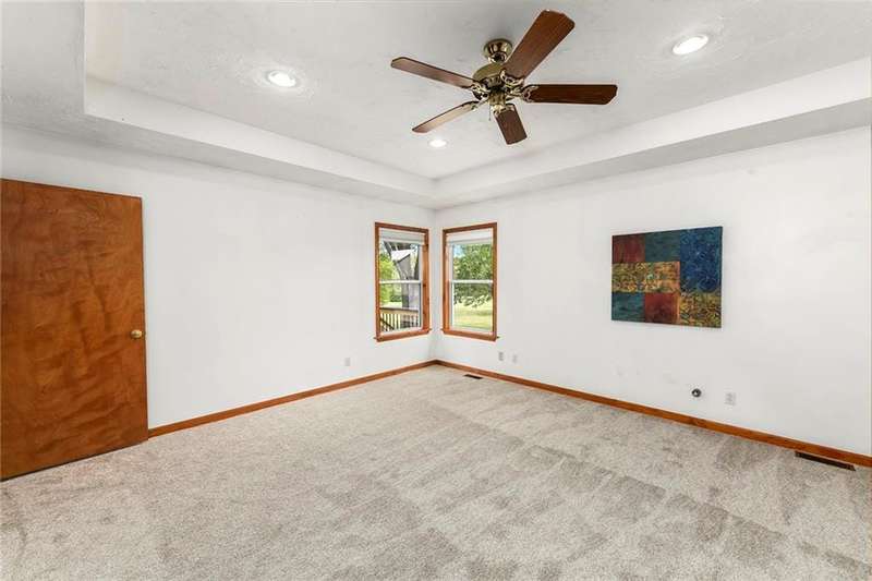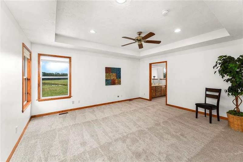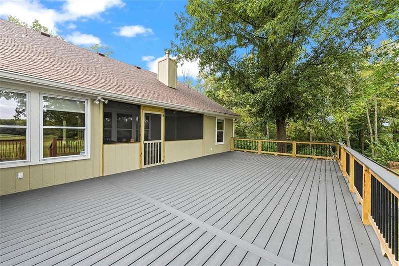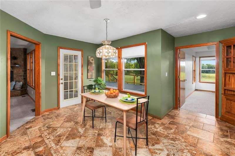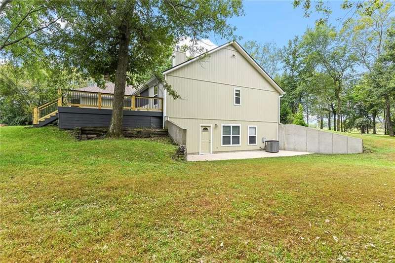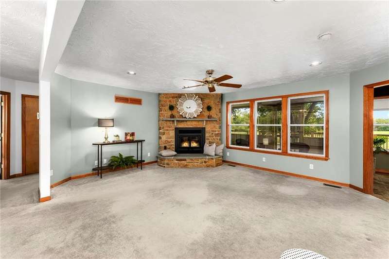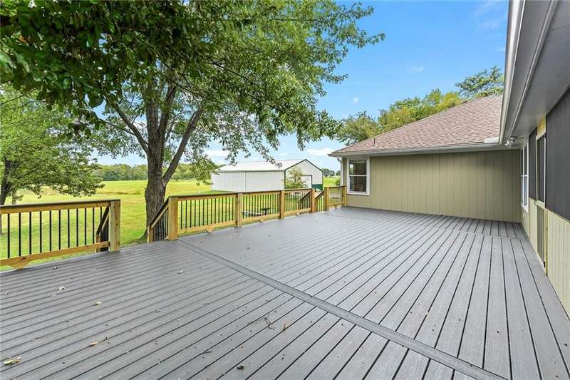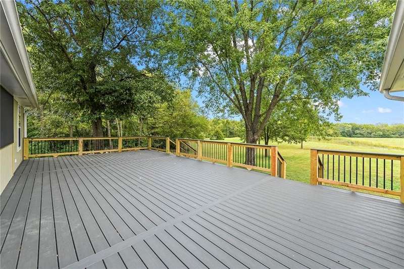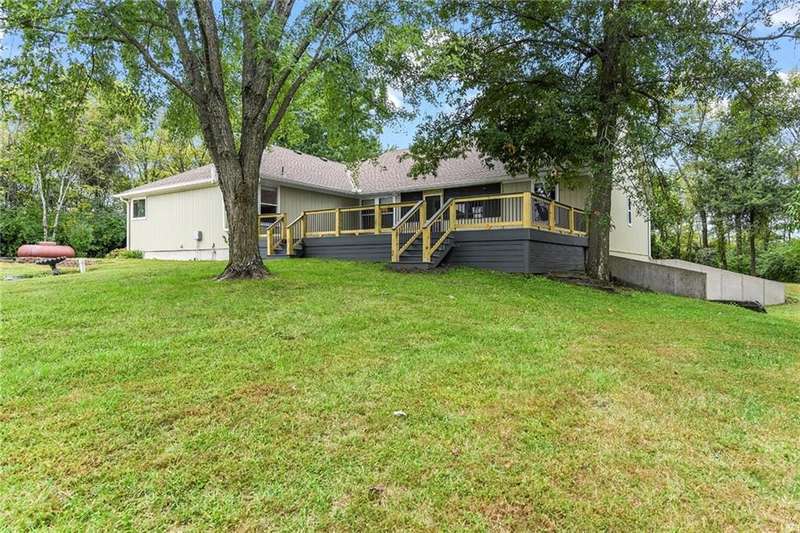 They say location..location..location...this one has it! A beautiful piece of property and very well maintained home close to town on 15.1 acres (much of it wooded). Just about a block off of blacktop. Come enjoy country living with the convenience of being close too, Harrisonville, Raymore, Belton, Greenwood, Peculiar and Lee's Summit. Newer items include: roof (5 yrs), HVAC, insulated garage doors and direct drive openers, septic tanks, dbl wall ovens, (a more complete list is in supplements). One level living includes new carpet in the primary BR (2 huge w/i closets leading into the laundry RM), fresh paint in the 2nd BR and lower level. The lower level is huge and includes a 4th BR (with egress), huge game room, plus another carpeted living area, full bath and a room to suit your own lifestyle, would make a great hobby/craft room or finish it out for a 2nd kitchen...could be a complete mother-in-law set up. There is a bunker (storm shelter) area...and it is a walk-out. Enjoy fishing and wildlife as there is a nice pond with a private dock. The 50X40 Metal outbuilding is complete with concrete floor and electricity (seller is leaving much of the shelving, air compressor & more (again see supplement to the SD for a complete list). The treed entrance adds to the charm of this country property. Don't miss it!