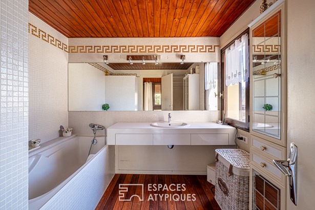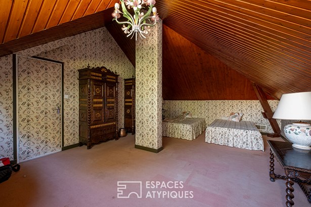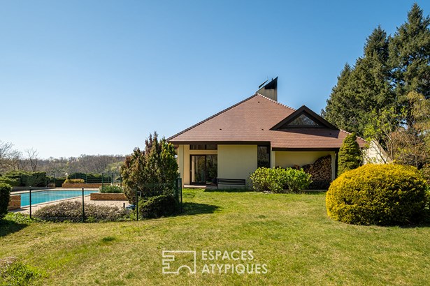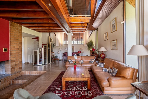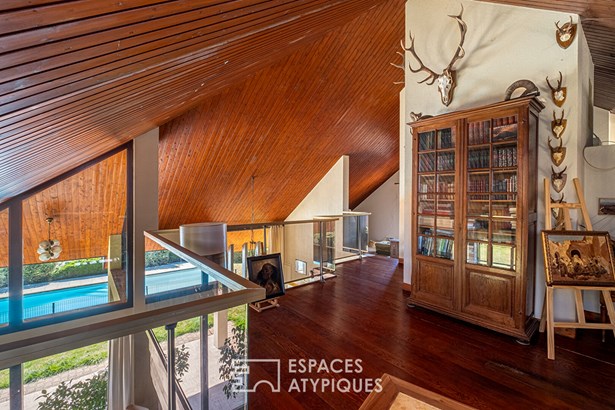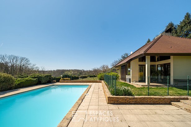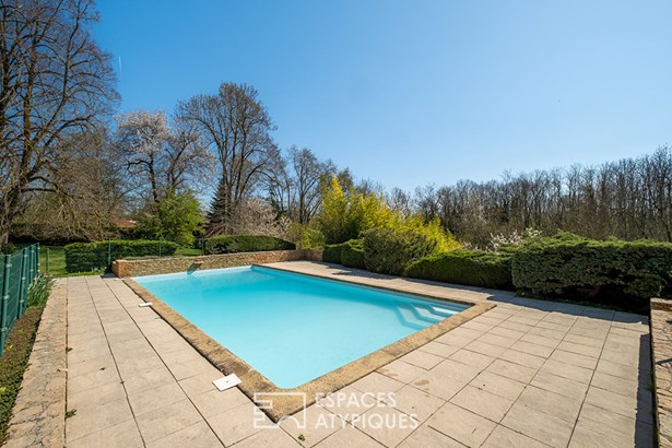 Nestled in the heart of a green and peaceful environment, in Bois de Cessieu, this architect-designed house made of shuttered concrete dating from 1979 offers a surface area of 258 sqm on a vast wooded plot of over 13,300 sqm. Designed to combine comfort, elegance, and originality, it stands out for its beautiful volumes, natural light, and unique features. The entrance reveals a fluid circulation towards a separate kitchen and a vast living room with a fireplace, open to the dining room. The high ceilings, the cathedral ceiling, and the Oregon pine woodwork bring warmth and character to the whole. The ground floor also accommodates three bedrooms, one of which has a private bathroom, an additional bathroom, two toilets, and plenty of storage space. Upstairs, a mezzanine open to the living room serves as an office, extended by a games room with a roof terrace, two additional bedrooms, a bathroom, and a toilet. Each space has been designed to offer comfort, functionality, and light. Outside, the landscaped garden unfolds around the house in a rural atmosphere, with mature trees, relaxation areas, a perfectly integrated swimming pool and rare features such as a vegetable garden, a henhouse or even a deep well. The land, enclosed and planted with trees, guarantees privacy and absolute calm. A unique property with a strong character, offering a green lifestyle in a preserved place, ideal for lovers of architecture and nature. - wine cellar - garage - 48-meter well ENERGY CLASS: F / CLIMATE CLASS: F Estimated average amount of annual energy expenditure for standard use, established from energy prices for the year 2021, 2022, 2023: between EUR8,160 and EUR11,080. Contact: Leeroy: ?06 48 89 94 44?
