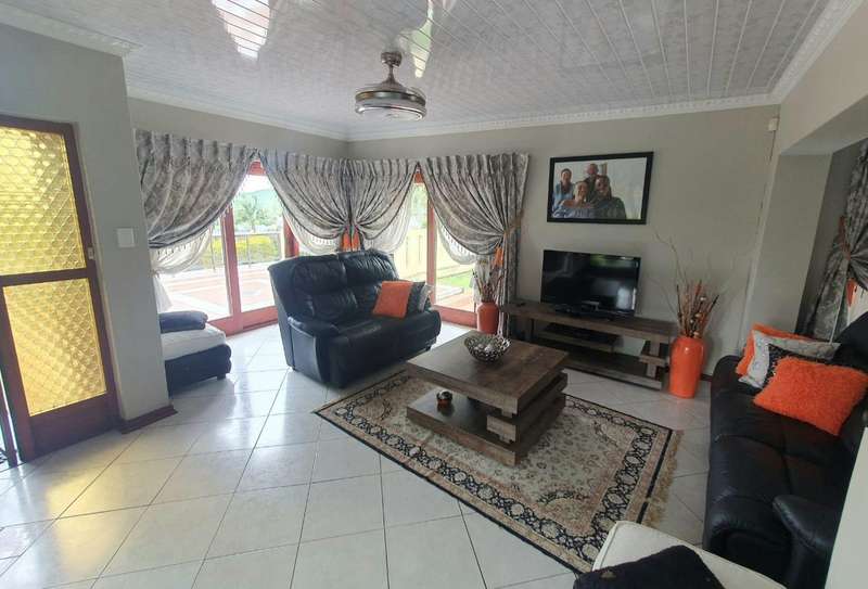 Stunning family home with 3 bedrooms, 2 Lounges, Dinning space and Separate TV room. Beautiful view from deck across the valley. Double garage with lot of additional storage space on enclosed back veranda with undercover braai. Outside ablutions and wendy house for domectic.