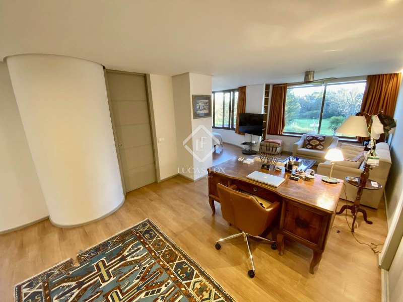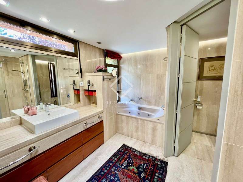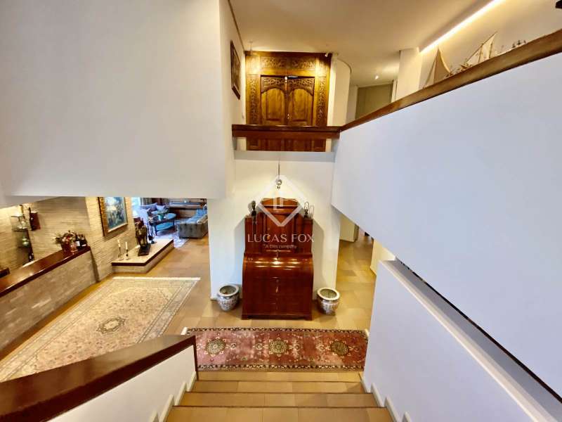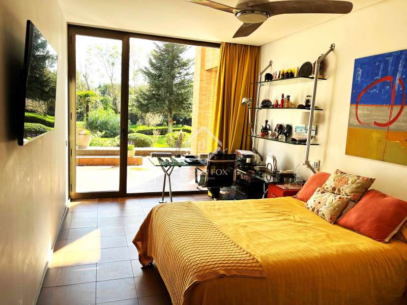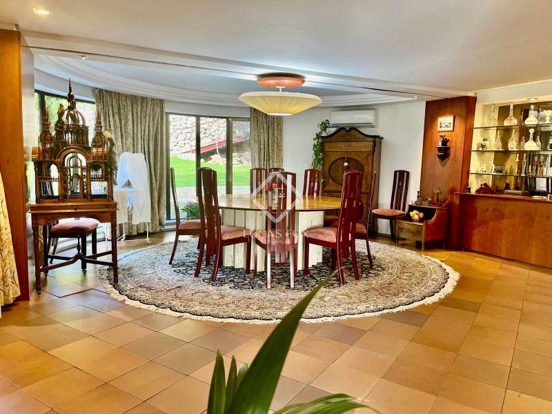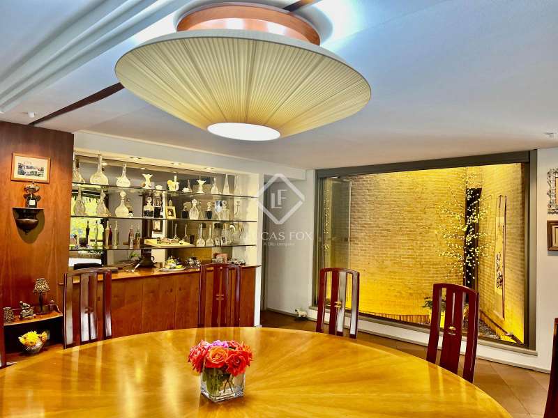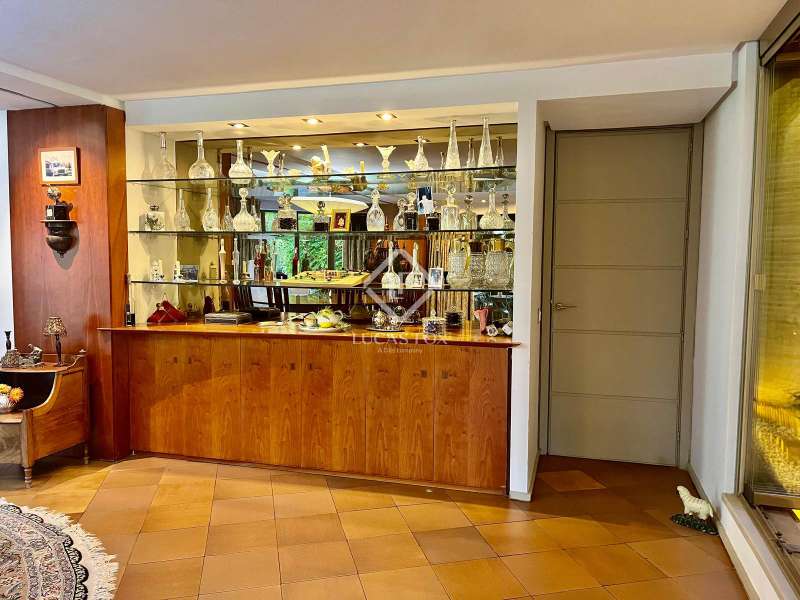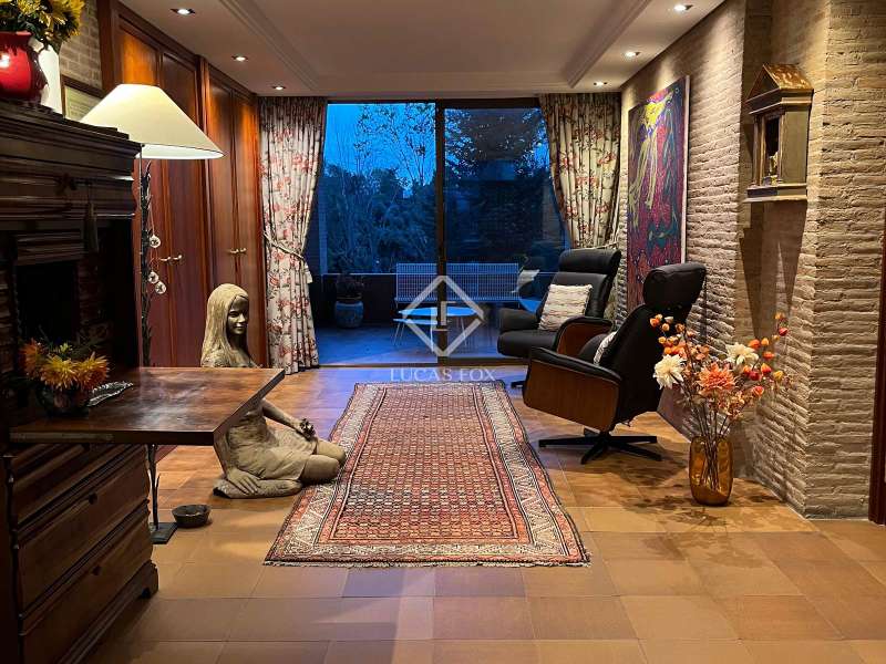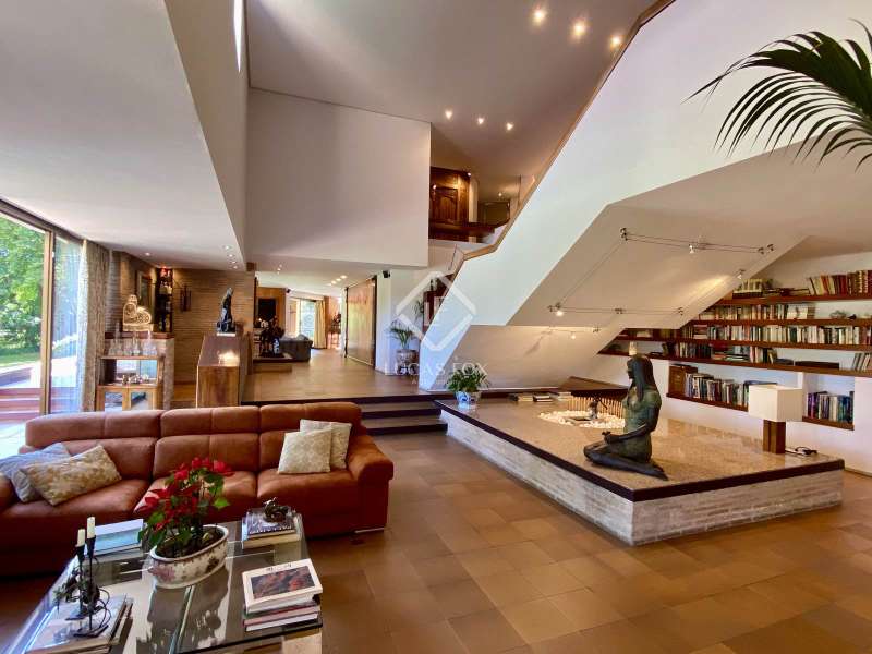 Lucas Fox International Properties is proud to present this unique property, located in one of the main areas of La Moraleja, with an entrance through a cul-de-sac. This magnificent villa was built on a unique plot and enjoys the best position, a permanent water spring, historical buildings and impressive views of the golf course, bordering the plot for about 150 linear metres. The property, designed by the prestigious architect Javier Carvajal, has a timeless and avant-garde design. It has been included in different books that bring together the most representative architectural works of the 20th century. The property was completely renovated in 2020 and has an area of approximately 1,400 m², with very bright rooms and views of the golf course. It is accessed from the upper floor, by a 3-metre wide pedestrian entrance. On one of its sides, a Japanese garden has been built and on the other, a pool of water that cascades down into the swimming pool. Upon entering, we find a large entrance hall, equipped with a terrace that provides the first extraordinary views of the golf course and a large circular two-piece guest bathroom. Later we find two large living rooms, one of them with a double height ceiling and three levels to separate the three spaces, each with a fireplace. Next, there is a cinema room with capacity for 14 people with air conditioning and state-of-the-art equipment, and a circular dining room for 14 diners with air conditioning and access through glass doors to a decorative tiled brick courtyard. The night area includes the 63 m² main suite with access from a private circular entrance hall. It includes a seating area with a fireplace and air conditioning, wall-mounted plasma television with home cinema, separate oak dressing room, large shoe wardrobe, a travertine marble bathroom with whirlpool tub, separate shower and golf views and its own circular terrace. Next, we find a second 58 m² bedroom with a private bathroom, a lounge, views of the golf course, the waterfall and the tower. Two more bedrooms with a complete bathroom and a large closet space complete the night area. The service staff area includes a spacious kitchen, with an indoor and an outdoor dining room which is accessed through an area with a glass floor and a large pantry with a service lift, which is directly connected to the parking space, as well as a bright ironing and utility room with direct access to the garden. All these spaces are furnished with top quality pieces from the Santos brand. Finally, there is a brick 20 m² circular wine cellar or games room with a separate entrance through the garden. There is also an office of 35 m² which is separate from the property, with air conditioning, a service staff apartment with two bedrooms (or a bedroom and living room) and a complete bathroom. Finally, there are rooms with various uses, such as a wardrobe, changing rooms, pool bathroom, materials storage, garden room, bicycle room, and rubbish room. Outside, we find a large barbecue area with a large honed pink granite table with capacity for 14 diners, with additional areas for another 14 people, built-in metal cabinets, sink and metal lattice on the roof of the entire complex, covered by vegetation that provides shade to that area, with two Argentinian barbecues and a professional wood-fired oven made of brick. On the other hand, there is a fully equipped chill-out area, with a honed granite bar counter, professional refrigerators, beer tap, television and pellet heating. It is presented glazed for use in winter with Lumon glass with magnificent views. Finally, there is a covered parking area for two cars that could easily be transformed into a closed garage and an open garage for at least six more, which could be covered, as well as a large outdoor car park in the cul-de-sac area. In summary, this beautiful and luxurious high-end house is presented in perfect condition, making it one of the largest and most impressive homes in the Moraleja area, not far from the town centre of Alcobendas and of all its benefits. Contact Lucas Fox today for more information or to arrange a viewing. We work seven days a week to adapt to the needs of our clients.