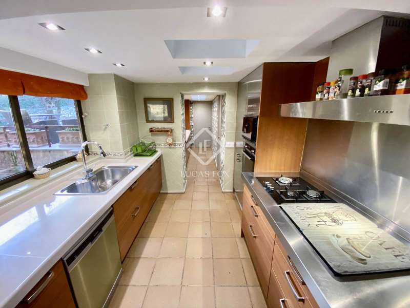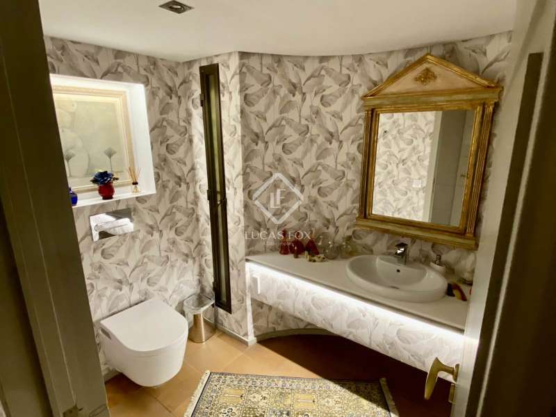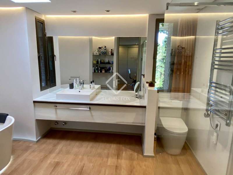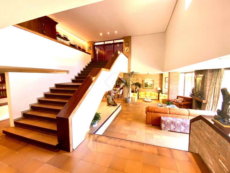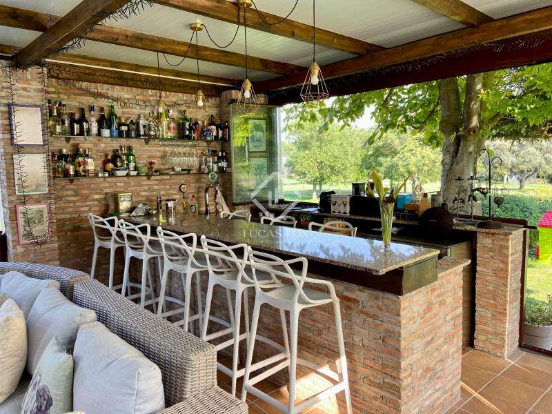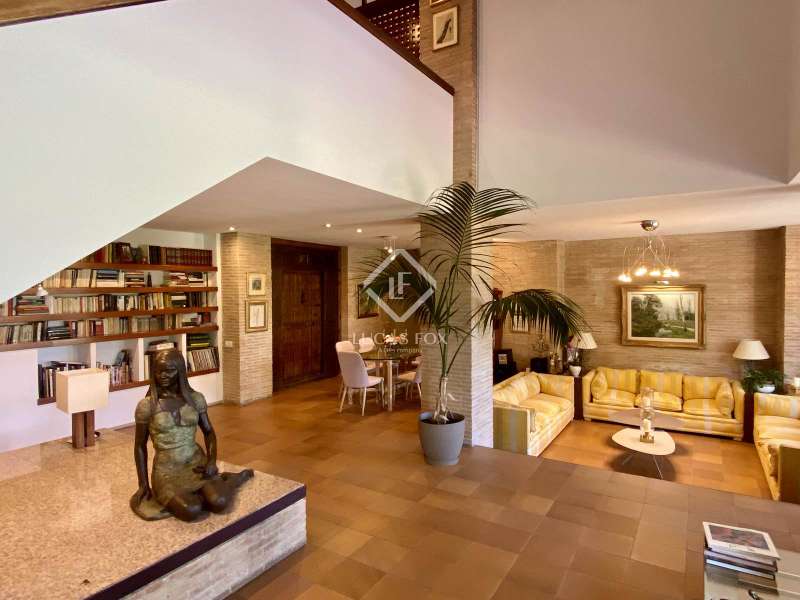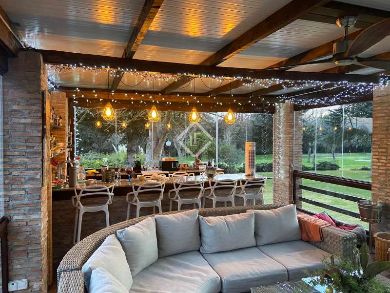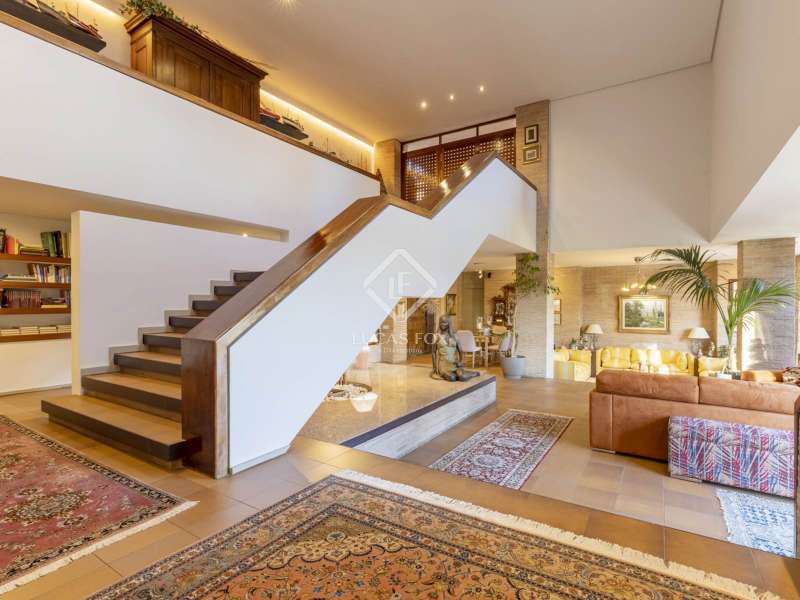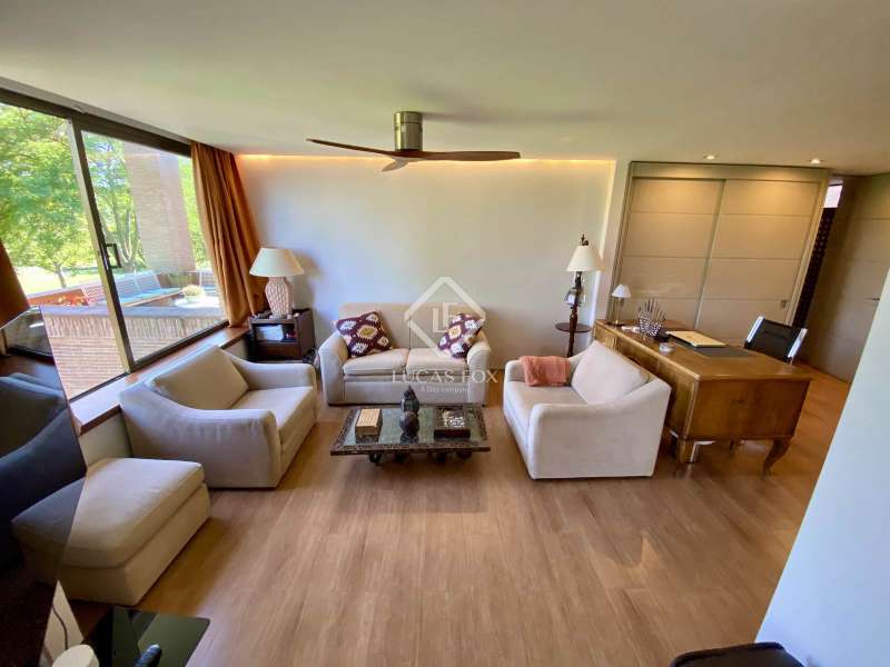 Lucas Fox International Properties is proud to present this unique property, located in one of the main areas of La Moraleja, with an entrance through a cul-de-sac. This magnificent villa was built on a unique plot and enjoys the best position, a permanent water spring, historical buildings and impressive views of the golf course, bordering the plot for about 150 linear metres. The property, designed by the prestigious architect Javier Carvajal, has a timeless and avant-garde design. It has been included in different books that bring together the most representative architectural works of the 20th century. The property was completely renovated in 2020 and has an area of approximately 1,400 m², with very bright rooms and views of the golf course. It is accessed from the upper floor, by a 3-metre wide pedestrian entrance. On one of its sides, a Japanese garden has been built and on the other, a pool of water that cascades down into the swimming pool. Upon entering, we find a large entrance hall, equipped with a terrace that provides the first extraordinary views of the golf course and a large circular two-piece guest bathroom. Later we find two large living rooms, one of them with a double height ceiling and three levels to separate the three spaces, each with a fireplace. Next, there is a cinema room with capacity for 14 people with air conditioning and state-of-the-art equipment, and a circular dining room for 14 diners with air conditioning and access through glass doors to a decorative tiled brick courtyard. The night area includes the 63 m² main suite with access from a private circular entrance hall. It includes a seating area with a fireplace and air conditioning, wall-mounted plasma television with home cinema, separate oak dressing room, large shoe wardrobe, a travertine marble bathroom with whirlpool tub, separate shower and golf views and its own circular terrace. Next, we find a second 58 m² bedroom with a private bathroom, a lounge, views of the golf course, the waterfall and the tower. Two more bedrooms with a complete bathroom and a large closet space complete the night area. The service staff area includes a spacious kitchen, with an indoor and an outdoor dining room which is accessed through an area with a glass floor and a large pantry with a service lift, which is directly connected to the parking space, as well as a bright ironing and utility room with direct access to the garden. All these spaces are furnished with top quality pieces from the Santos brand. Finally, there is a brick 20 m² circular wine cellar or games room with a separate entrance through the garden. There is also an office of 35 m² which is separate from the property, with air conditioning, a service staff apartment with two bedrooms (or a bedroom and living room) and a complete bathroom. Finally, there are rooms with various uses, such as a wardrobe, changing rooms, pool bathroom, materials storage, garden room, bicycle room, and rubbish room. Outside, we find a large barbecue area with a large honed pink granite table with capacity for 14 diners, with additional areas for another 14 people, built-in metal cabinets, sink and metal lattice on the roof of the entire complex, covered by vegetation that provides shade to that area, with two Argentinian barbecues and a professional wood-fired oven made of brick. On the other hand, there is a fully equipped chill-out area, with a honed granite bar counter, professional refrigerators, beer tap, television and pellet heating. It is presented glazed for use in winter with Lumon glass with magnificent views. Finally, there is a covered parking area for two cars that could easily be transformed into a closed garage and an open garage for at least six more, which could be covered, as well as a large outdoor car park in the cul-de-sac area. In summary, this beautiful and luxurious high-end house is presented in perfect condition, making it one of the largest and most impressive homes in the Moraleja area, not far from the town centre of Alcobendas and of all its benefits. Contact Lucas Fox today for more information or to arrange a viewing. We work seven days a week to adapt to the needs of our clients.