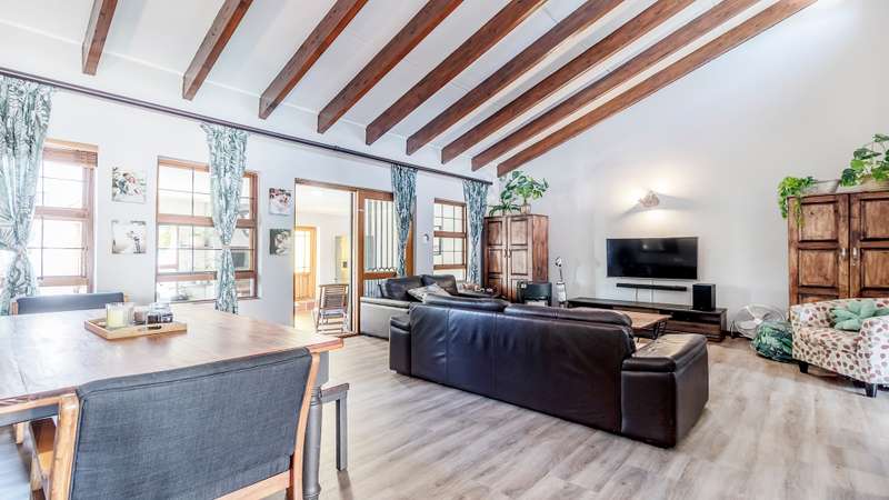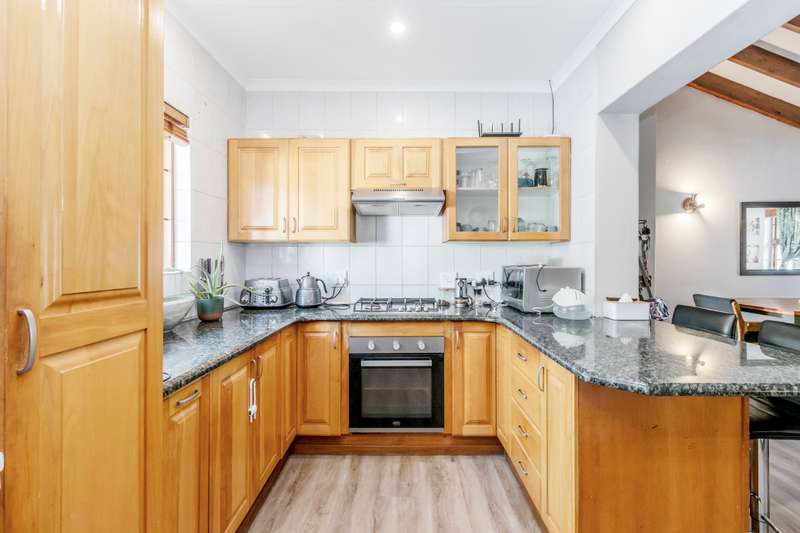 Sole Mandate to RealNet Properties Nestled in the sought-after New-Kloof Security Village within Sandalwood Heights in Newlands, this immaculate 3-bedroom, 2-bathroom full title property offers comfort, convenience, and modern living. The open plan kitchen, complete with a scullery, flows effortlessly to a private courtyard featuring a 1000L JoJo tank—perfect for a backup water system. Generous open plan living areas lead to an enclosed entertainment area with a built-in braai, extending further to a sunny patio, creating the ideal space for family gatherings or relaxed weekends at home. Designed for versatility, the property also boasts an outside room, perfectly suited for a home office, gym, or workshop. A double garage provides secure parking, while the 5KW inverter, 5.12KW battery, and 8 solar panels ensure uninterrupted living. Located in a prime area with quick access to the N1 and R21, this home combines security, convenience, and lifestyle in one exceptional package.