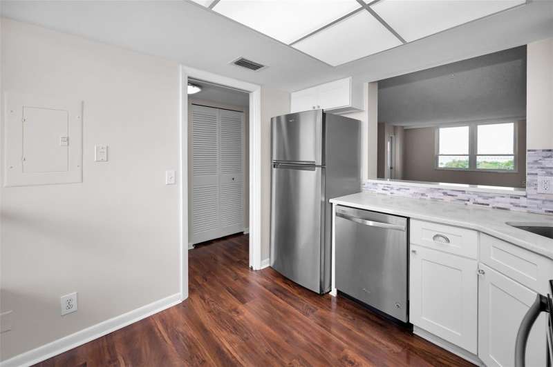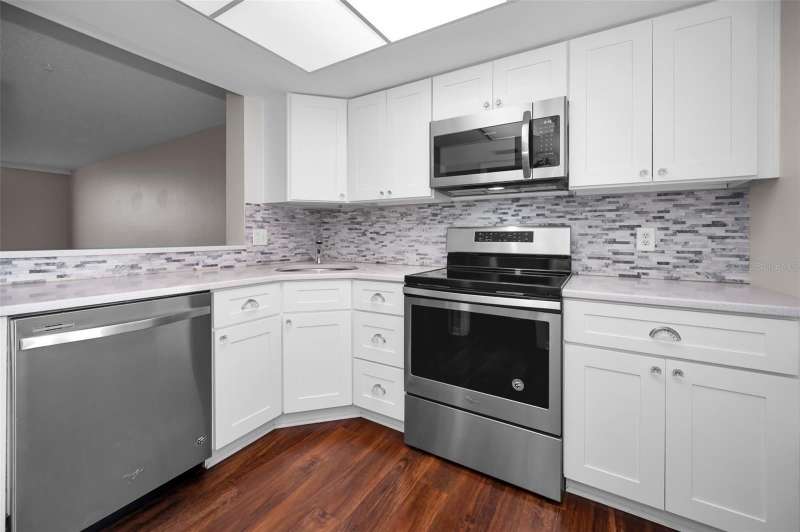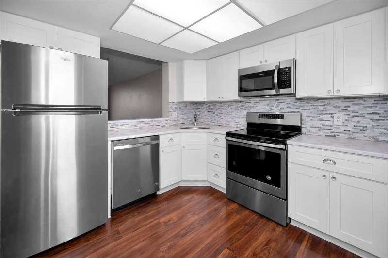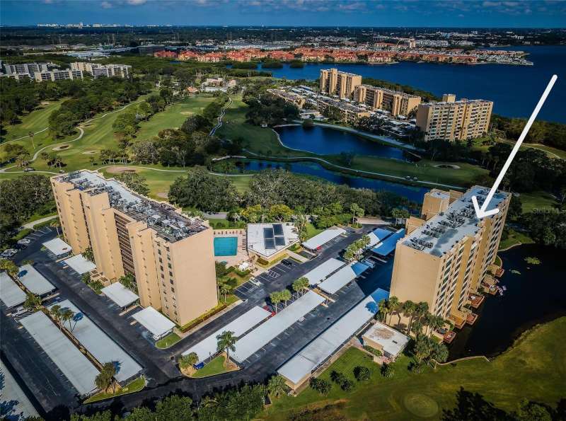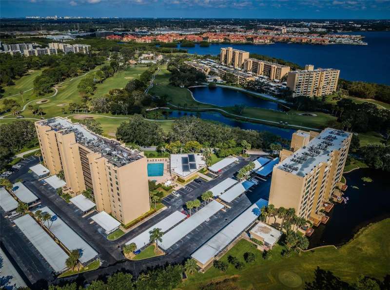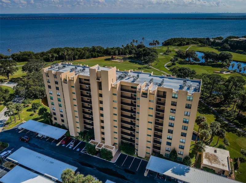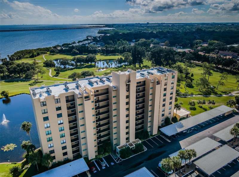 Under contract-accepting backup offers. PRICE ADJUSTMENT TO $149,900!! Breathtaking Views, Unmatched lifestyle – Welcome to Cove Cay, a gated, golf course community located along Tampa Bay! If you've been dreaming of a home with a view, your moment has arrived. This stunning 5th-floor, freshly painted residence in the luxurious Cove Cay Condo Community offers panoramic vistas that will leave you speechless — from the shimmering waters of Tampa Bay to the lush greens of the Cove Cay Golf Course, and the tranquil pond just below. By night, the illuminated Bayside Bridge transforms the skyline into a dazzling spectacle, all visible from your expansive Great Room or your screened-in lanai. Modern elegance meets coastal charm! This beautifully updated 1-bedroom, 1.5-bath condo is the epitome of refined Florida living. Step into a light-filled space featuring easy-care vinyl flooring, a spacious primary suite with a walk-in closet, and a remodeled ensuite bath complete with a large vanity and shaker cabinetry. The powder room off the entry is perfect for guests, and your private laundry room with extra storage is conveniently located just across the hall. The Coastal Kitchen is a chef’s dream — outfitted with shaker-style white cabinets, quartz countertops, a tiled backsplash, and thoughtful touches like a built-in spice rack and curio shelf. There’s even room for a cozy eat-in breakfast nook to start your mornings with a view. Value added improvements include a new roof and elevators in the building, assigned carport parking, 24-hour guard-gated community, heated inground pool and spa, privately owned Golf club where you can play Golf, host an event or enjoy a meal at Bay View Grill, Cove Cay’s delightful restaurant and for the boaters, there is Cove Cay Marina where you can rent a boat, store your boat, rent a kayak or have a beverage at AJ’s Dockside Grill! Whether you're seeking a full-time residence or a vacation retreat, this condo with brand new interior paint throughout offers the perfect blend of serenity, luxury, and convenience. With assessments already paid and upgrades in place, all that’s left is for you to move in and start living your best Florida life.