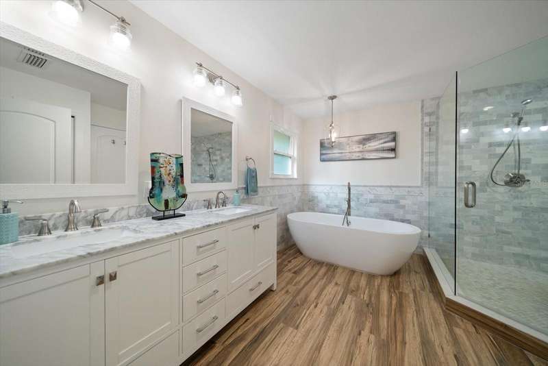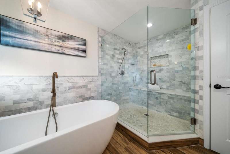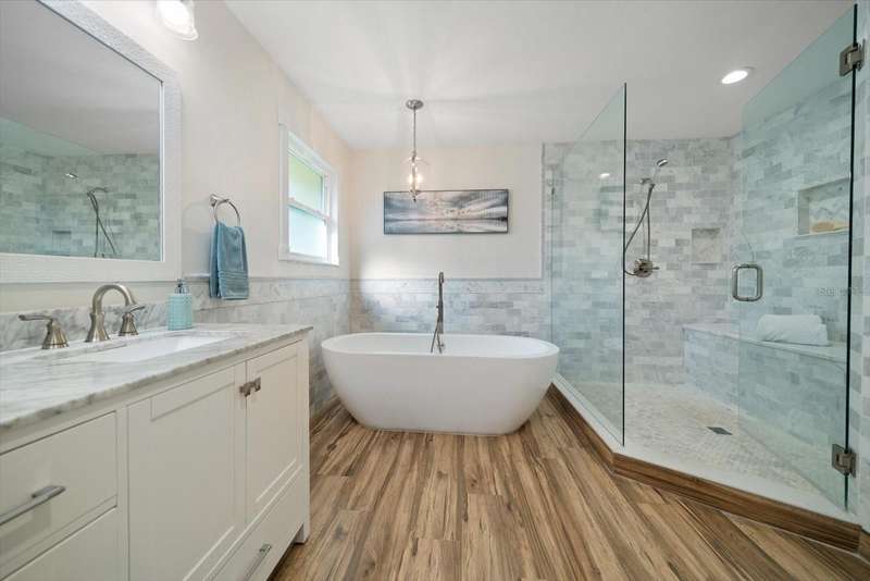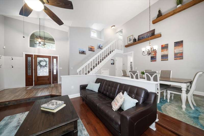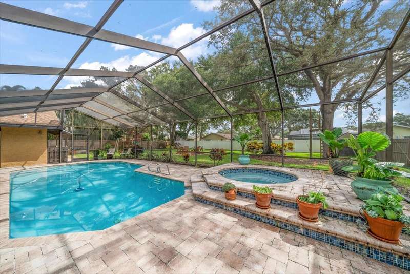 Discover the rare elegance of Windtree Oaks, an exclusive enclave known for its quiet sophistication, stately homes, and graceful, tree-lined streets. This magnificent four-bedroom residence blends timeless design with modern comfort, offering two full and two half baths, plus a spacious three-car garage. Step inside to find an impressive open floor plan with soaring ceilings in the living and dining areas, creating a bright and airy atmosphere ideal for both entertaining and everyday living. The main-level primary suite is a private retreat featuring dual walk-in closets, direct access to the pool, and a serene view of the lush backyard. The gourmet kitchen opens to a cozy breakfast nook with a bay window and an inviting family room—a perfect space to gather and unwind. Natural light pours in through multiple French and sliding glass doors, seamlessly connecting the interior to the outdoor oasis. Step out to your screened, pavered lanai with a heated saltwater pool and spa, surrounded by beautifully landscaped grounds and a generous covered seating area—ideal for alfresco dining or relaxing under the Florida sun. Upstairs, you’ll find three additional bedrooms offering comfort and privacy for family or guests. Perfectly situated near fine dining, boutique shopping, Walsingham Park, Heritage Village, Seminole City Center, and the Gulf beaches, this residence offers both tranquility and convenience. This is more than a home—it’s a lifestyle, a place to gather and create memories. Come see it and make it yours.