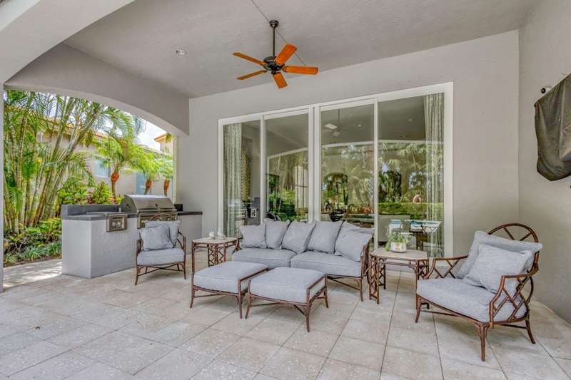 Exquisite Renovated Estate in Mirasol Country Club with Panoramic Golf Course Views. Welcome to luxury living at its finest in Mirasol Country Club, the premier private community in Palm Beach Gardens. This meticulously renovated 4-bedroom, 5-bathroom, plus den/office home offers an unmatched blend of elegance, comfort, and high-end upgrades. Sweeping views of the Sunrise Golf Course serve as the backdrop to the private outdoor oasis, complete with a resurfaced saltwater pool, expansive lanai, and a fully equipped summer kitchen set against the backdrop of newly paved backyard. Inside, discover a home thoughtfully reimagined with soaring 14-foot ceilings, spacious great room, custom cabinetry throughout, and Pecky Cypress wood accents in the kitchen and all bathrooms. The chefs kitchen, fully renovated, features top of the line appliances, Crystallo translucent quartzite countertops, and handcrafted finishes that elevate everyday living. The luxurious primary suite offers custom closets and a spa-inspired bathroom with marble flooring, modern fixtures, and designer lighting. Each of the homes bathrooms has been renovated completely renovated. The Vip 1st floor suite is situated for privacy. The 2nd level suites are spacious and welcoming. Additional upgraded highlights include, Hurricane Impact Windows and Doors and a full hurricane screen for the patio/loggia, Three-zone A/C systems, Water heater, Washer/Dryer, Custom window treatments and plantation shutters, Custom lighting fixtures, and much more. Sport Membership. Mirasol is one of Palm Beach Gardens most coveted country clubs, boasting a 75,000 square foot clubhouse with multiple indoor and outdoor dining venues, a full-service spa, a state-of-the-art fitness center, a dedicated kids clubhouse, tennis and pickleball courts, an Olympic-sized pool, kids pool, additional secluded pool and two championship golf courses. This vibrant community offers an array of social activities, special interest clubs and events, ensuring a dynamic lifestyle for its residents.