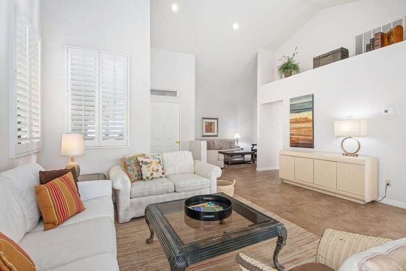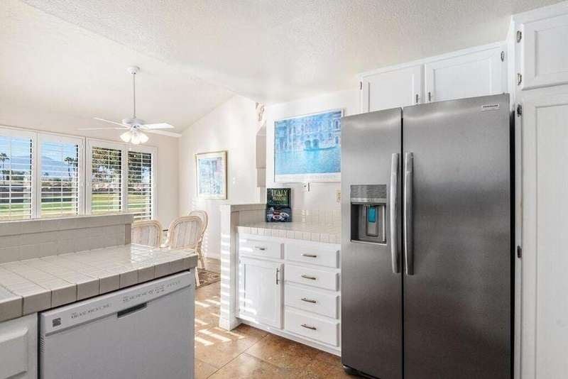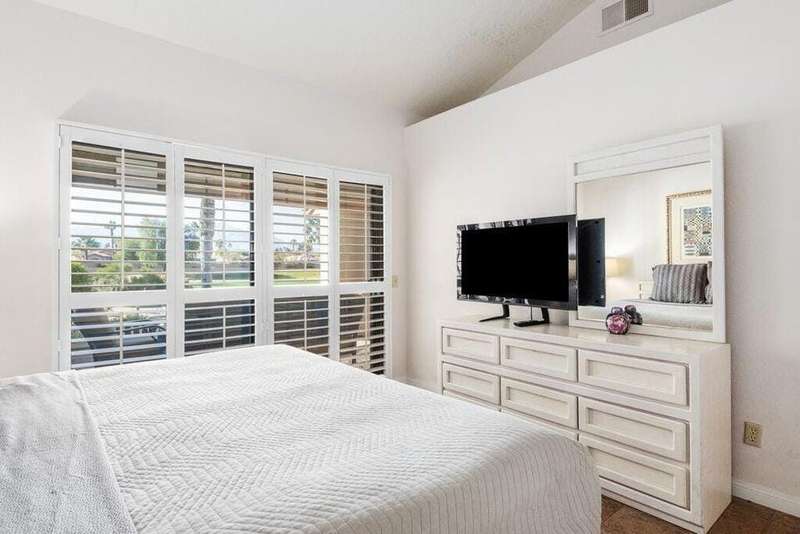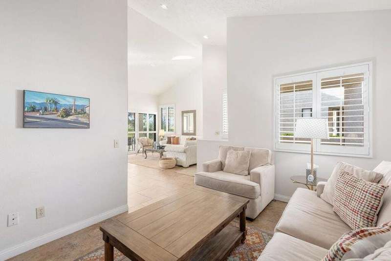 Escape to the Coachella Valley with this furnished 2-bedroom, 2-bathroom condo, situated on the golf course with stunning mountain views. This turnkey rental offers one of the largest floor plans in the community and comfortably accommodates up to six guests with a convenient pullout bed. The newly renovated primary bathroom adds a touch of modern luxury, while the attached 2-car garage and stackable washer/dryer provide the ultimate convenience. Located just minutes from restaurants, Indian Wells Tennis Garden, and festivals, this is the perfect home base for living and loving the desert lifestyle. Don't miss out on this incredible rental opportunity! This is a seasonal rental currently rented Dec 25- April 26