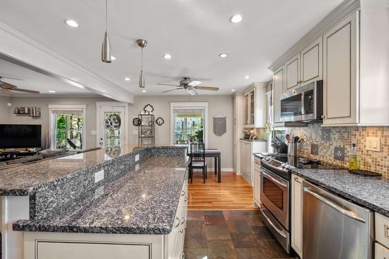 Welcome to Munroe Street, this beautiful cape home is situated in the desirable Riverside area in a highly sought after neighborhood. This move in ready 4 bed 2 bath home offers gorgeous updates and has been meticulously cared for. The first level has a beautifully updated kitchen with granite counter tops and custom cabinets, that has an open concept into the family room and dining area with hardwood floors throughout, as well as a large sunroom in the front entrance. You will also find a renovated full bath and bedroom on the first floor as well as an over sized mud room in the back entrance that leads to a large deck. On the second floor there are 3 more bedrooms, with one being used as the perfect office space, as well as another bathroom. Outside you will find a gorgeous fenced in, level lot, perfect for entertaining. This neighborhood has so much to offer, with wonderful neighbors, quiet streets, and easy access to major highways, commuter rail, restaurants, parks, and schools!