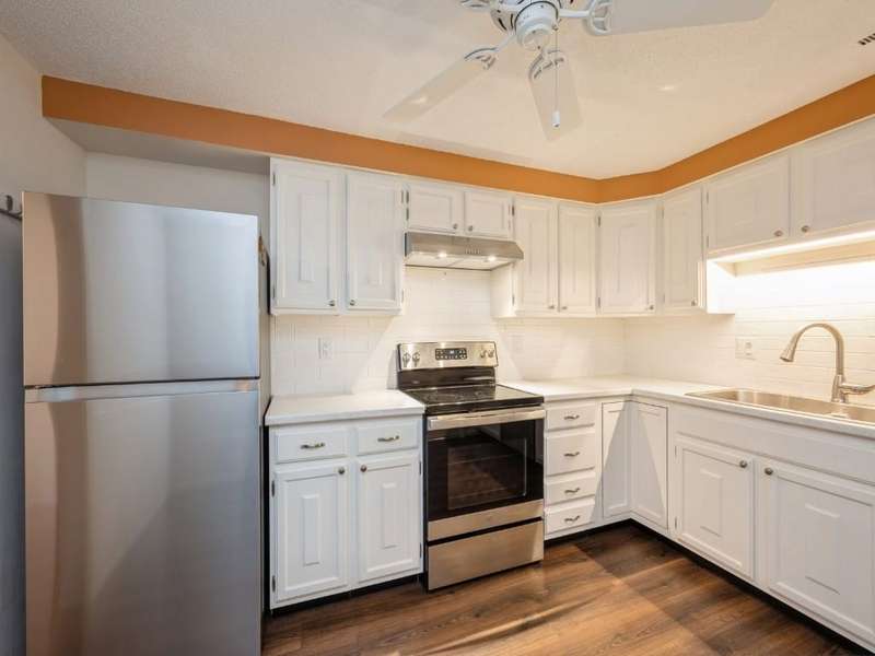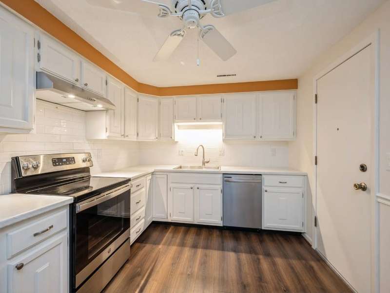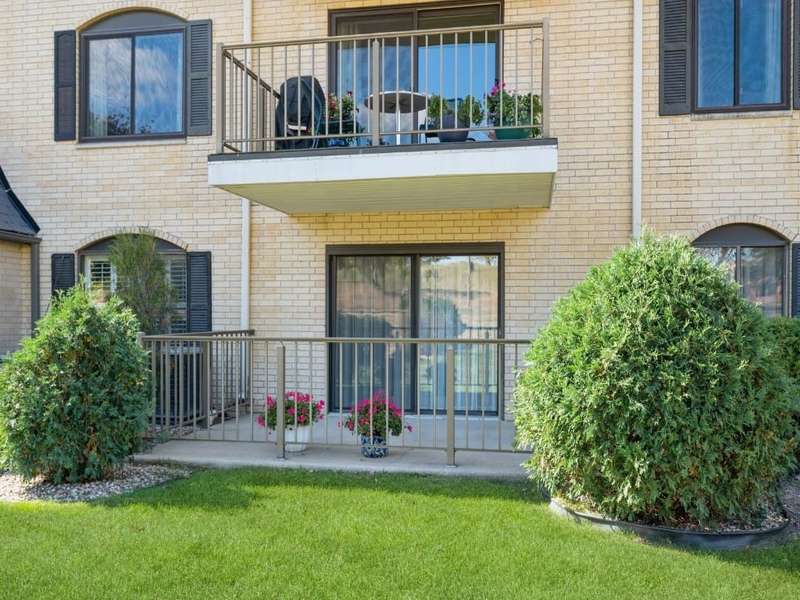 Very nice main floor unit! Many updates. Fresh paint, new floor coverings. New kitchen appliances. Two garage spaces, #33 and 34, very close to the elevator. Electric fireplaces. Built-In cabinetry in separate dining room and family room. Patio overlooks high school lawn.