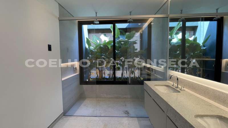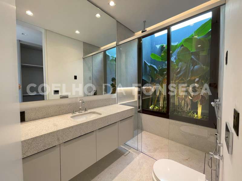 Caixilhos minimalistas, portas piso-teto em laca, sol na piscina o dia todo, dois amplos platôs com espaço para quadra, campinho e/ou playground, jardins internos e iluminação zenital garantindo bastante iluminação natural.