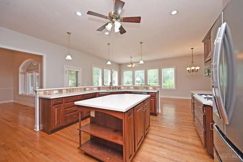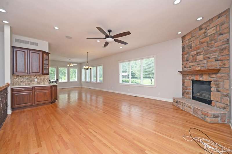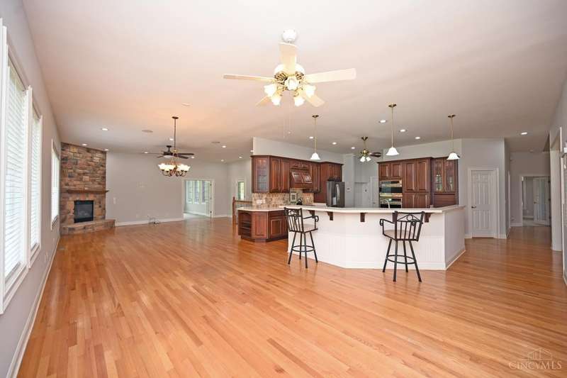 Brick ranch - Amburgy built! 3.0053 Acres, 3 car garage w/opener, shed, landscape pond, HWF, 2 gas fireplaces 2 bedrooms's 2 baths first floor, 2 bedroom's, 1 bath lower level, propane gas 1000 gal tank, 3146 sq ft first floor 2123 sq ft lower level, high efficiency furnace, C/A septic system, poured foundation, circuit breakers 200 AMF workshop 26x15, ceiling fan's, newer roof 3D shingles, 2004 stainless steel appliances. Built 2003 partially covered deck, electronic awning. Kitchen in lower level. Security System.