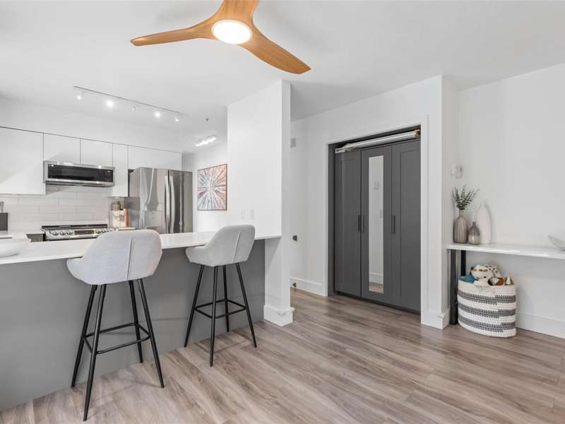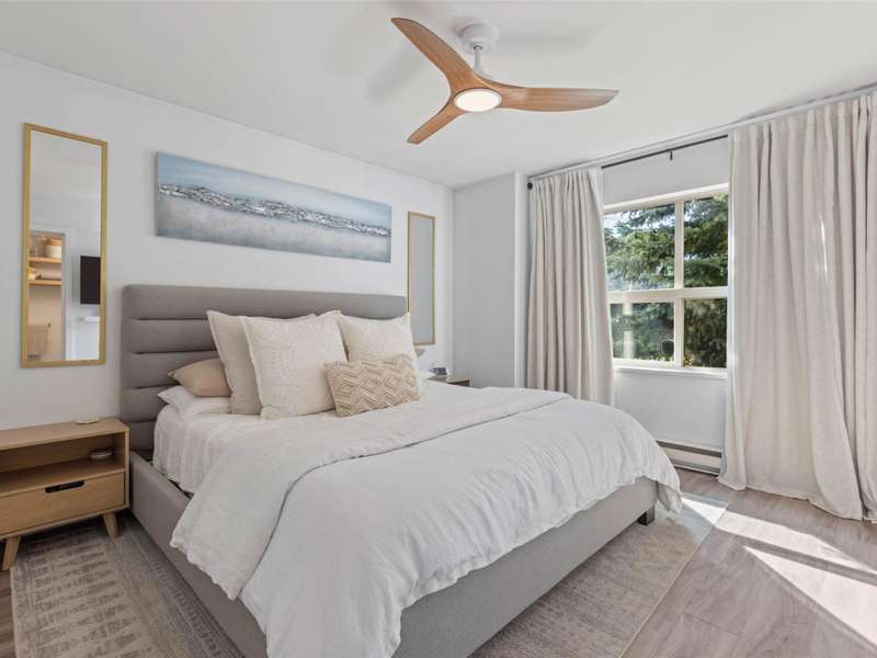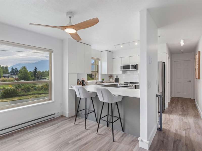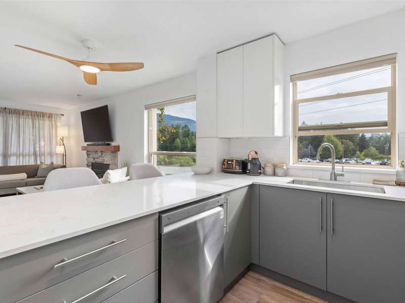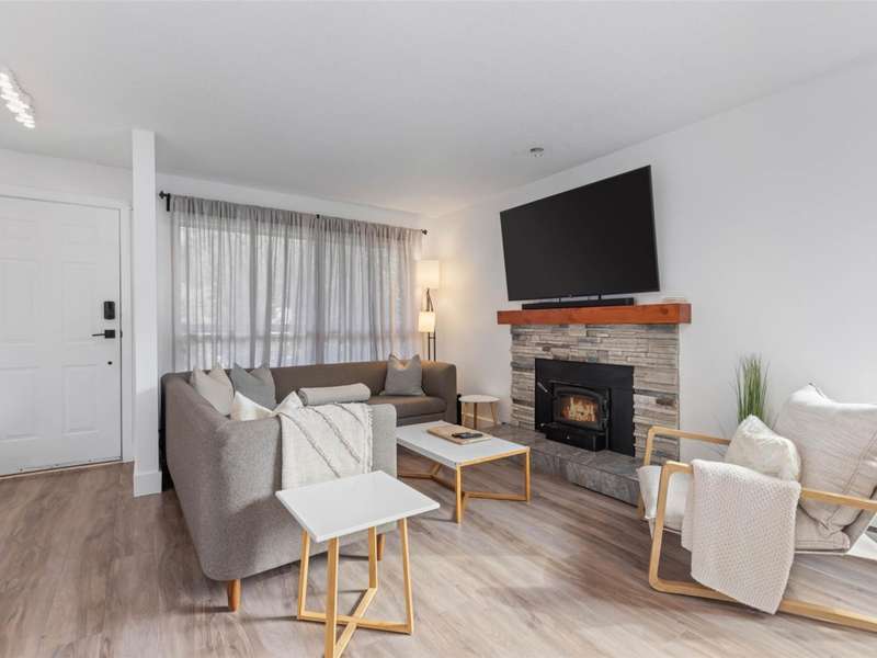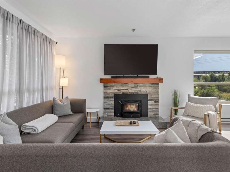 Welcome to this beautifully updated corner unit – ideally located in the complex to allow all-day natural light. Wake up to pretty sunrises, enjoy the warmth of alpenglow on the mountains in the evening, and relax on the deck with afternoon shade. This spacious 2-bedroom, 2-bathroom condo has been extensively updated with a fully renovated kitchen featuring quartz countertops, new appliances, added cabinets and modern lighting. It has fresh flooring and new baseboards throughout, while the bathrooms have been partially renovated, including imported Italian tile in the primary ensuite. An airtight fireplace assists in heating in the winter, keeping the electricity bills lower, and the generous laundry and pantry provide excellent functionality. With mountain views and thoughtful updates throughout, this home blends comfort, style, and convenience. Ideally located close to shopping, the recreation center, and the bike park, this is a move-in-ready home you’ll love.
