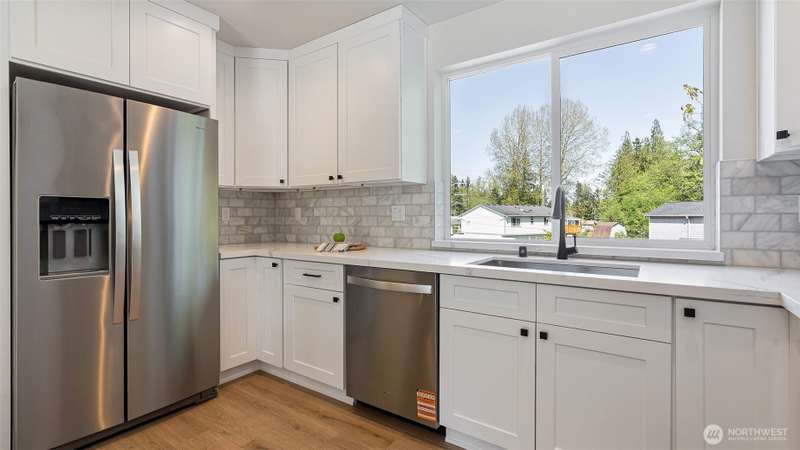 Only one left. Beautiful new home in great S Everett location just minutes to shopping, beaches, & freeway access. This home sits on a fully fenced, beautifully landscaped lot. On the Entry level you will find a bedroom with 3/4 bath that has floor to ceiling tile in the shower, & ceramic tile flooring plus a covered deck. On the main level you will find 2 more spacious bedrooms and a full bath with tile flooring, quartz counters and undermount sink. The beautiful kitchen has white shaker cabinets, convenient LVP flooring and stainless appliances, including the fridge and is open to the bright great room with cozy fireplace and an additional deck that is perfect for entertaining. Garage is prewired for EV.