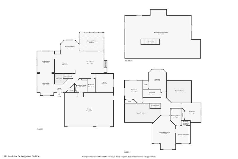 If waking up to Long's Peak and Mount Meeker views is your kind of vibe, this home has you covered! Sitting on an extra roomy lot with plenty of space to stretch out, 575 Brookside has the mountain views, the large backyard, and the extra spaces you've been looking for. Inside, you'll find a sunny three-season sunroom that begs for morning coffee or evening wine, plus a big back patio ready for BBQs with all your friends. There's room for everyone: 4 bedrooms upstairs, all 3 bathrooms have showers, a front living room, a vaulted-ceiling family room with gorgeous windows, and yes- a formal dining area and a roomy breakfast spot in the kitchen. The main floor office comes with a nearby 3/4 bath, so it can easily moonlight as a bedroom if needed. The kitchen just got a glow-up with brand-new quartz counters, and the laundry room makes chores a little easier with its big sink and included washer/dryer. The primary suite is extra spacious with mountain views framed right in the window, a five-piece bath with radiant floor heating, and a walk-in closet that won't disappoint. Ceiling fans keep things breezy in every upstairs bedroom (and the sunroom too). With a newer HVAC system and roof you'll be all the more relaxed to enjoy all this space. Out front, you'll love the wide front porch for sunsets, a large three-car garage for all your toys, and a backyard with so much space you might need to start a new hobby! Location-wise, you're less than 10 minutes from Main Street Longmont, the Rec Center, Fox Hill Country Club, and Union Reservoir. Quick trips to Boulder or Lyons are a breeze, and DIA is under an hour away with the toll road. Come take a look at this one, it's everything you've been waiting for!