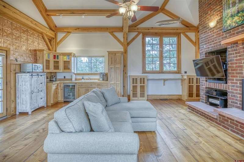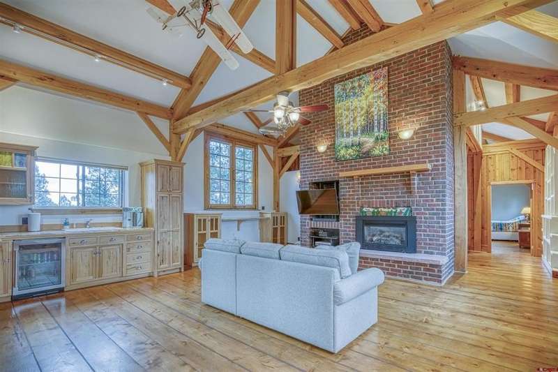 Kimberly Brown, Galles Properties, C: 970-749-3849, Kim@GallesProperties.com, www.crenmls.com: Custom Timber-Frame Mountain Compound in Pagosa's San Juan Forest with 2 Heated Garage/Shops, Private Studio Apartment, and a Gourmet Chef's Kitchen with Fireplace and Coffee Bar that you won't want to leave! Natural Private Pond Water Feature, Continental Divide Mountain Views, Backs to Miles of Forest Trails and Only 10 Mins to Town! This private 14-acre estate compound at 624 E. Morning Glory offers a unique blend of traditional styling and high-end living with direct access to the incredible natural beauty of the region. The property features a recently updated 5,000 sq ft 5-bedroom, 5-bathroom timber frame and early 1800s Louisiana brick manor home with an additional 2,000 sf of heated partially finished basement. The home boasts 3 ensuite bedrooms, along with a dedicated private owner's floor that includes a living room, kitchenette with beverage cooler, a walk-out covered deck, a fireplace, and an inspiring observatory offering total serenity and breathtaking panoramic views. In addition to the main residence, the compound includes practical and stylish outbuildings: a 1,200 sq ft heated garage/shop with a chic studio apartment, and a substantial 2,200 sq ft heated RV garage complete with hookup. Ideal for entertaining-The gourmet chef's kitchen is equipped with a large island and top-of-the-line stainless steel Wolf and Sub Zero appliances. Adjacent to this, you'll find a fireside coffee lounge with a dedicated coffee bar, formal dining space and walkout sprawling covered deck with hot tub. The property also includes a beautiful spacious traditional living space with a wood-burning stove where everyone can comfortably gather and enjoy time together. This unique offering benefits from central water and comprises 3 independent lots promoting added value and opportunity to maximize the development of each. This property directly backs onto miles of national forest trails, perfect for exploring the extensive backcountry on horseback or by foot. Ride ATV's right from your private property all the way into the next county, William's Lake, and more! Despite its secluded feel, the property is conveniently located just 10 minutes from Uptown Pagosa, 20 minutes from historic Downtown Pagosa Springs, and 40 minutes from the renowned Wolf Creek Ski Area. For private air travel, Stevens' airfield is minutes away. The location provides access to live trout-stocked rivers, the world's deepest hot springs, celebrated dining options, and the vast 2.8 million acres of the national forest, known for its abundant big game. Contact me for more details about this remarkable property and to arrange your private, agent-accompanied tour. --
