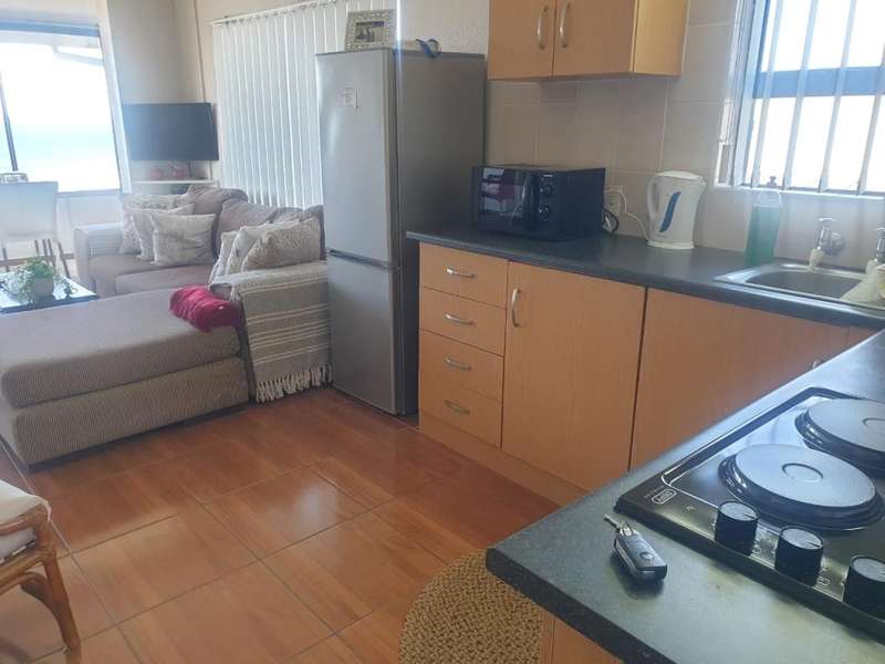 Located on a superb area of land overlooking the ocean. This immaculate, well run complex has everything for holidays and joyful residential living. As you approach the electric gate, securing the homes contained in it, you will notice the immaculateness of each unit, due to a strong Body Corporate and levy fund. This unit is very desirable, upon entering the home you will see the lovely floor tiles that seem to match everything. On the right side as you enter, there is a modern, lovely bathroom . Along the passage there is a gorgeous kitchen, so ultra modern. The kitchen is open plan and spacious, with fabulous sea views,leading into a generous lounge with an enclosed balcony, There are two sunny bedrooms fitted out beautifully with built-in cupboards. Secure parking is available for your previous vehicles right outside the unit. To top it all, there is a marvellous entertainment/pool area and communal braai area. A very well run office is available for any help that is required in the complex or for the renting out of holiday units. This is a small piece of paradise. If this is what you are looking for, for incedible holidays every year, or residential living, give me a call and I will arrange an appointment to view.