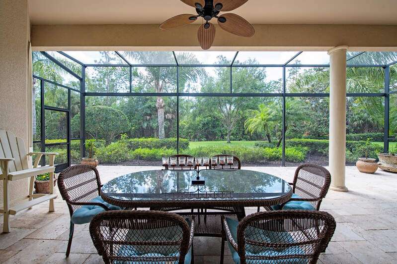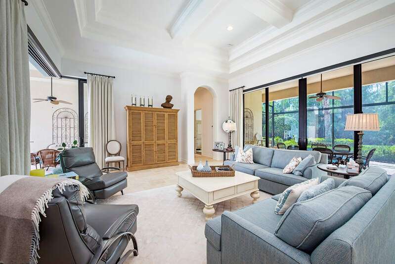 Are you looking for total privacy and tranquility then this exquisite Courtyard Home in "LAKOYA" at Lely Resort is your newfound paradise. The "Pinehurst II" floorplan features 3BR plus a DEN, 2.5 BA PLUS a CABANA with 1BR and 1BA. Beautiful decorated with personal attention to every detail by the owner sets this home apart. Offered turnkey furnished. Enter the courtyard, you are presented with the stunning, south-facing, heated pool and spa (gas). Ashlar-Stone on the lanai and throughout the house, except in the Den and all bedrooms which boast high-grade hardwood floors. Plantation shutters, crown molding, granite countertops, 3-car garage and many more upgrades. Enjoy the sunset from the extended lanai overlooking the preserve and watch the wildlife.