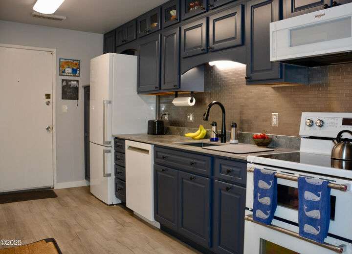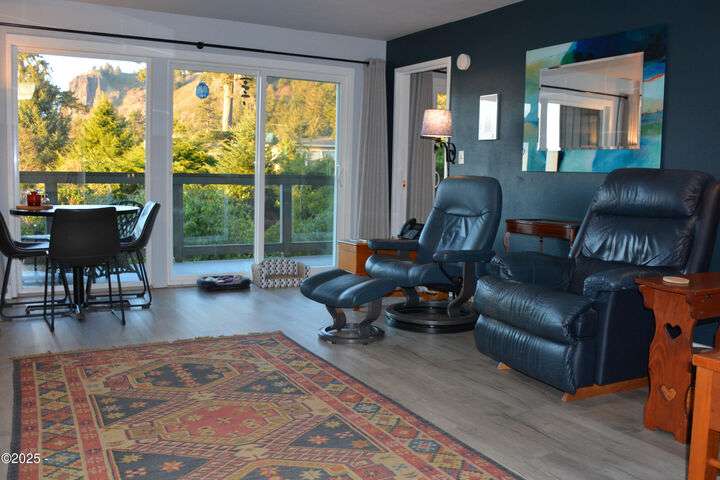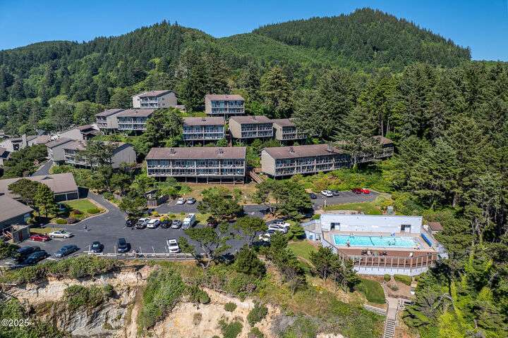 Wake up to an ocean view! This unit has been updated throughout. The kitchen is beautiful with its new cabinets, new appliances, including a double oven, matte metallic tile backsplash and composite countertop and sink. It has soft close drawers and a kick drawer beneath the sink. The bathroom cabinets and toilets, heaters, lighting, flooring, paint and window treatments are all new, the old popcorn ceiling was removed and there's a stacked washer dryer in a closet by the kitchen. It is located in a quiet area within the Inn at Otter Crest. The Sellers have enjoyed watching whales, eagles and the light changing on Cape Foulweather during their time here. Association Dues cover almost all the costs of ownership. They include: Utilities ( electricity, water, sewer) garbage service, phone, wifi, cable TV, upkeep of grounds, common areas and building exteriors, front desk service, bell cart service, insurance for the Inn as a whole, HOA administration, and a major maintenance reserve fund. The Inn at Otter Crest is a 35 acre, ocean front property with beach access, heated ocean front pool and hot tub, jetted spa tub, men's and women's saunas, beach access, on-site restaurant, children's playground, walking paths and more!
