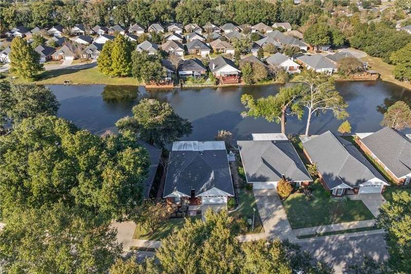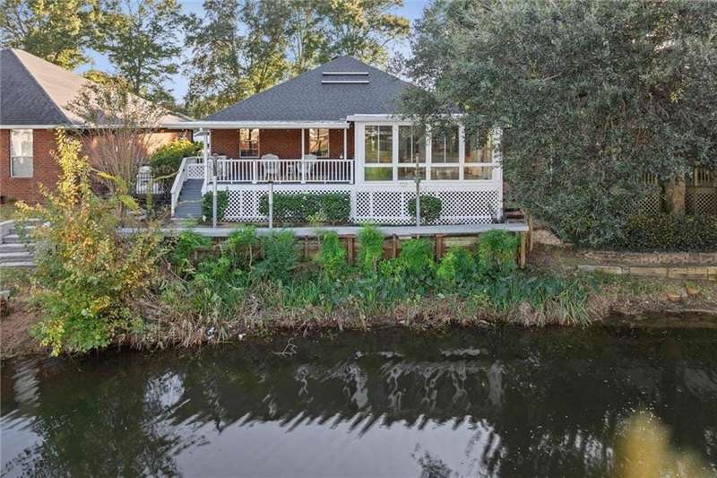 Discover peaceful lakefront living in this beautiful 3-bedroom, 2-bath family patio home nestled on a spring-fed lake just minutes from downtown Fairhope and the pier. Designed for both comfort and connection to nature this home offers a bright open layout and stunning water view from nearly every angle. Step inside to an open concept living, dining, and kitchen area featuring a vaulted ceiling and floor to ceiling windows that fill the home with natural light. The highlights of the home are the glass enclosed sunroom offering panoramic lake views and skylights that also bring more natural light. A large, covered porch is ideal for entertaining or quiet evenings by the lake. Move in Ready and waiting for you to make it yours, Just in time for the holidays! Buyer to verify all information during due diligence.