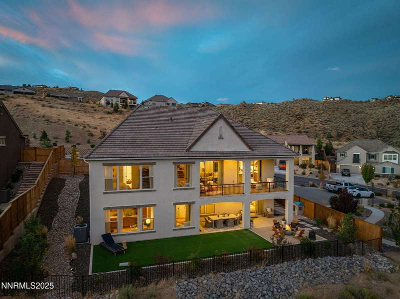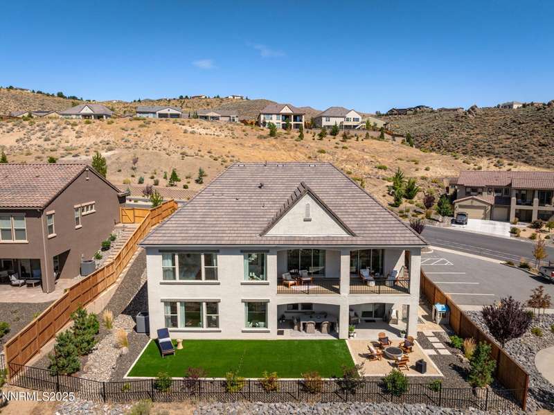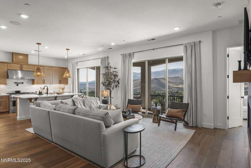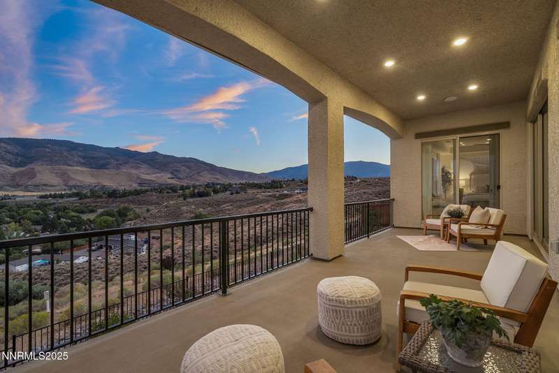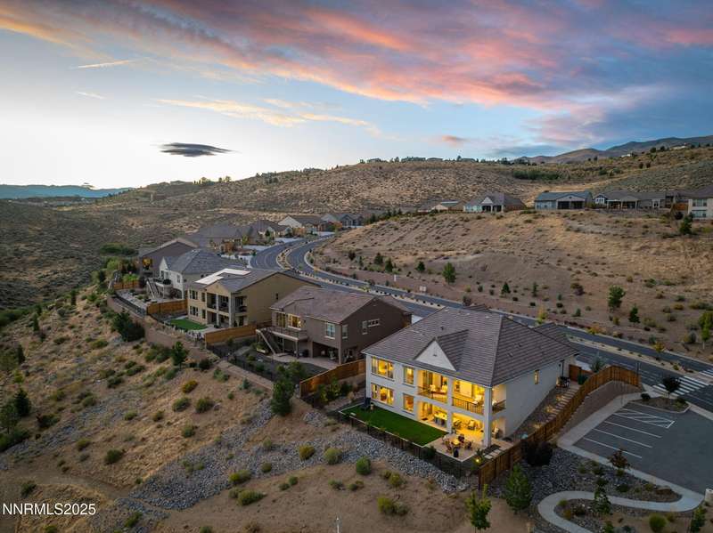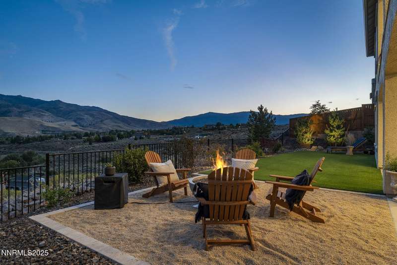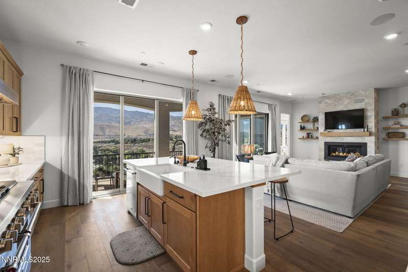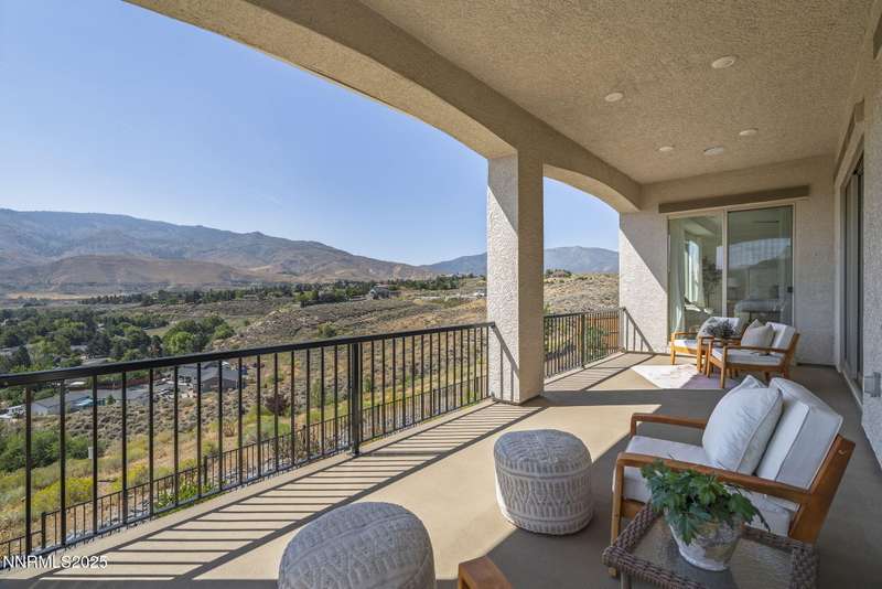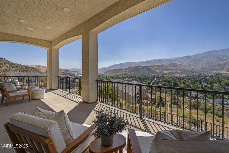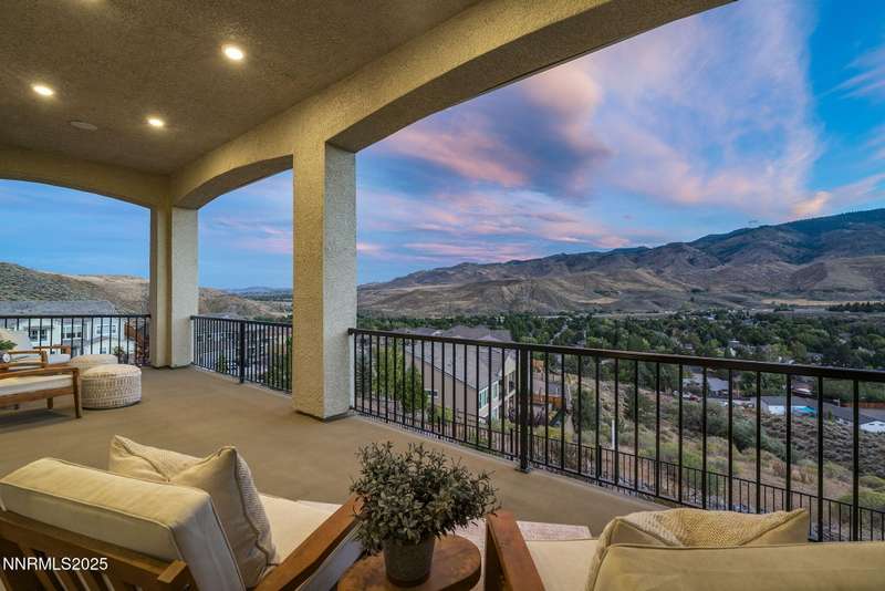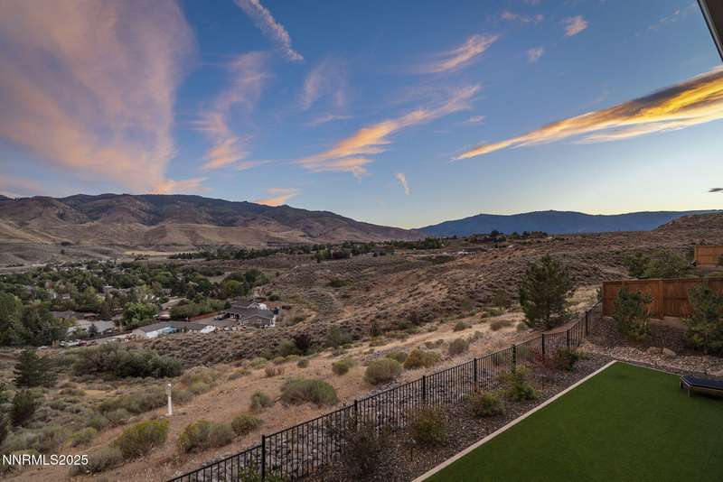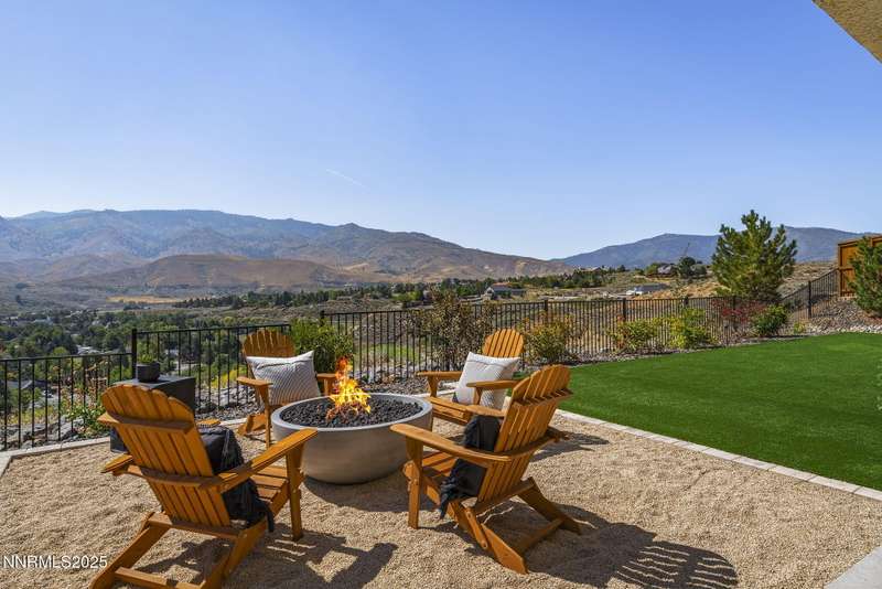Opportunities like this don't come often. Tucked within Sunset Bluffs —an intimate hillside community in Northwest Reno of only 41 homes— this luxurious residence offers a lifestyle and is more than just a home, it displays model home perfection with unmatched, breathtaking views. Perched on a premier lot with no immediate rear neighbors, no neighbors on one side, and none directly across, it offers a level of privacy and serenity you simply won't find elsewhere. From the moment you step inside, your eyes are drawn to majestic, sweeping views of the Sierra Nevada mountains. Whether you're preparing a meal in the gourmet kitchen, relaxing by the great room fireplace, waking in your private primary suite, or unwinding on the oversized covered deck, the vistas are breathtaking—and unforgettable. Designed for main level living, the layout showcases dramatic 9' ceilings and rich hardwood flooring throughout. The open-concept great room centers around the 45" linear fireplace with floating beam mantel and full tile surround while flowing seamlessly into the chef's dream kitchen, complete with a Kitchen Aid stainless steel appliance package featuring a 48" six burner commercial-style gas range with griddle and double oven, Quartz counters, farmhouse style apron-front cast iron sink, under-cabinet lighting, roll-out shelving, walk-in pantry, coffee bar/prep area, and sleek designer finishes. Every detail has been thoughtfully curated for both style and function. The generous dining area completes this entertainer's dream space. Expansive 3-panel Western Sliders in both the great room and kitchen erase the boundary between indoor and outdoor living, framing nightly sunsets and wildlife sightings right from your own home. The split primary suite feels like a personal retreat, offering large windows that capture the morning light, direct deck access, and a spa-like bath with dual vanities, upgraded Kohler vessel sinks, a luxurious walk-in frameless glass shower and spacious walk-in closet. Two additional bedrooms share a beautifully upgraded full bath with dual Quartz vanities, drop-in sinks and a fully tiled tub/shower. A separate den/office with a glass-panel door, powder room, and fully appointed laundry room, including cabinets and laundry sink, complete the main level. The walk-out lower level is a world of its own and expands the home's versatility—complete with a large living area, flex space, and fully finished kitchenette, complete with sink, microwave and beverage fridge. Perfect for entertaining, extended guest stays, or multi-generational living, it even includes a bedroom, full bath, and direct access to the outdoor spaces. Additional features - • In-ceiling audio system • Automatic interior lighting in some locations • Central data panel • Three-car insulated garage with epoxy flooring and upgraded openers • Hardwood flooring on both levels, including the primary suite • Expansive covered deck & professionally designed outdoor living spaces • Rare private lot with uninterrupted views and unmatched seclusion • Numerous upgraded details and additional features throughout the home This is not just a home—it's a chance to live elevated, every single day. Homes with this level of privacy, luxury, and sweeping views rarely come available.