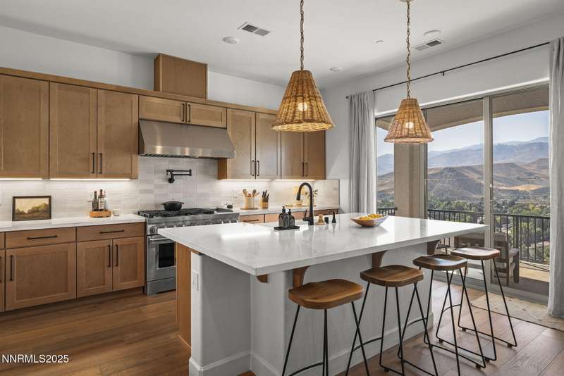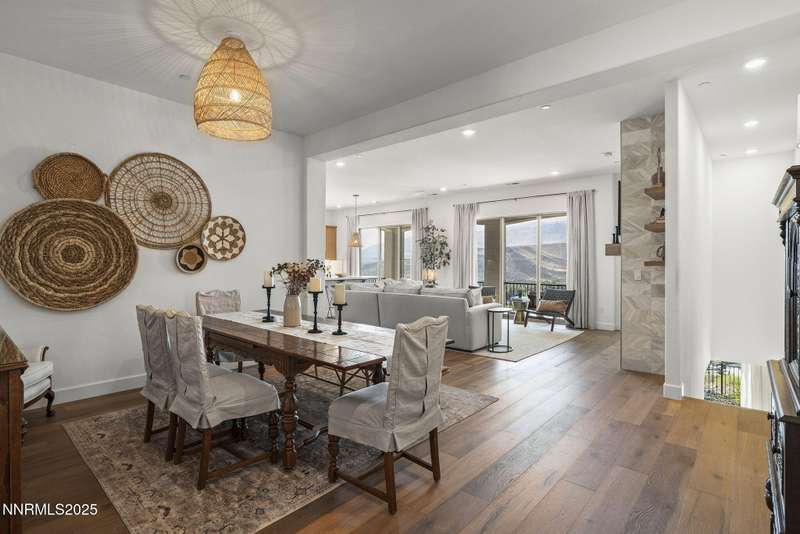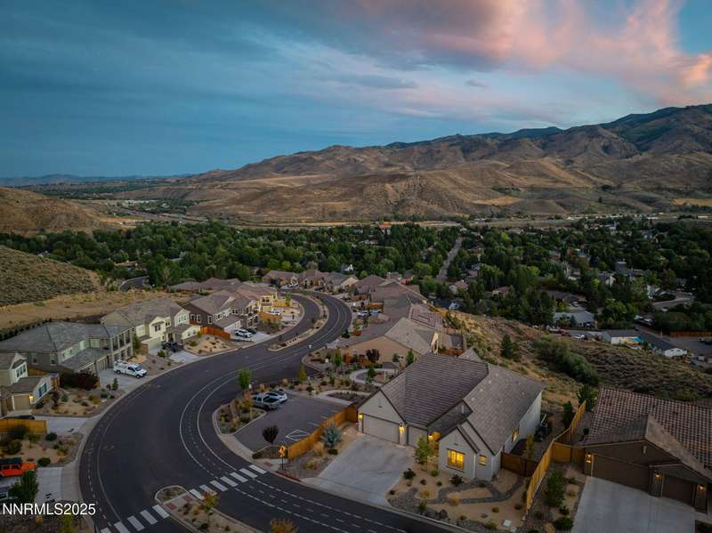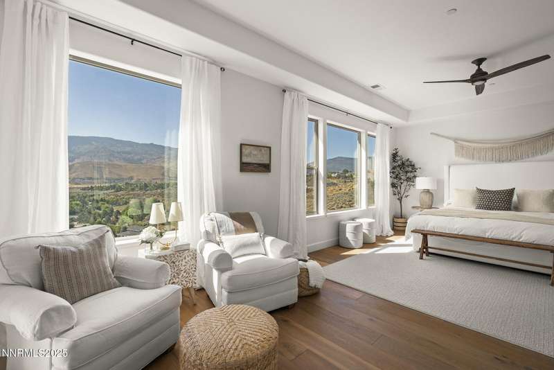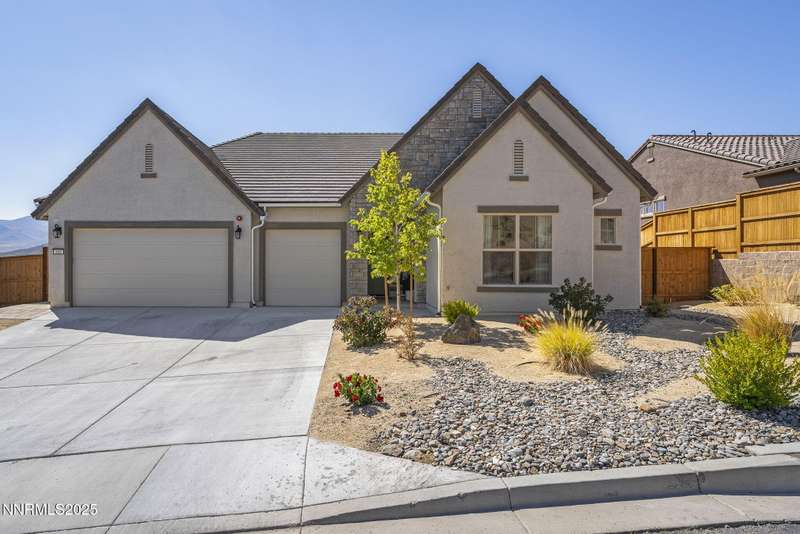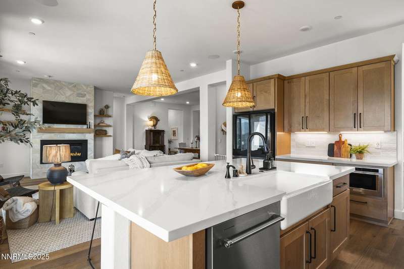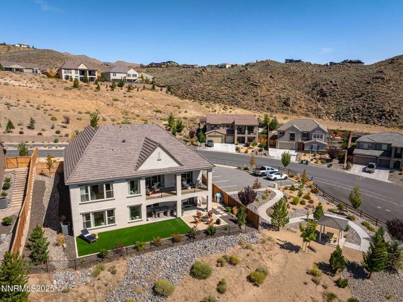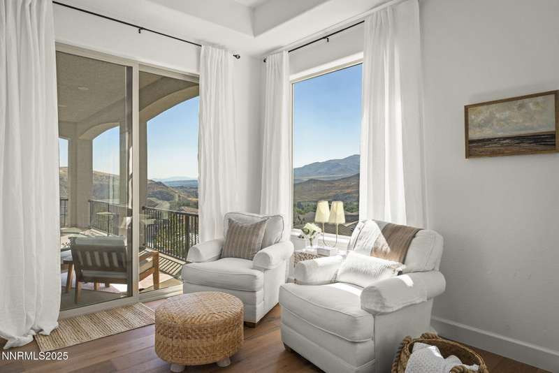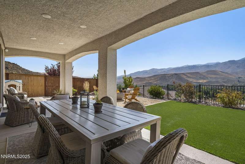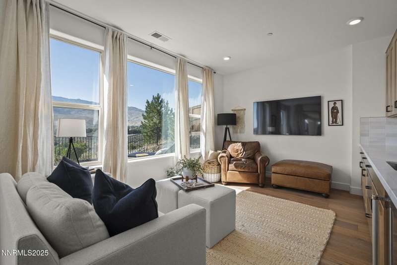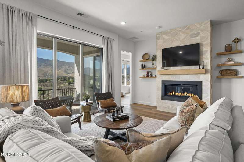 Opportunities like this don't come often. Tucked within Sunset Bluffs —an intimate hillside community in Northwest Reno of only 41 homes— this luxurious residence offers a lifestyle and is more than just a home, it displays model home perfection with unmatched, breathtaking views. Perched on a premier lot with no immediate rear neighbors, no neighbors on one side, and none directly across, it offers a level of privacy and serenity you simply won't find elsewhere. From the moment you step inside, your eyes are drawn to majestic, sweeping views of the Sierra Nevada mountains. Whether you're preparing a meal in the gourmet kitchen, relaxing by the great room fireplace, waking in your private primary suite, or unwinding on the oversized covered deck, the vistas are breathtaking—and unforgettable. Designed for main level living, the layout showcases dramatic 9' ceilings and rich hardwood flooring throughout. The open-concept great room centers around the 45" linear fireplace with floating beam mantel and full tile surround while flowing seamlessly into the chef's dream kitchen, complete with a Kitchen Aid stainless steel appliance package featuring a 48" six burner commercial-style gas range with griddle and double oven, Quartz counters, farmhouse style apron-front cast iron sink, under-cabinet lighting, roll-out shelving, walk-in pantry, coffee bar/prep area, and sleek designer finishes. Every detail has been thoughtfully curated for both style and function. The generous dining area completes this entertainer's dream space. Expansive 3-panel Western Sliders in both the great room and kitchen erase the boundary between indoor and outdoor living, framing nightly sunsets and wildlife sightings right from your own home. The split primary suite feels like a personal retreat, offering large windows that capture the morning light, direct deck access, and a spa-like bath with dual vanities, upgraded Kohler vessel sinks, a luxurious walk-in frameless glass shower and spacious walk-in closet. Two additional bedrooms share a beautifully upgraded full bath with dual Quartz vanities, drop-in sinks and a fully tiled tub/shower. A separate den/office with a glass-panel door, powder room, and fully appointed laundry room, including cabinets and laundry sink, complete the main level. The walk-out lower level is a world of its own and expands the home's versatility—complete with a large living area, flex space, and fully finished kitchenette, complete with sink, microwave and beverage fridge. Perfect for entertaining, extended guest stays, or multi-generational living, it even includes a bedroom, full bath, and direct access to the outdoor spaces. Additional features - • In-ceiling audio system • Automatic interior lighting in some locations • Central data panel • Three-car insulated garage with epoxy flooring and upgraded openers • Hardwood flooring on both levels, including the primary suite • Expansive covered deck & professionally designed outdoor living spaces • Rare private lot with uninterrupted views and unmatched seclusion • Numerous upgraded details and additional features throughout the home This is not just a home—it's a chance to live elevated, every single day. Homes with this level of privacy, luxury, and sweeping views rarely come available.