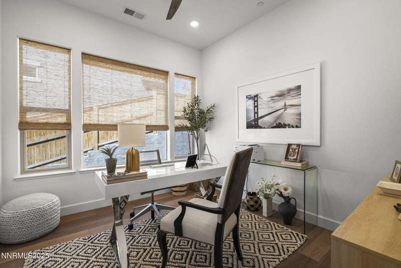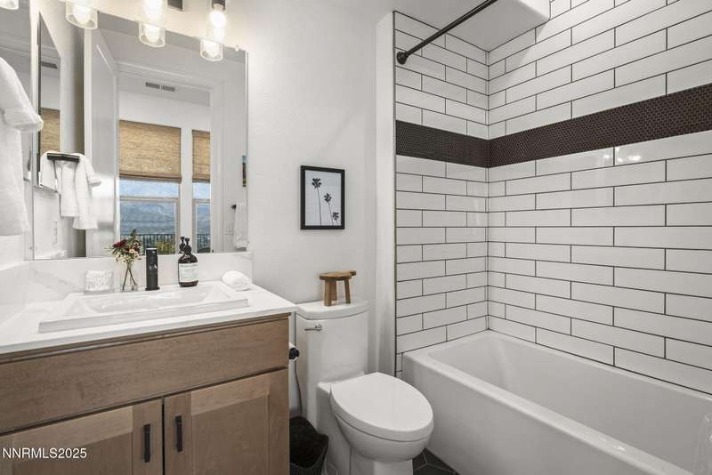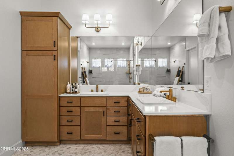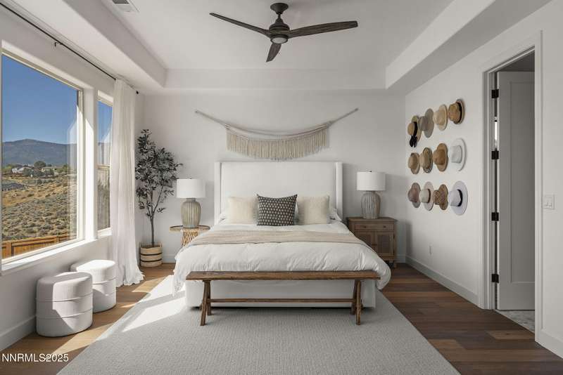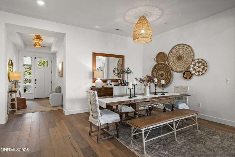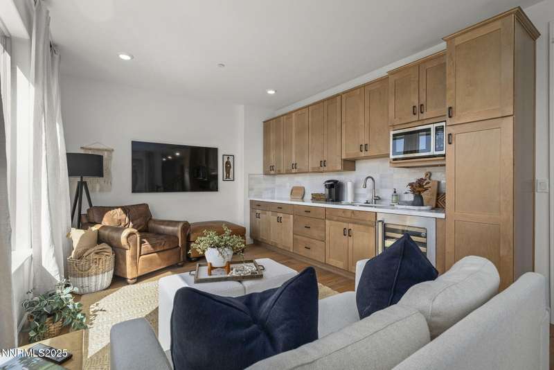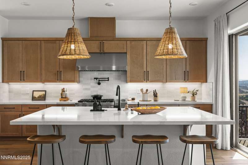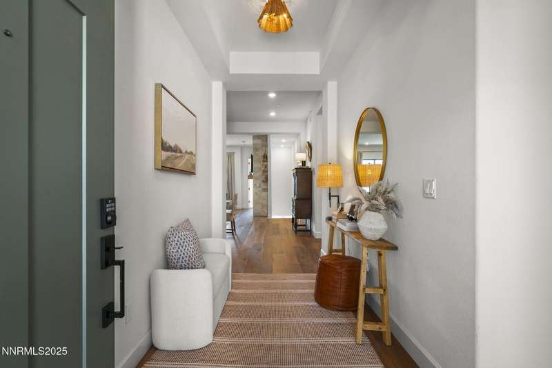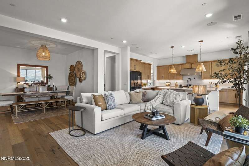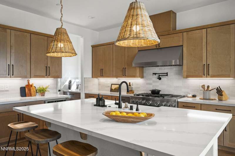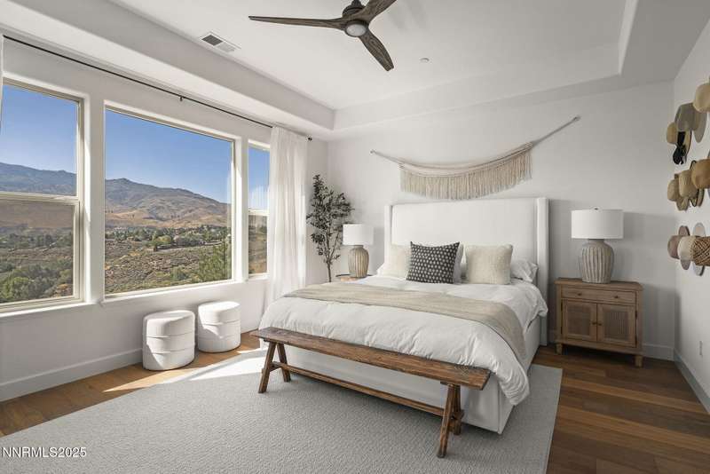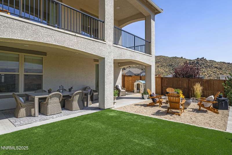 Opportunities like this don't come often. Tucked within Sunset Bluffs —an intimate hillside community in Northwest Reno of only 41 homes— this luxurious residence offers a lifestyle and is more than just a home, it displays model home perfection with unmatched, breathtaking views. Perched on a premier lot with no immediate rear neighbors, no neighbors on one side, and none directly across, it offers a level of privacy and serenity you simply won't find elsewhere. From the moment you step inside, your eyes are drawn to majestic, sweeping views of the Sierra Nevada mountains. Whether you're preparing a meal in the gourmet kitchen, relaxing by the great room fireplace, waking in your private primary suite, or unwinding on the oversized covered deck, the vistas are breathtaking—and unforgettable. Designed for main level living, the layout showcases dramatic 9' ceilings and rich hardwood flooring throughout. The open-concept great room centers around the 45" linear fireplace with floating beam mantel and full tile surround while flowing seamlessly into the chef's dream kitchen, complete with a Kitchen Aid stainless steel appliance package featuring a 48" six burner commercial-style gas range with griddle and double oven, Quartz counters, farmhouse style apron-front cast iron sink, under-cabinet lighting, roll-out shelving, walk-in pantry, coffee bar/prep area, and sleek designer finishes. Every detail has been thoughtfully curated for both style and function. The generous dining area completes this entertainer's dream space. Expansive 3-panel Western Sliders in both the great room and kitchen erase the boundary between indoor and outdoor living, framing nightly sunsets and wildlife sightings right from your own home. The split primary suite feels like a personal retreat, offering large windows that capture the morning light, direct deck access, and a spa-like bath with dual vanities, upgraded Kohler vessel sinks, a luxurious walk-in frameless glass shower and spacious walk-in closet. Two additional bedrooms share a beautifully upgraded full bath with dual Quartz vanities, drop-in sinks and a fully tiled tub/shower. A separate den/office with a glass-panel door, powder room, and fully appointed laundry room, including cabinets and laundry sink, complete the main level. The walk-out lower level is a world of its own and expands the home's versatility—complete with a large living area, flex space, and fully finished kitchenette, complete with sink, microwave and beverage fridge. Perfect for entertaining, extended guest stays, or multi-generational living, it even includes a bedroom, full bath, and direct access to the outdoor spaces. Additional features - • In-ceiling audio system • Automatic interior lighting in some locations • Central data panel • Three-car insulated garage with epoxy flooring and upgraded openers • Hardwood flooring on both levels, including the primary suite • Expansive covered deck & professionally designed outdoor living spaces • Rare private lot with uninterrupted views and unmatched seclusion • Numerous upgraded details and additional features throughout the home This is not just a home—it's a chance to live elevated, every single day. Homes with this level of privacy, luxury, and sweeping views rarely come available.