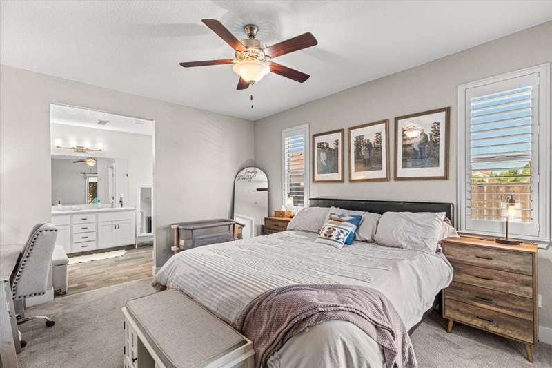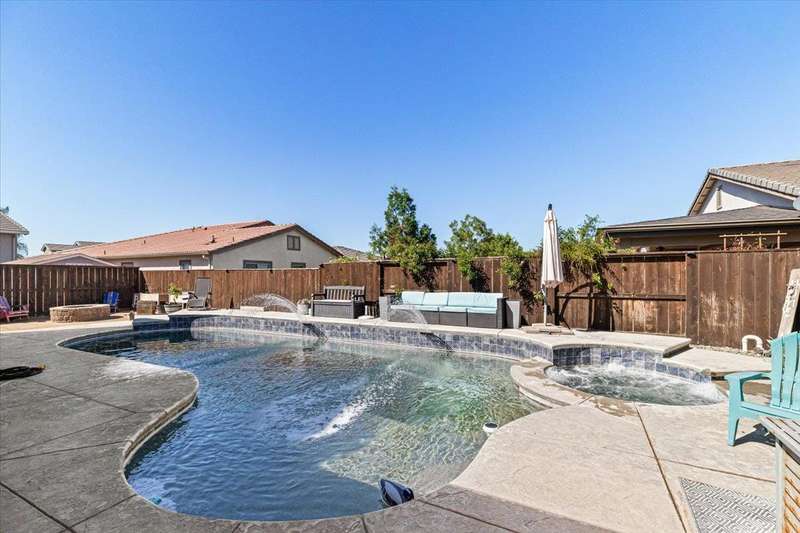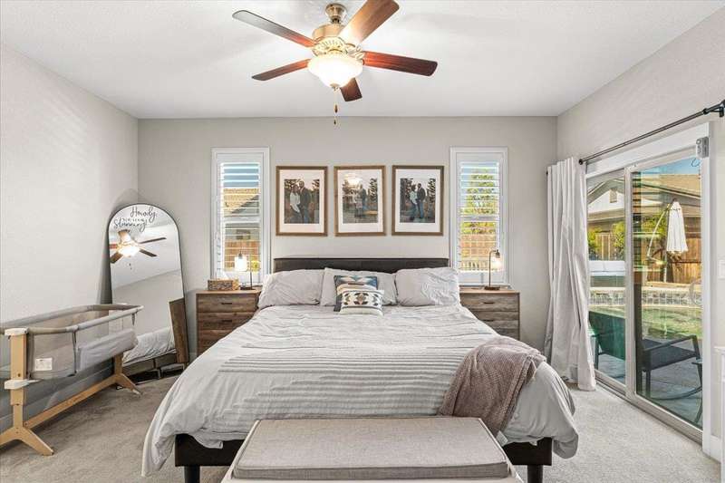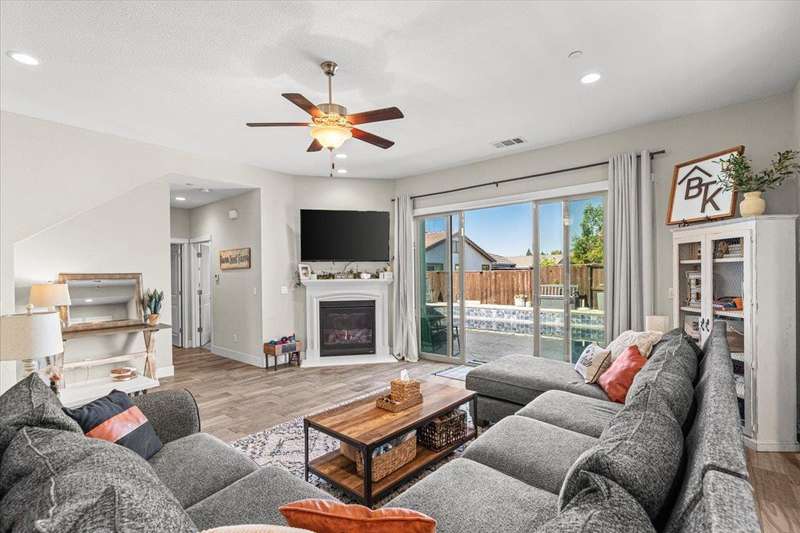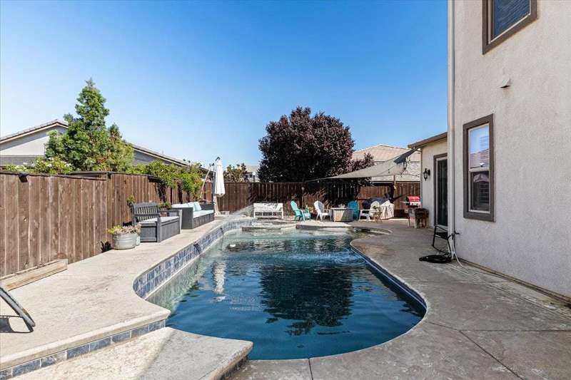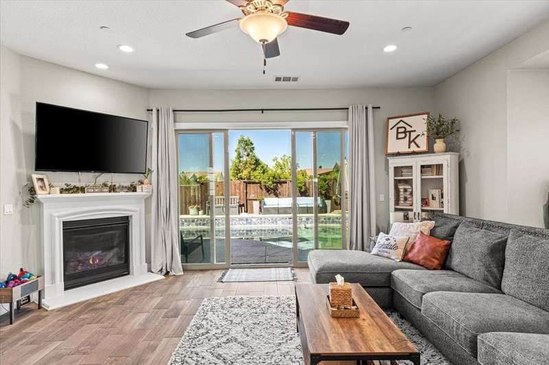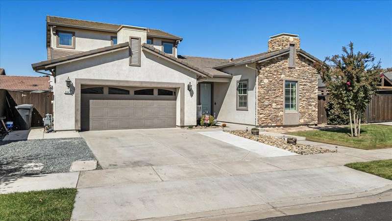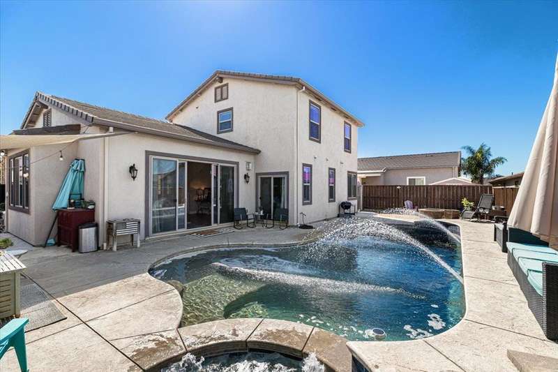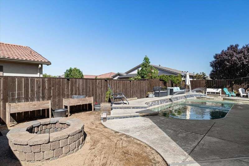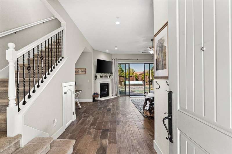 Bridle Ridge Beauty! Great 3 bed 2.5 bath home with fabulous finishes. Floor plan features a ground floor Primary with additional bedrooms + bonus room/loft upstairs. Backyard features a sparkling swimming pool and spa along with a fire pit, ready for your backyard entertaining.