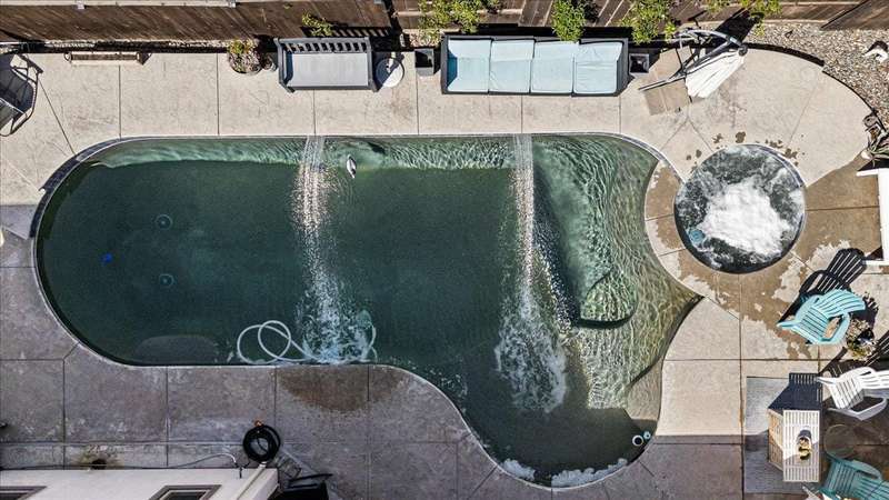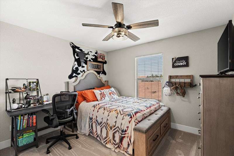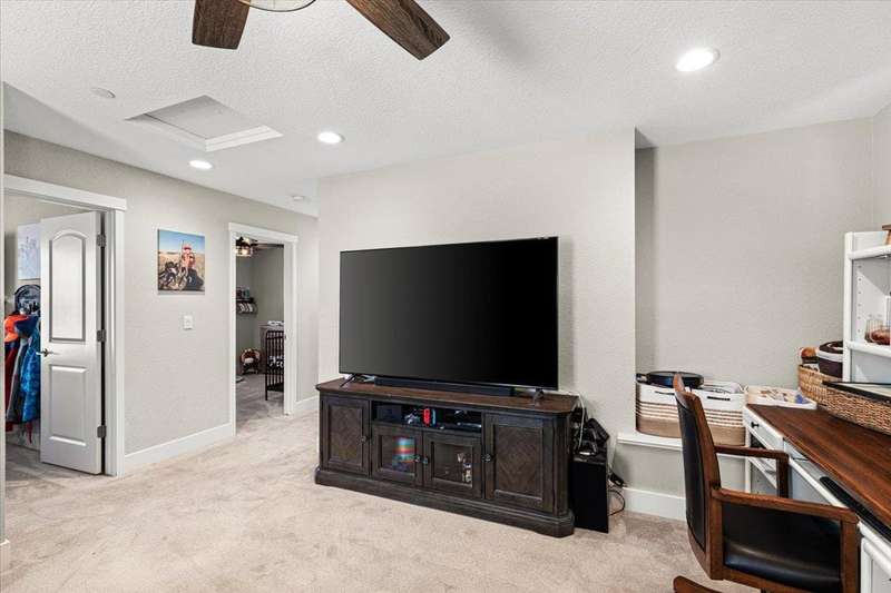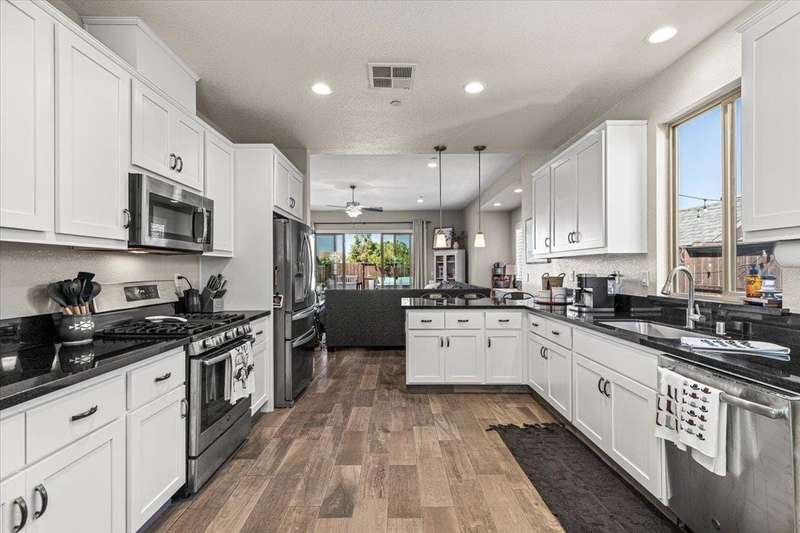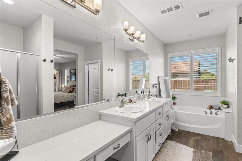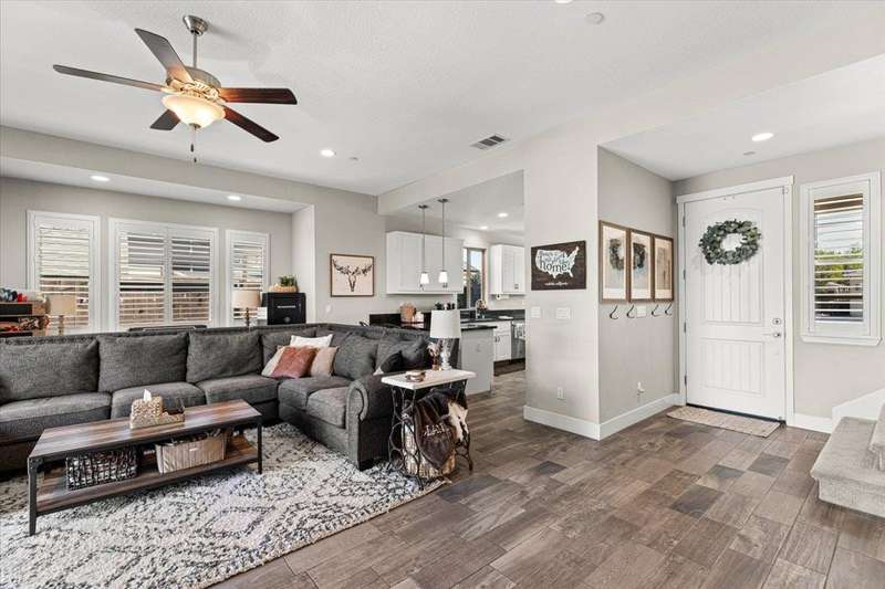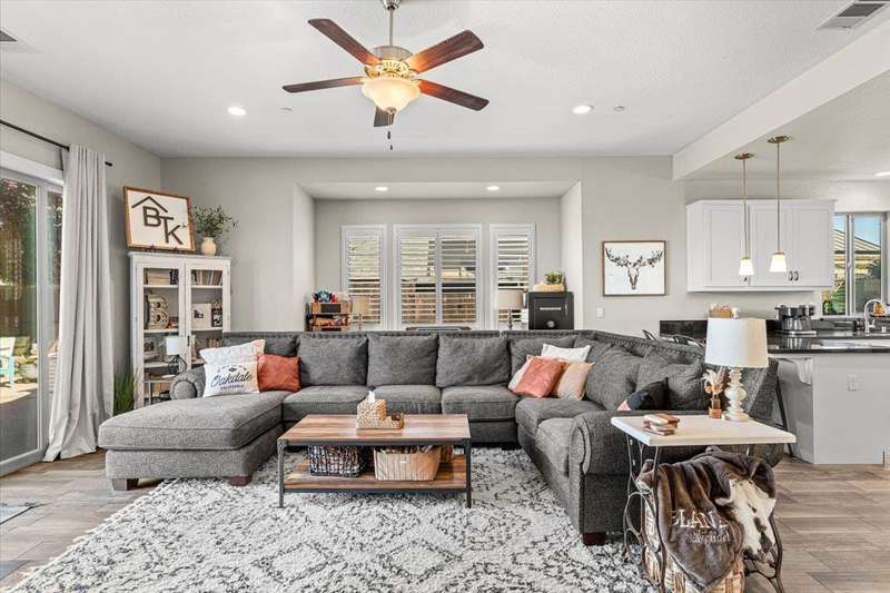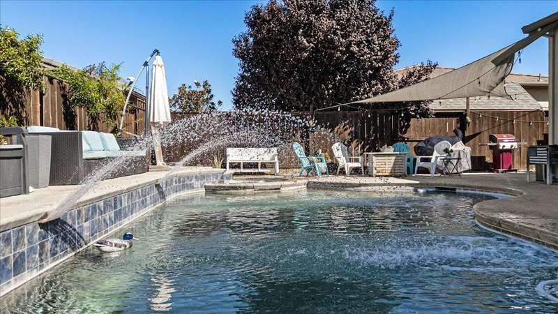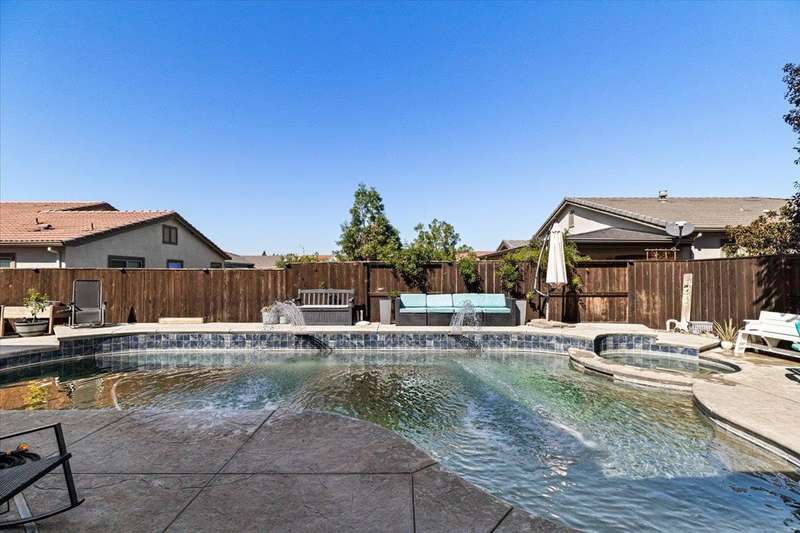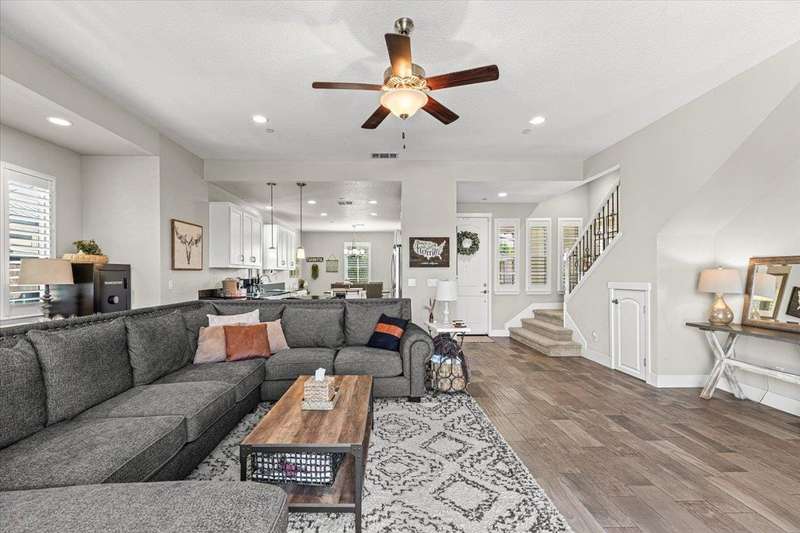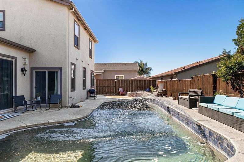 Bridle Ridge Beauty! Great 3 bed 2.5 bath home with fabulous finishes. Floor plan features a ground floor Primary with additional bedrooms + bonus room/loft upstairs. Backyard features a sparkling swimming pool and spa along with a fire pit, ready for your backyard entertaining.