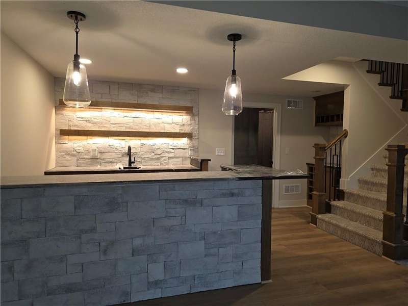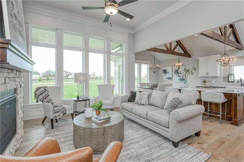 Lot 122 The "Prairie Rose" by McQueen Homes! Spectacular home and LAKE views in a GOLF COURSE COMMUNITY!! Professional photos coming soon. The finished photos and tour are from a previous similar home. Can be ready in 30 days or less! Reverse plan with open Great Room full of windows with fireplace. Open to the Kitchen and Dining Area with large Island & walk in pantry. The Primary Bedroom boasts a double box up ceiling and windows to view the lake! Additional higher transom windows on a feature wall for added light. Unique Primary Bathroom has a walk in shower and a stand alone tub with a view of the lake! Second Bedroom and Bath are on the main level. The Lower Level walkout Rec Room includes a wet bar, entertainment area and gorgeous upgraded sliding doors to your outdoor living. A full bath and Bedrooms 3 & 4 complete the lower level. Good storage! Large covered deck and additional uncovered deck for viewing the Lake and enjoying the outdoors as well as a large patio at the lower level walk out. All homes in the Boulder Estates come with irrigation system and fully sodded yard. Riprap seawall at property edge also included. Convenient highway access. Ten minutes to the Legends and 30 minutes to the airport and most other parts of the metro area as well as Lawrence. Community pool, play area, basketball, tennis and pickleball courts. Wonderful restaurant open to the public. Acclaimed Basehor-Linwood Schools!