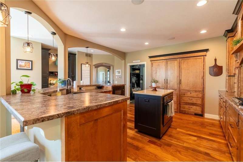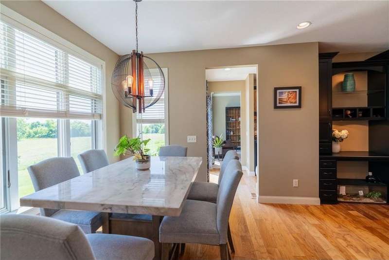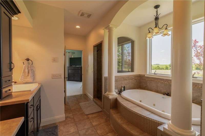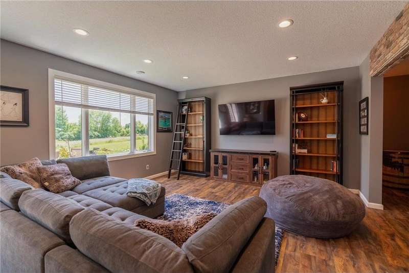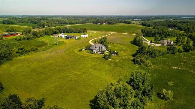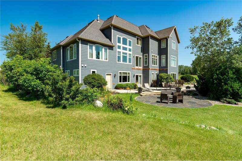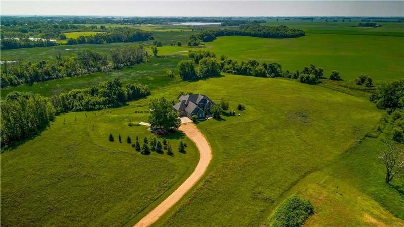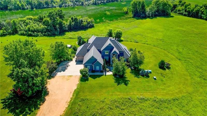 Luxury living in the countryside: The best of both worlds! This 5-bed, 5-bath home, featuring over 6,000 fin sq ft of modern touches, rests on over 12 acres of beautiful land. To name a few highlights, the main level greets you with vaulted ceilings, a great room featuring a dual-sided fireplace, and a spacious kitchen with panel-ready appliances. Here, you will also find a discreet, two-way door that leads you to your pantry, along with an additional access to your basement and garage. The main level also includes an impressive primary and ensuite with a jetted tub, separate walk-in shower, dual sinks, and large walk-in closet. Upstairs, you will find three additional bedrooms directly attached to a bathroom, as well as a laundry room for your convenience. The basement is equally expansive with its custom bar, furnished theater room, private office, gym, and guest bedroom, coupled with a walkout that leads you to the beautiful patio space/outdoor oasis. The home also features a 3-stall attached garage with an additional 4th stall tucked underneath. To top it all off, the land surrounding the property contains grass that can be harvested! Come check this one out today!