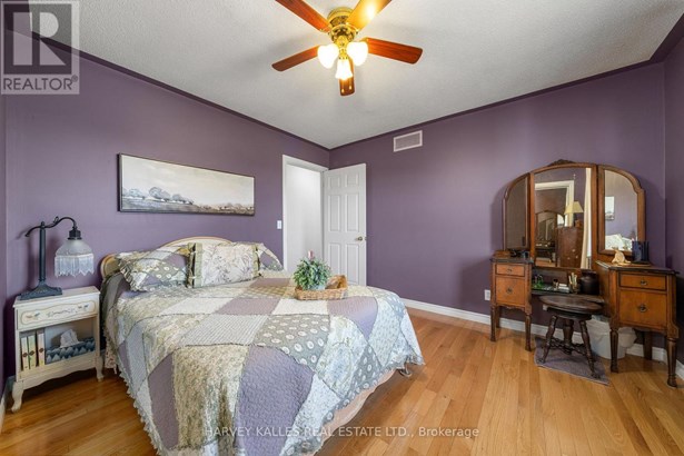 Country comfort meets spacious living in this bright and airy raised bungalow, offering over 1,800 sq ft of space to relax, entertain, and enjoy the peace of a quiet rural setting. Step inside to a sun-filled main floor where open, flowing spaces welcome you. The generous living room, bathed in natural light from south-facing windows, opens onto a large back deck, perfect for morning coffee or summer gatherings. The adjoining dining room leads into a charming kitchen and breakfast nook, where west-facing windows overlook lush perennial gardens, offering a beautiful start to your day. The primary bedroom is a true retreat with its private sitting area, ensuite bath, and patio door walkout to the deck: your own personal escape just steps from bed. Two additional bedrooms and a full bath complete the main level. Downstairs, discover a spacious rec room with its own walkout, plus two more bedrooms, ideal for guests, a home office, or hobby space. Set on just over 2 acres, this property is a gardeners dream with established perennial beds, space for chickens or vegetable gardens, and trails to wander at your leisure. Here, every season brings new beauty, and every day feels a little more connected to nature.