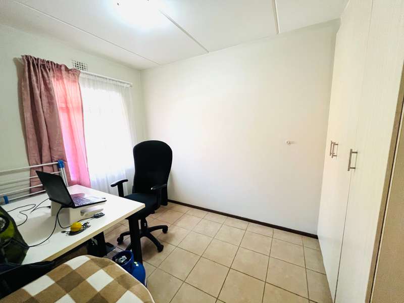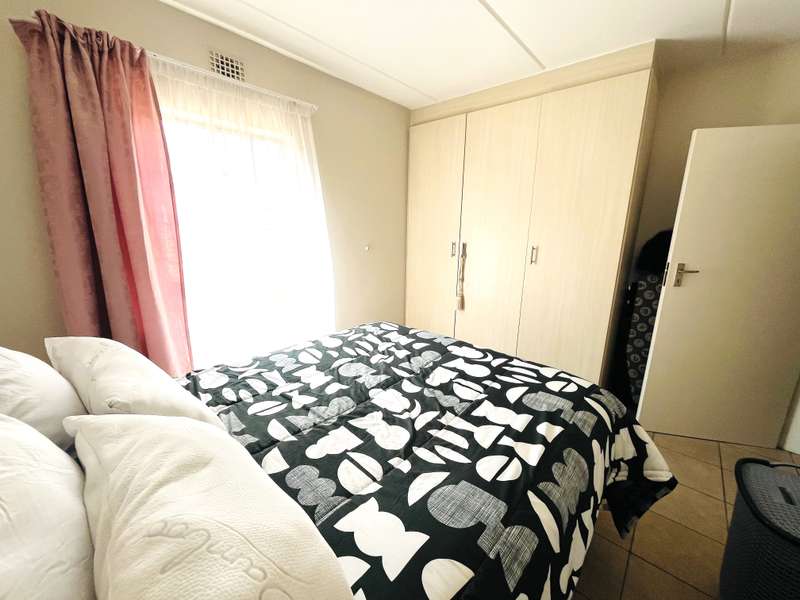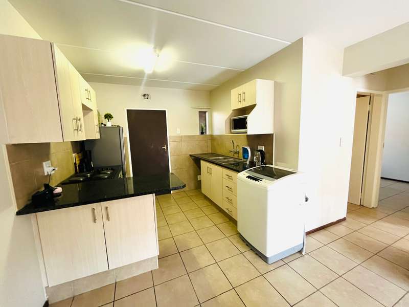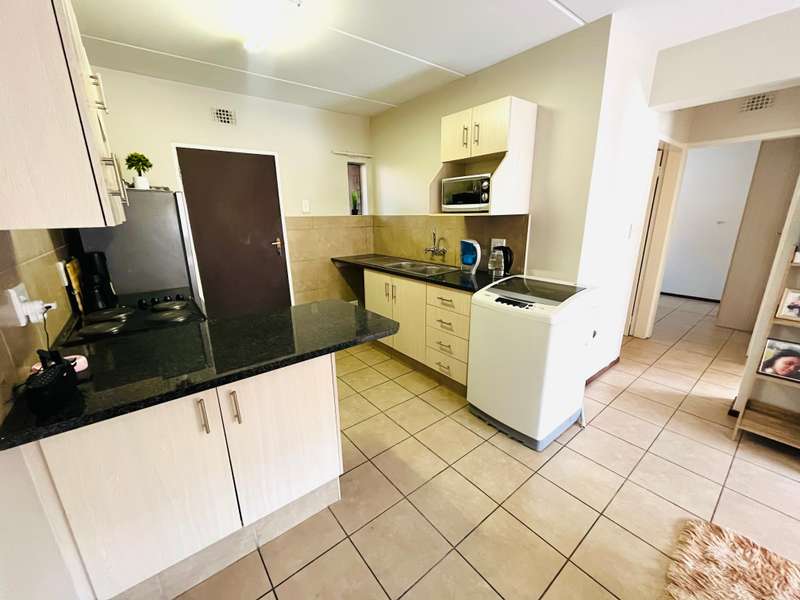 Welcome to a child friendly complex, located in a prime area in Midrand. The complex is attractive for it's beautiful hangout spot where you can chill and host your guests outdoors. There's a Tuck shop, a car wash and kids play area within the complex. The schools are close by, and Sanridge square and Carlswald shopping Centre, which have restaurants and many convenient stores, are just 5 minutes away from here. The apartment features an open plan kitchen with modern built-in cupboards and a built-in electric stove. Opposite the kitchen is an open plan lounge and a spacious balcony. There's one bathroom with a beautiful bath tub, with a shower over bath, half-covered on the side with shower glass. The 2 bathrooms are spacious and fitted with built-in cupboards. Contact me to find out more on this property
