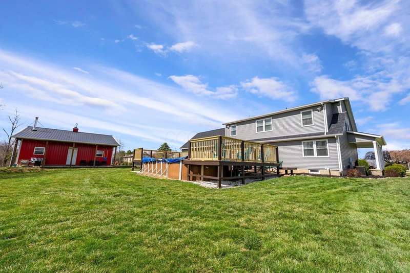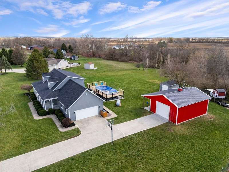 Nestled on nearly 2 private acres in the highly desirable Teays Valley school district, this property offers the perfect blend of peaceful seclusion and everyday convenience. Backing up to a rippling creek and mature woods, there are no rear neighbors?just nature and tranquility. Located on a quiet, low-traffic road with no large neighborhoods nearby, this is a rare opportunity to enjoy space, serenity, and privacy.The home itself is designed for making memories?indoors and out! Relax on the charming wraparound porch or in the cozy family room with scenic views. The updated kitchen features stainless steel appliances, built-in bench seating, and plenty of room for hosting. A first-floor bedroom with full bath makes an ideal guest or MIL suite, while the Jack & Jill bath and mudroom with abundant storage add thoughtful convenience.The finished basement offers additional living space and storage. Outside, enjoy the 15x30 pool, a 24x32 heated pole barn with electric and covered porch?perfect for hobbies or gatherings. Additional highlights include a new roof, siding, and septic system.Whether you're drawn to the home's charm or the peaceful, private setting?it's easy to see why this one is special.