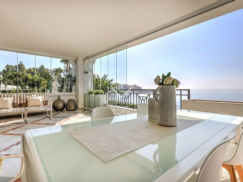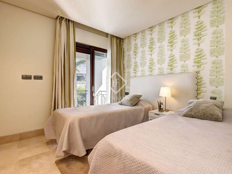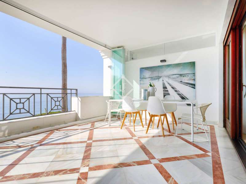 This elegant two-bedroom apartment is located on the beachfront at Doncella Beach, one of the most exclusive developments in Estepona. The property has a spacious and bright interior design. It has two bedrooms with en-suite bathrooms, offering privacy and comfort. The main suite has direct access to the private terrace with stunning views of the Mediterranean Sea, allowing you to enjoy the breeze from your bed. The second bedroom also has a separate terrace. Originally a three-bedroom property, the new owners have the option to keep the two larger rooms or reconvert to the original three. The living room connects to the terrace, creating a perfect space for both relaxing and entertaining guests. The fully equipped kitchen is complemented by a practical laundry area, providing additional functionality. The facilities and gardens are meticulously maintained, and the development has 24-hour security. The apartment includes parking and storage room. Please contact us for further details.