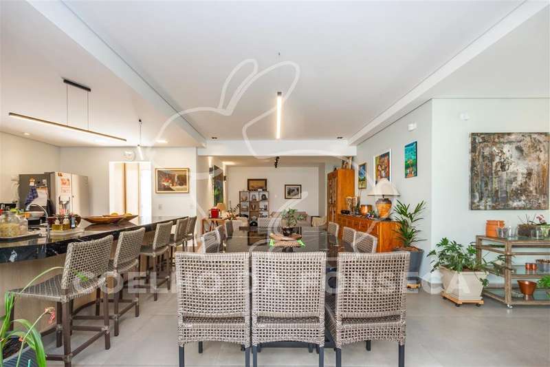 Cozinha planejada, aberta integrada com a sala jantar, churrasqueira, Guarda Louças , Dispensa, salas com 3 ambientes, 1 sala de estar. O vidro é um diferencial da casa, pois a