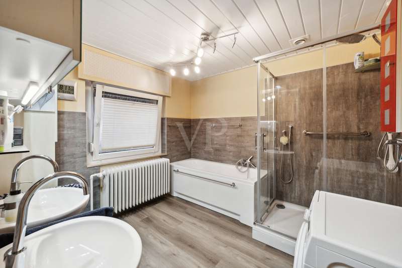 We are pleased to present this semi-detached house in Rheine Eschendorf - an interesting property especially for you as a family or for couples who are looking for a well-kept house with enough space in a quiet area. The property has a living space of approx. 130.08 m², a plot area of approx. 482.00 m² and a total of 5 rooms. The property was built in 1938 and extended in 1969. The rooms extend over the first floor and the top floor and thus offer sufficient space for individual design. On the first floor is the living area, which offers a cozy atmosphere to relax and enjoy. A highlight of the living area is the access to the property's terrace, which offers space for cozy hours outdoors. The kitchen and dining room are separate from the living area. The kitchen is equipped with an attractive kitchen unit and has all the necessary electronic appliances. The full bathroom is also located on the first floor and was renovated and attractively designed in 2019. There is also a guest WC and a bedroom on the first floor. The top floor of the property houses two bedrooms and a further WC. The bedrooms offer enough space for individual design. Built-in wardrobes in one of the bedrooms provide storage space. To park your car or trailer, you have a free parking space and a garage. From the garage you have access to the garden. Have we piqued your interest? Please contact us for more information or to arrange a viewing.