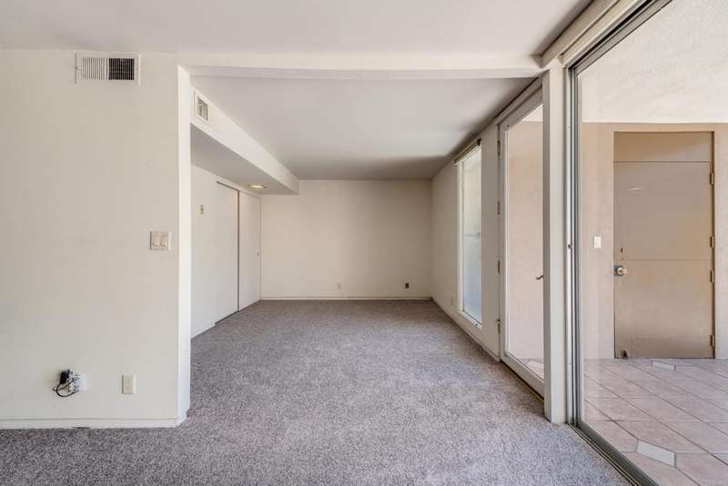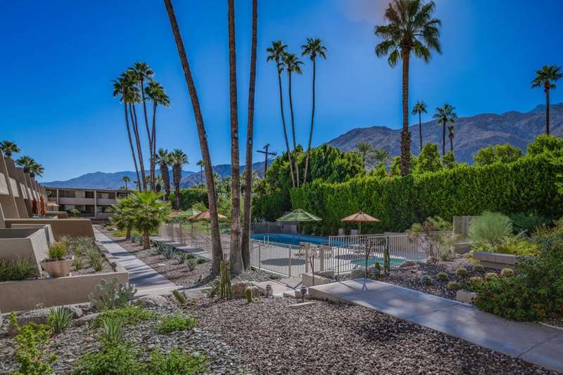 Rare Mid-Century Find -- Uptown Design District Modern Living. Step into the Palm Springs lifestyle of the 1960s -- sleek lines, open spaces, and indoor-outdoor living at its best. This rare 2-bedroom, 2-bath residence is located within the iconic ''Villa de Las Palmas'', a gated, 24-unit Mid-Century Modern community built in 1962. Perfectly situated on West Via Lola, once affectionately known as ''Millionaire's Row,'' this address captures the timeless glamour of the Uptown Design District. Inside, discover an airy living and dining space wrapped in dramatic floor-to-ceiling glass -- approximately 15 feet wide by 8 feet high -- framing postcard views of Mt. San Jacinto. The home's layout flows effortlessly to a spacious 15' x 19' entertaining balcony (approx. 285 sq. ft.), where cocktail hour meets sunset in true Palm Springs style. All indoor and outdoor spaces of the condo are on the same level. Beautifully renovated greenbelt and desertscape (2023) with year-round heated Pool, Spa and Fire/Water Feature ... all facing Mt. San Jacinto. Don't forget the hard-to-find, assigned, underground garage parking space. Steps from Ernest Coffee, Tailor Shop Craft Cocktail Bar, Hyphen Wine Shop, Saffron & John's restaurants. Less than 1/4 mile to 849, Jake's, Cafe La Jefa, Workshop & Trio (which is a 3 minute walk). Stroll or bike through your exclusive Old Las Palmas neighborhood any day of the week. HOA allows 30-day or longer rentals. Pets welcome. Two renovated units recently sold for $870,000 each (2025). NOTE: Tax Records indicate every unit in this complex is only 1 Bedroom. Ask your agent for photos of the adjacent condominium that was beautifully renovated a few years ago. Transform Unit 7 into the ''Palm Springs Getaway'' of your dreams!