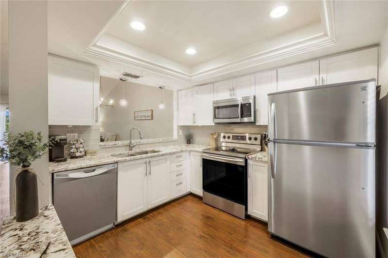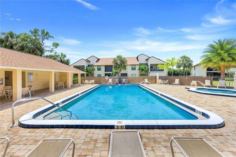 Beautifully Remodeled 2-Bedroom Vacation Condo Being Sold Turnkey in the Heart of SW Fort Myers! This updated second-floor, 2-bedroom, 2-bathroom condo is located in the amenity-rich community of The Club at Crystal Lake. Enjoy resort-style living with access to a heated community pool, relaxing spa, clubhouse, scenic walk/bike paths, tennis and pickleball courts, and more! One of the perks of being on the second floor: vaulted ceilings, which create an open and airy feel throughout the main living space. The condo features durable vinyl wood flooring throughout, with carpet only in the guest bedroom and sold fully furnished. Both the front and rear porches are fully screened, allowing for great cross-breezes and added privacy. The back porch includes storm shutters-making it easy to lock up and leave with peace of mind. You'll also appreciate the abundance of detached storage and the included cable/internet, water, and sewer as part of your monthly HOA fees. Perfectly positioned in Southwest Fort Myers, you're within walking distance to community amenities and just minutes from Lakes Park, Lakes Regional Library, Barbara B. Mann Performing Arts Hall, and FSW. Shopping centers, restaurants, and grocery stores are nearby, and Fort Myers Beach, Sanibel, and Captiva Islands are only a short drive away. Whether you're seeking a full-time home or seasonal getaway, this condo delivers comfort, convenience, and Florida living at its best.