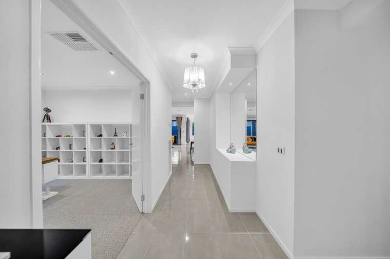 Positioned in the prestigious Kingwell Estate, this superbly designed Carlisle home delivers the ultimate modern lifestyle with multiple light-filled living zones, premium inclusions, and an impressive layout crafted for effortless family living and entertaining. Just moments from Williams Landing Train Station, Town Centre, schools, kindergartens, and major freeway access, this location offers unbeatable convenience for busy families. Multiple Living Spaces • Spacious & versatile floorplan featuring three living zones: formal lounge/rumpus, open-plan family/meals area, and a dedicated cinema room • Light-filled interiors that transition seamlessly to the alfresco Gourmet Modern Kitchen • Large island bench with ample preparation space • Quality stainless steel appliances including 900mm cooktop & oven, dishwasher, and built-in microwave • Large walk-in pantry providing exceptional storage Outdoor Entertaining at Its Finest • Fully decked, fully under-cover alfresco area perfect for year-round entertaining • Low-maintenance landscaped backyard with seamless indoor–outdoor flow Bedrooms & Bathrooms • Master suite featuring walk-in robe and luxe ensuite with dual vanity, oversized tiled shower base, and dual shower heads • Three additional generously sized bedrooms • Central bathroom with separate toilet • Walk-in linen closet for added storage Additional Features • Ducted heating & cooling • Pet-friendly security alarm system with zoning, app control & Ring doorbell • High ceilings, downlights & quality light fittings • Composite timber decking front and back • Solar hot water system • Quality blinds, curtains, plantation shutters & sheer/block-out curtains • Feather-touch switches with Google Assistant/app control • Biometric door lock to garage entry • Double remote garage with double driveway • Concrete on one side of the home • Generous laundry with yard access Location Benefits • Close to primary schools and kindergartens • Minutes to Williams Landing Train Station & Town Centre • Easy and quick access to the freeway Contact Us Today to Arrange a Private Inspection Haresh Mutreja – 0430 095 116 Di Zhu – 0410 911 167