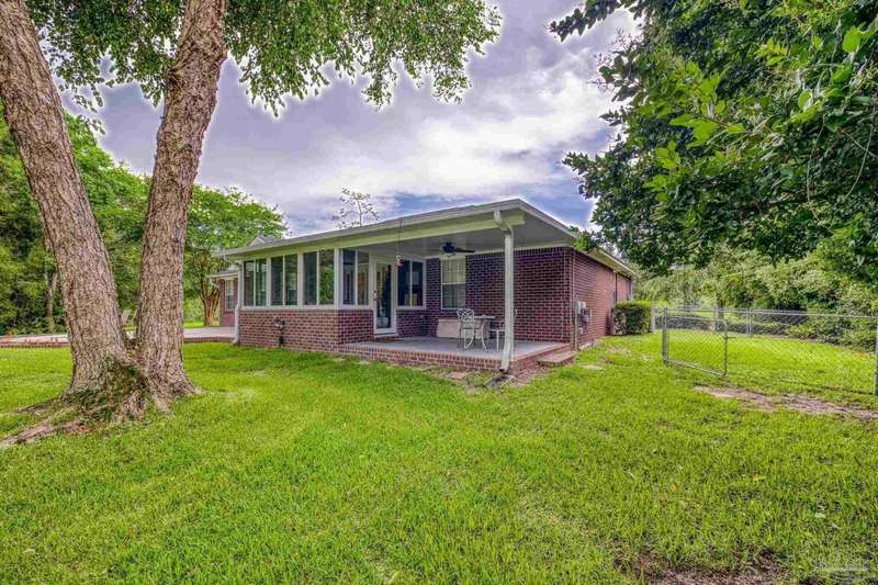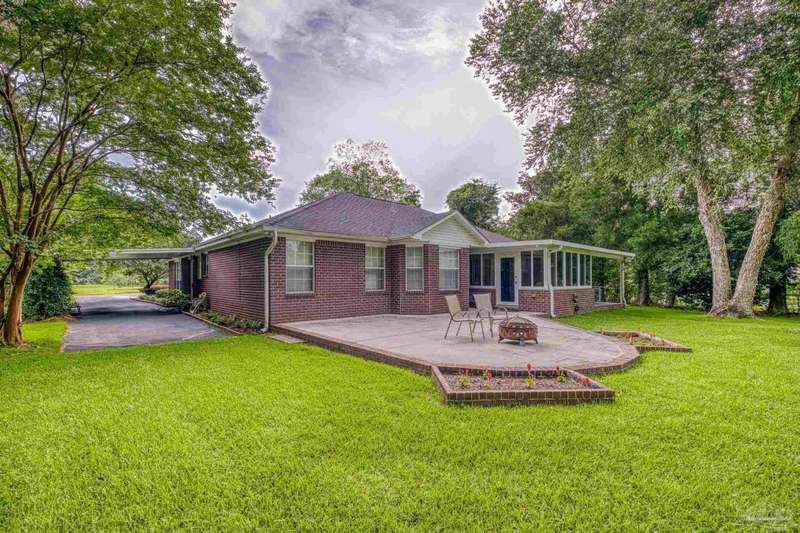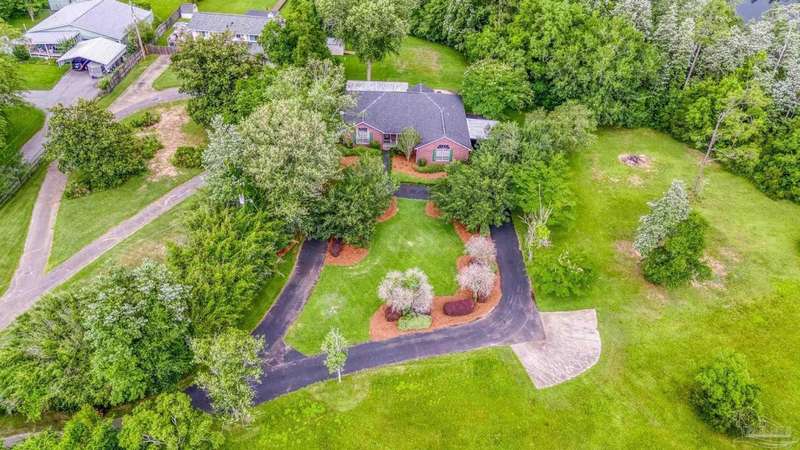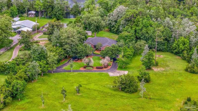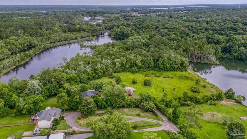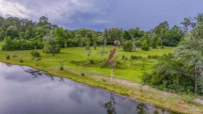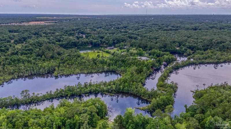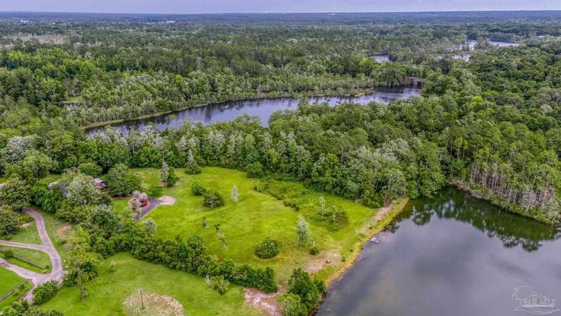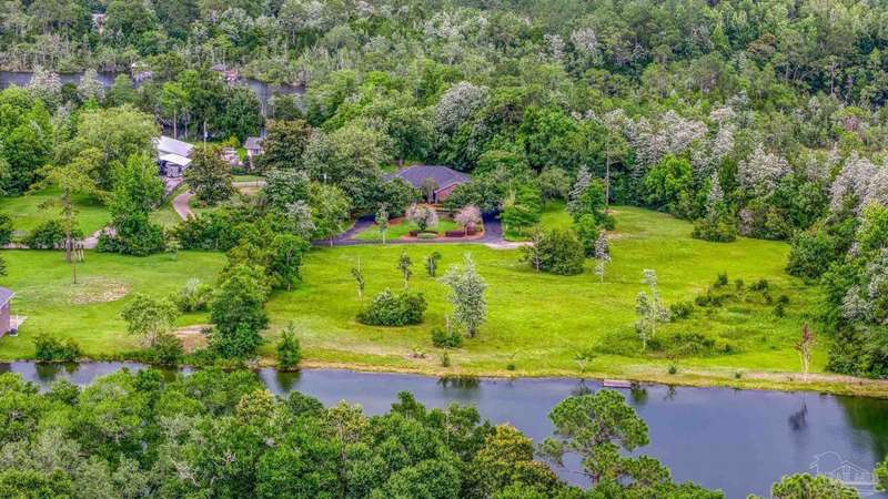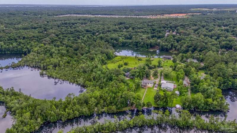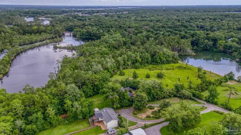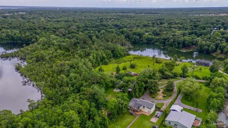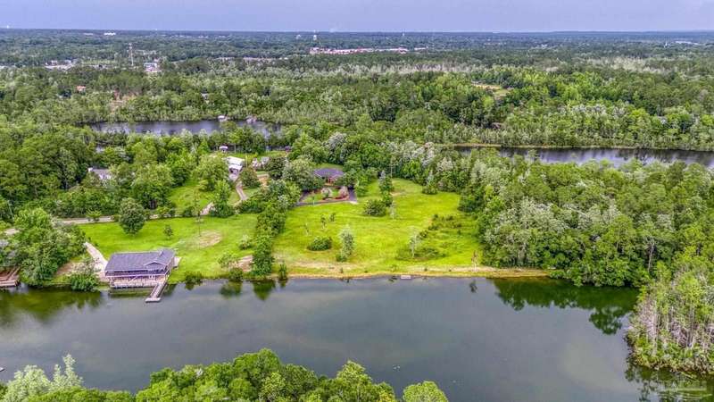 Nestled in the heart of Milton, Florida, this exceptional 9.84-acre estate comprises four contiguous parcels, offering unparalleled privacy and direct access to both Lake Kilburn and Pond Creek. With over 1,000 feet of combined waterfrontage, this property presents a rare opportunity for those seeking a tranquil retreat with convenient proximity to local amenities. The residence features a spacious 4-bedroom, 2-bathroom home designed for comfort and style. A welcoming front porch with an intricate glass front door leads into a bright and airy living room, complemented by high ceilings and abundant natural light. The versatile floor plan includes a large family room, den, or flex space, providing ample room for relaxation or entertainment. The updated kitchen boasts beautiful wood cabinetry with glass inserts, granite countertops, a dry bar area with a granite and tile backsplash, and new stainless steel appliances. Adjacent to the kitchen, the dining area offers scenic views of the lush, landscaped surroundings. The master suite serves as a private sanctuary, featuring a jetted soaking tub, separate shower, double vanity, and two walk-in closets. Three additional bedrooms, each with walk-in closets, ensure ample storage and personal space for family or guests. Outdoor living is enhanced by a climate-controlled sunroom, providing year-round enjoyment of the serene landscape. A walkway leads directly to the deep water of Pond Creek, offering navigable access to Blackwater Bay for boating and water activities. The property is further complemented by a circular driveway, carport, and updated ceiling fans and fixtures throughout. This estate combines the tranquility of waterfront living with the convenience of being centrally located in Milton. Whether you're seeking a private retreat or a place to entertain, this property offers endless possibilities.