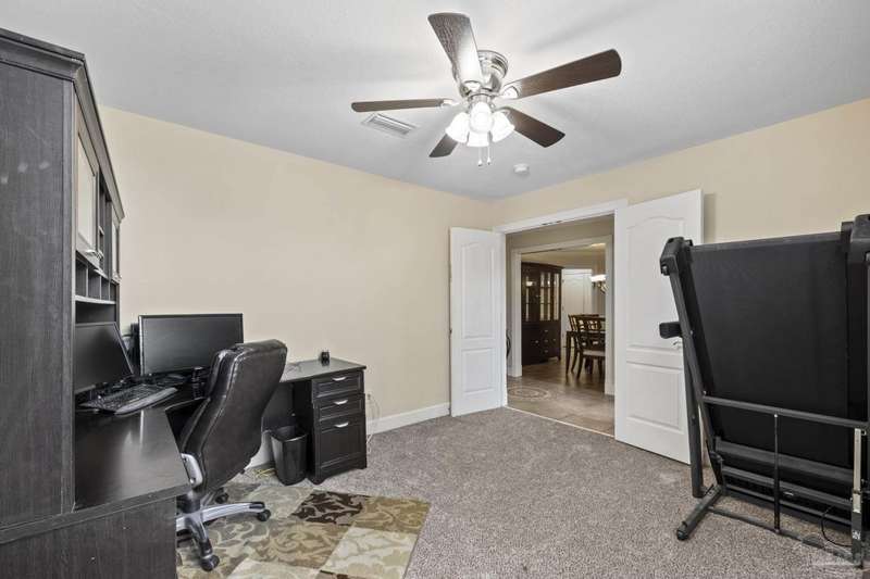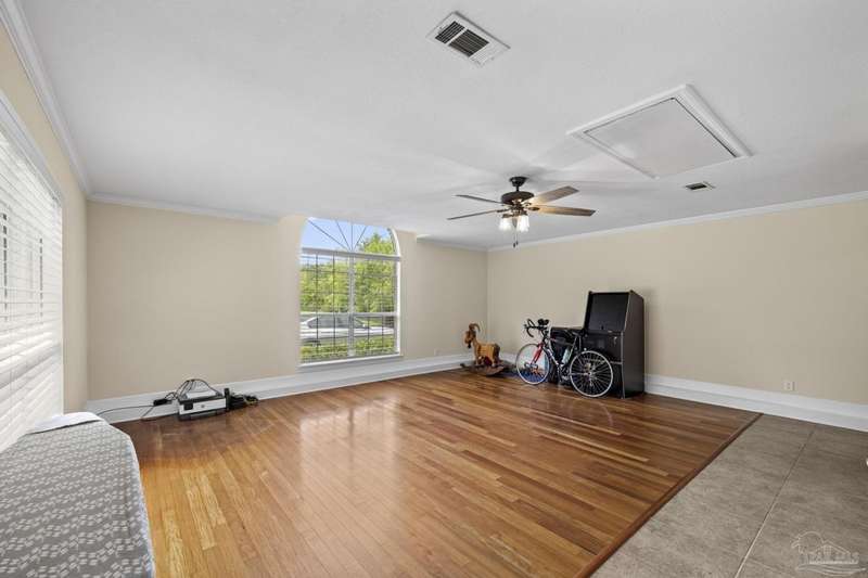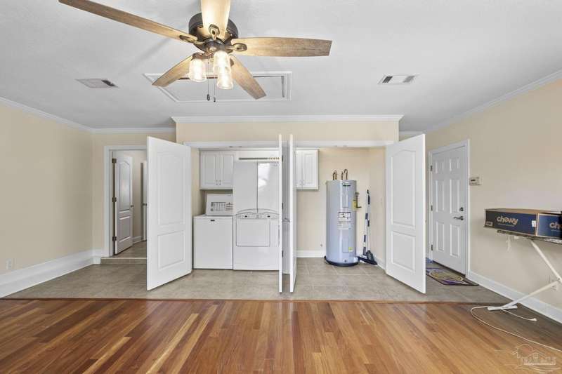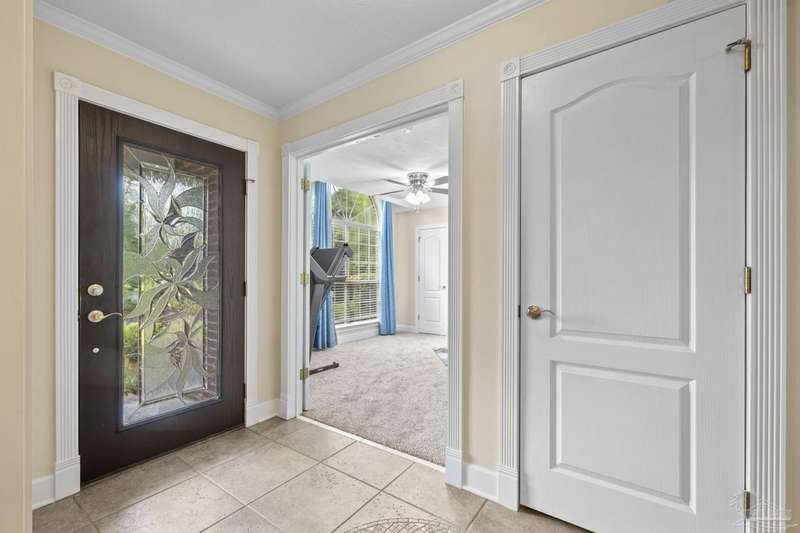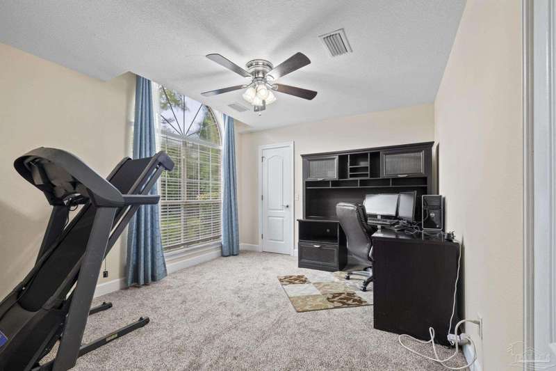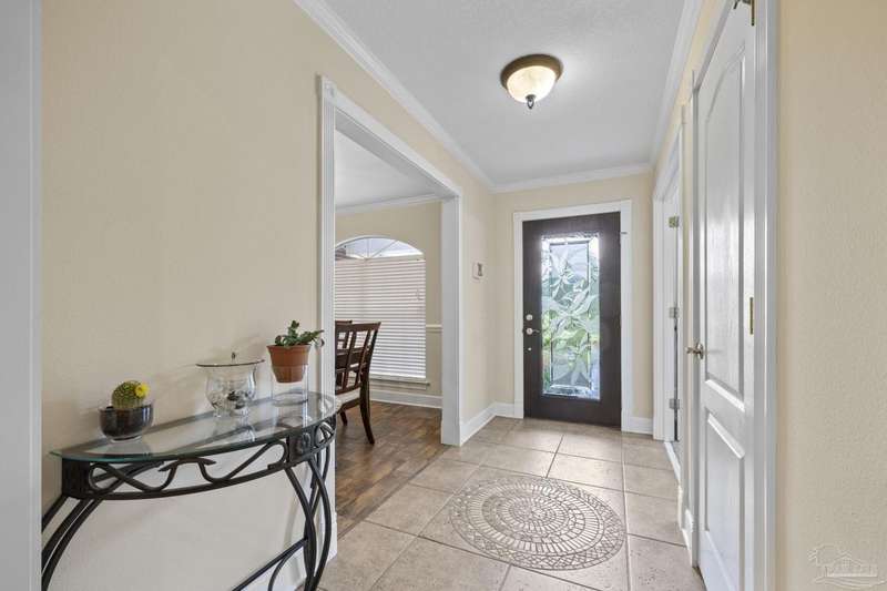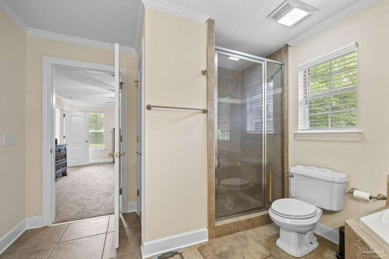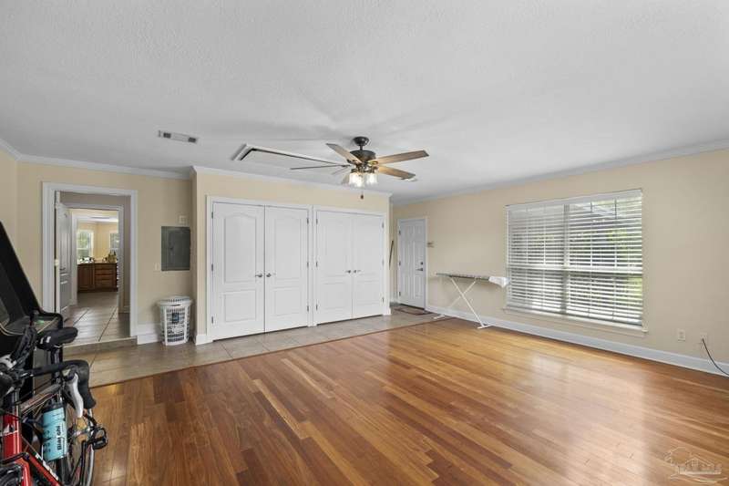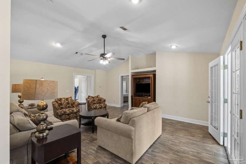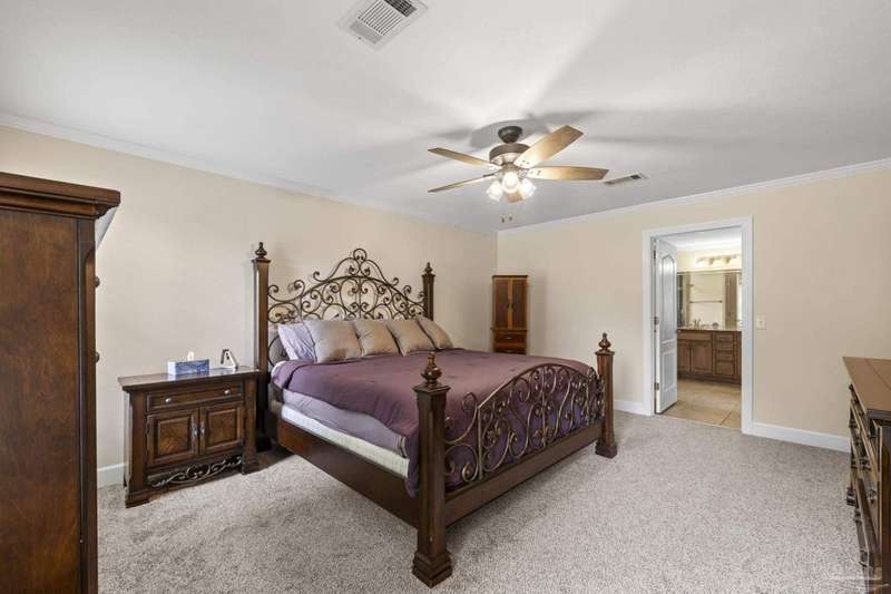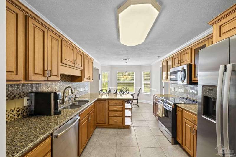 Nestled in the heart of Milton, Florida, this exceptional 9.84-acre estate comprises four contiguous parcels, offering unparalleled privacy and direct access to both Lake Kilburn and Pond Creek. With over 1,000 feet of combined waterfrontage, this property presents a rare opportunity for those seeking a tranquil retreat with convenient proximity to local amenities. The residence features a spacious 4-bedroom, 2-bathroom home designed for comfort and style. A welcoming front porch with an intricate glass front door leads into a bright and airy living room, complemented by high ceilings and abundant natural light. The versatile floor plan includes a large family room, den, or flex space, providing ample room for relaxation or entertainment. The updated kitchen boasts beautiful wood cabinetry with glass inserts, granite countertops, a dry bar area with a granite and tile backsplash, and new stainless steel appliances. Adjacent to the kitchen, the dining area offers scenic views of the lush, landscaped surroundings. The master suite serves as a private sanctuary, featuring a jetted soaking tub, separate shower, double vanity, and two walk-in closets. Three additional bedrooms, each with walk-in closets, ensure ample storage and personal space for family or guests. Outdoor living is enhanced by a climate-controlled sunroom, providing year-round enjoyment of the serene landscape. A walkway leads directly to the deep water of Pond Creek, offering navigable access to Blackwater Bay for boating and water activities. The property is further complemented by a circular driveway, carport, and updated ceiling fans and fixtures throughout. This estate combines the tranquility of waterfront living with the convenience of being centrally located in Milton. Whether you're seeking a private retreat or a place to entertain, this property offers endless possibilities.