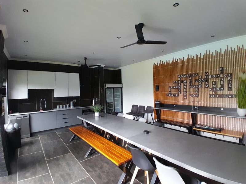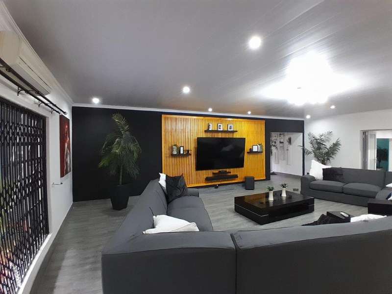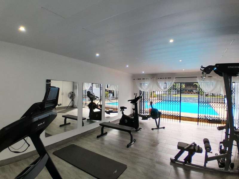 Discover the epitome of luxury living in this stunning 5-bedroom home. Boasting a modern design, the property features a spacious 3-car garage, 11 under-cover parking spaces, and air conditioning throughout. Each bedroom offers direct access to the inviting swimming pool, volleyball area, and a fully-equipped gym, creating a harmonious blend of relaxation and recreation. The entertainment area is perfect for hosting gatherings, complemented by a 2-bedroom flat for guests or additional family members. Practical amenities include a sizable generator room housing its own generator, a 5,000-liter Jo jo tank for water storage, and solar panels ensuring an eco-friendly touch to the pool. This residence seamlessly combines elegance with functionality, offering a lifestyle of unparalleled comfort and sophistication. Do not miss out on this opportunity of a life time!