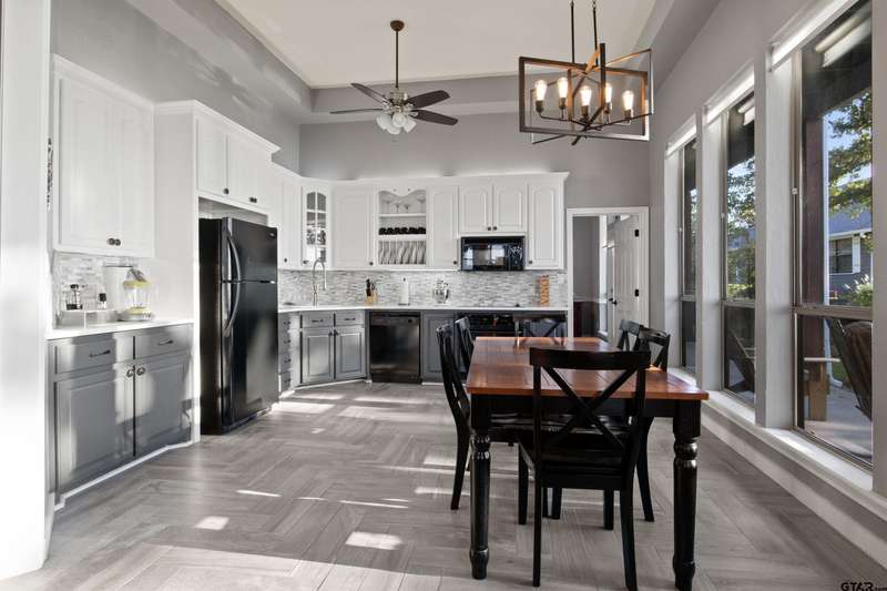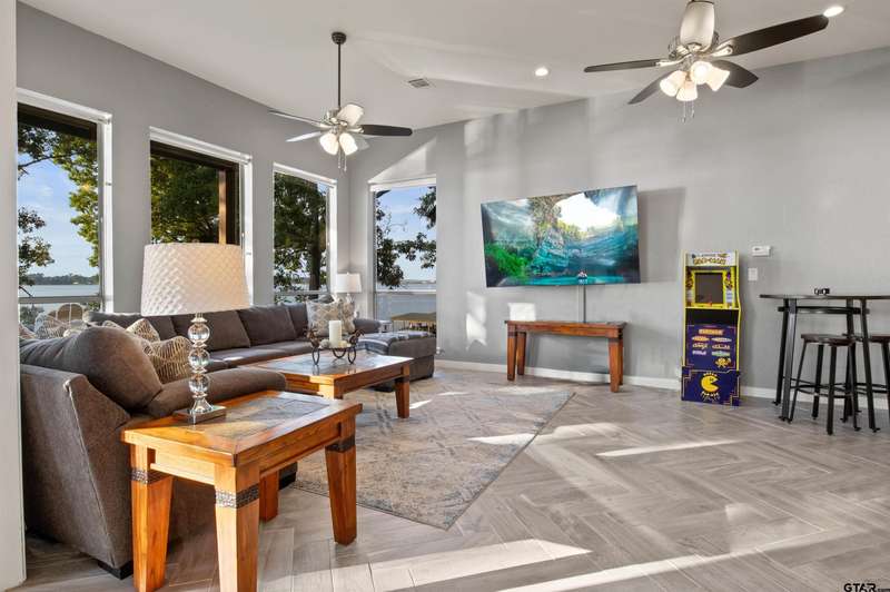 Discover a one-of-a-kind sanctuary on Lake Bob Sandlin at Thunderbird Point where luxury meets lakefront living. This exquisite property offers the perfect balance of comfort and elegance. The first floor welcomes you with a cozy living area showcasing stunning lake views, a see-through fireplace, and a dining space flooded with natural light. The primary suite is a true retreat with its private exit to the top deck porch and a lavish ensuite bath featuring a Jacuzzi tub, dual sinks, and a spacious shower. Downstairs, the fully renovated living area provides ample space for relaxation and entertainment, while the gourmet kitchen offers a front-row seat to breathtaking sunsets over the lake. The primary suite exudes sophistication with a modern ensuite bath, while the chic bunkroom is designed for both comfort and fun. Outside, the expansive back porches set the stage for memorable gatherings, leading to the 1,600 sqft boathouse with 180 ft of waterfront equipped with new lifts for all your watercraft needs. Unwind by the custom fire pit under the stars, surrounded by luxury touches like a new roof, freshly painted dock, and meticulously maintained grounds. Indulge in the ultimate lakefront lifestyle at this remarkable property. With proven VRBO income, this is multiple venture property waiting for you!
