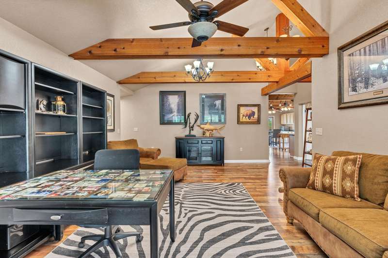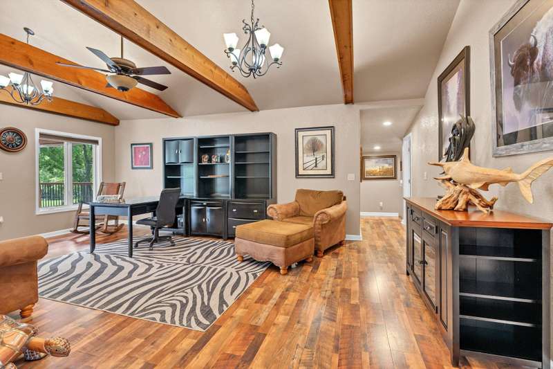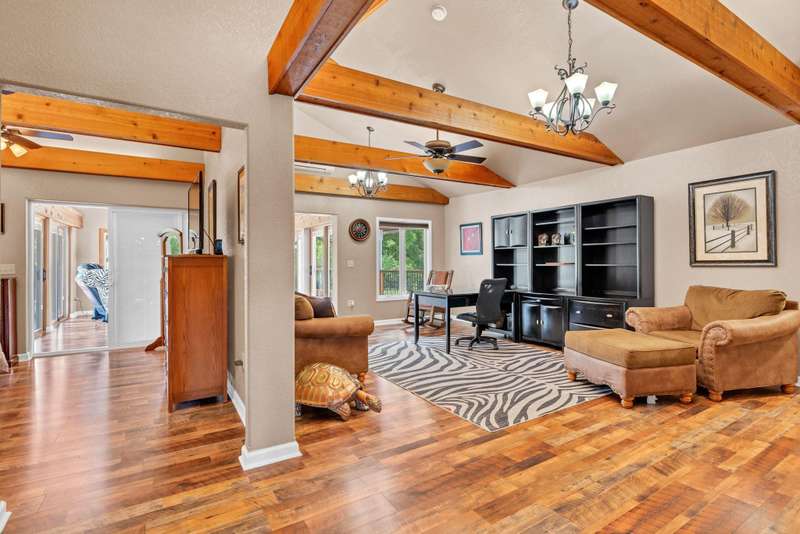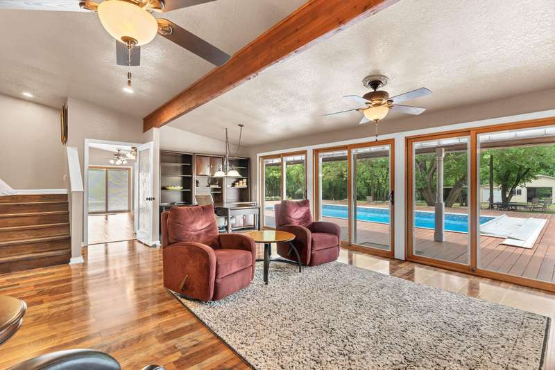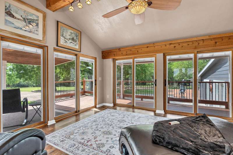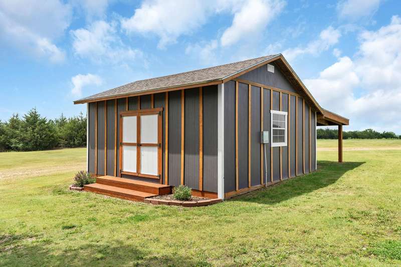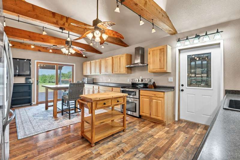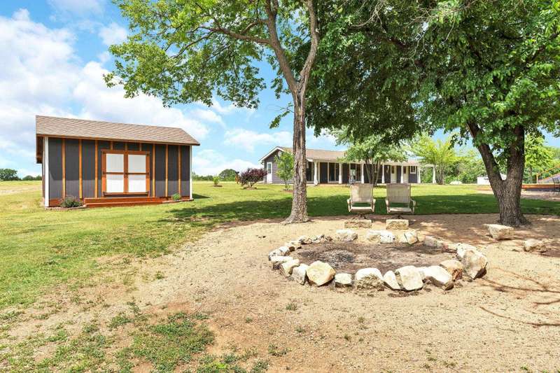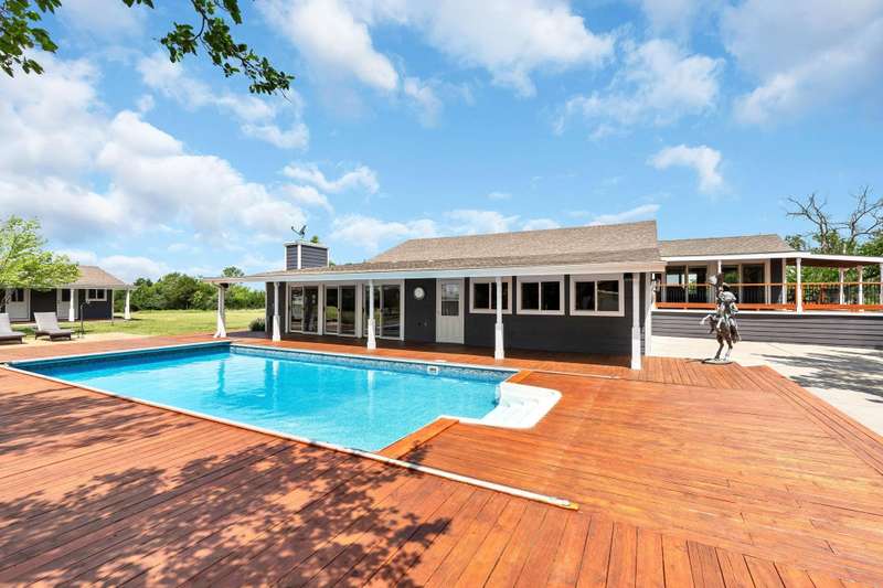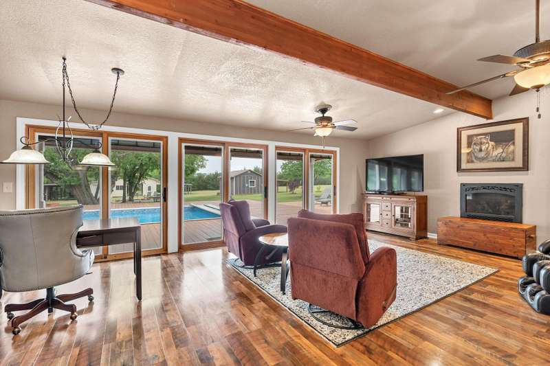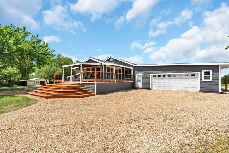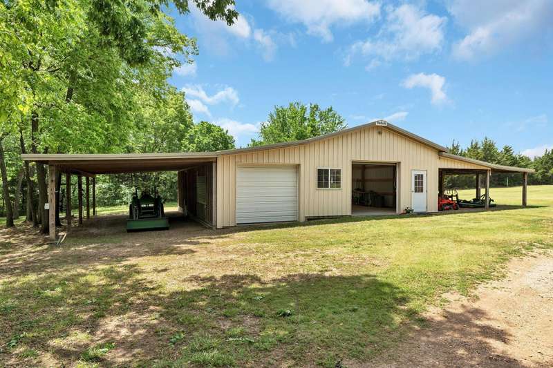 Situated on 10.5 acres in the Andover School District, 8139 SW Tawakoni offers a custom-built home, guest house, multiple outbuildings, and a poolall just minutes from Andover and East Wichita. The land has been meticulously maintained and includes stands of mature trees, rolling pasture ground, and a hedgerow along the road for added separation. The main home, built in 1991 and extensively remodeled in 2017, offers 2,944 square feet of above-ground living space with 2 bedrooms and 2.5 bathrooms. Features include exposed wooden beams, concrete board interior construction with extra insulation, and an oversized four-car drive-through garage with sloped floors for drainage. Outside, the chlorine pool with automatic cover is surrounded by large deck with ample outdoor lighting, great for parties and family events. The 1,200 square foot guest house, built in 2013, includes a full kitchen, one bedroom, full bathroom with a steam shower, large windows, and has an unfinished area that houses the pool equipment and washer and dryer for the guest house. Additional improvements include a 1,440 square foot barn with three roll-up doors, power, two exterior overhangs for storage, and 2 50-amp RV hookups, as well as a 320 square foot shed with power and loft storage. Utilities include a private well with softener, electric and propane heat, two septic systems (one for each residence), and Butler Rural Electric. Plumbing is also in place for RV waste cleanout. Tractor and equipment may be available for purchase separately.