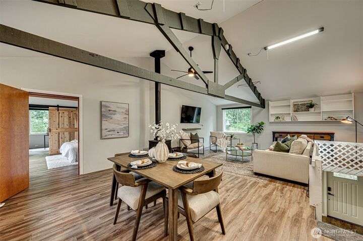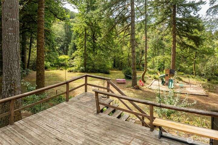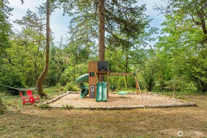 Rarely do properties like this come available. This unique offering allows you to live comfortably in a one bedroom apartment with 2 living areas, kitchen, bathroom and garage space while building your own custom home OR simply embrace the beauty of minimalist living with direct access to nature. The property features a flat building site, utilities in place, and a 4-bedroom septic ready to go along with a separate storage building or workshop . Located in a peaceful gated community on 5 private acres, you’ll enjoy your own ponds, walking trails, a stunning garden, and plenty of space to roam and explore. Let your imagination run wild, this is your chance to truly experience the magic of Pacific Northwest living.