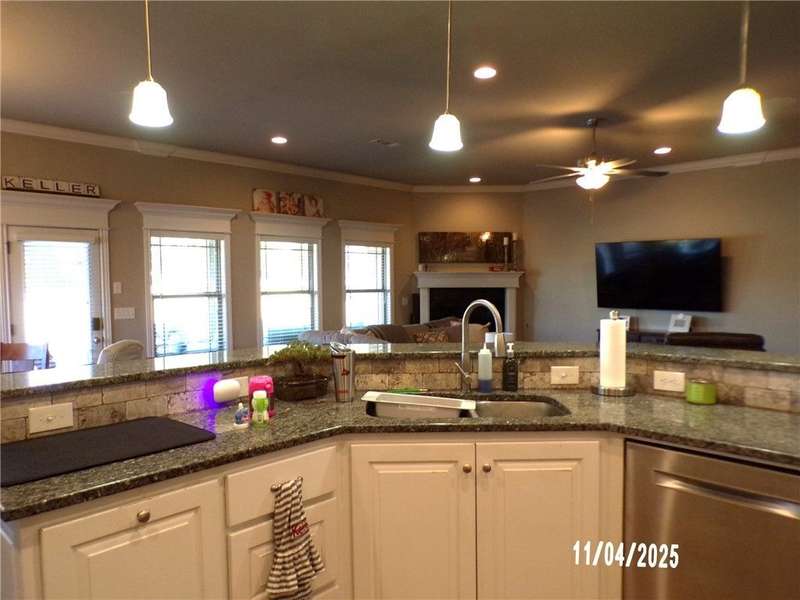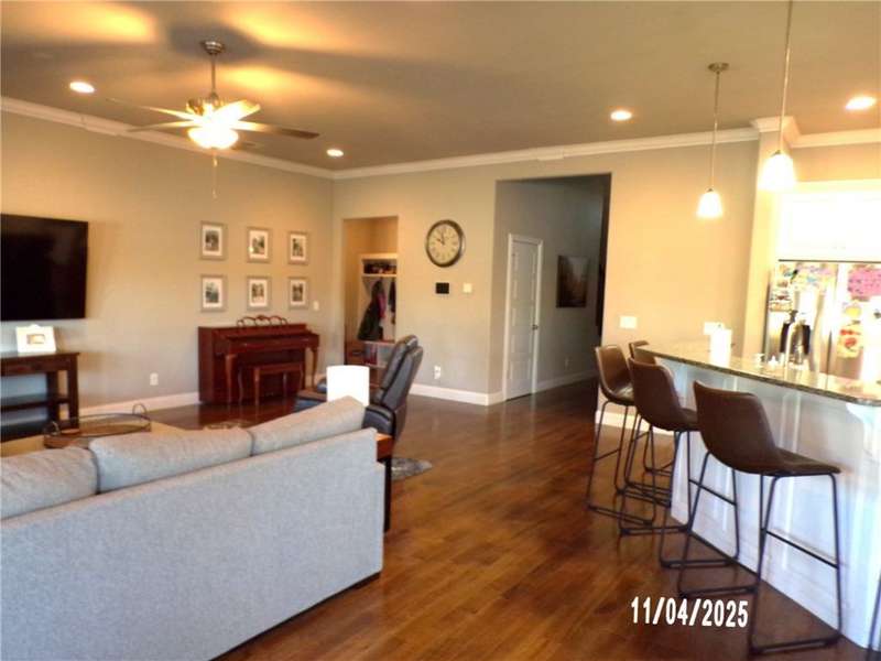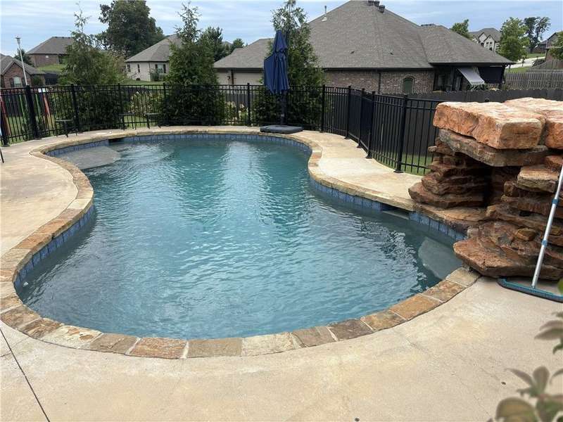 Classis style home with open concept split bedroom floor plan. Kitchen with breakfast bar, walk in pantry, gas burner stove top, wood floors throughout living area. Primary suite features whirlpool tub and walk in shower, dual vanities and walk through closet spaces. Three additional guest bedrooms and bath on main level. Upper level features 5th bedroom or rec room area as well as full bath. Covered back patio with corner fireplace and inground pool with water fall.