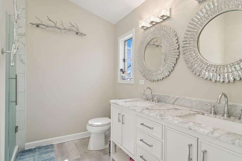 Don't Judge a Book by Its Cover. This Home Is a Showstopper Inside and Out! Tucked away in a private community with its own exclusive lake and private beaches, this stunning home is the perfect blend of modern luxury and peaceful living. While the exterior offers charming curb appeal, what's inside is sure to take your breath away. Completely gutted and thoughtfully renovated, this home features an open-concept first floor with brand-new luxury vinyl plank flooring over refinished original oakwood floors, a cozy fireplace with custom stonework, and a beautifully redesigned powder room with wainscoting and a custom rock accent wall. The dream kitchen includes a Thermador range, double wall ovens, smart refrigerator, and custom quartz countertops and mosaic backsplash. The first floor and master suite have all-new electrical and plumbing, providing both safety and efficiency. A brand-new open staircase leads to the second floor, where you'll find three spacious bedrooms and two updated bathrooms, including a primary suite with crown molding and a luxurious spa-like bathroom with a stone walk-in shower, double sinks, and a custom vanity. The fully finished basement adds even more space with a separate kitchen, dining area, and bedroom, plus a large full bathroom, ideal for guests or in-laws. You'll also find new double sump pumps with Wi-Fi connectivity and battery backup, offering peace of mind year-round. Outside, enjoy the benefits of a brand-new front porch, a completely enclosed privacy deck surrounding the entire backyard, and a 2+ car garage with ample storage. The backyard is perfect for entertaining or relaxing in your own private oasis. And here's one of the biggest perks: This home is located in an unincorporated area, which means significantly lower property taxes, a huge financial advantage!