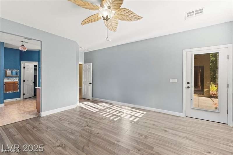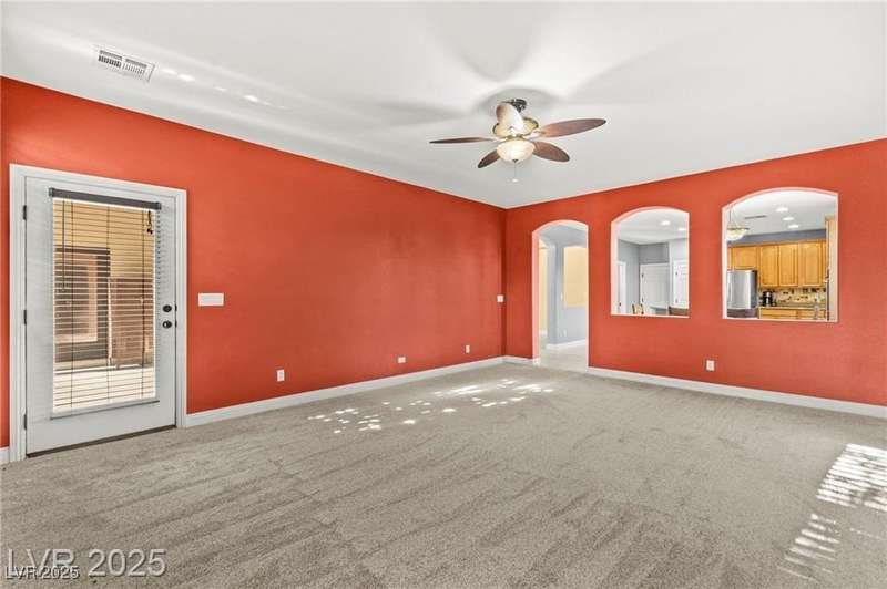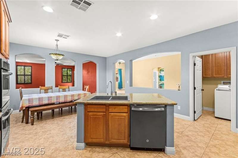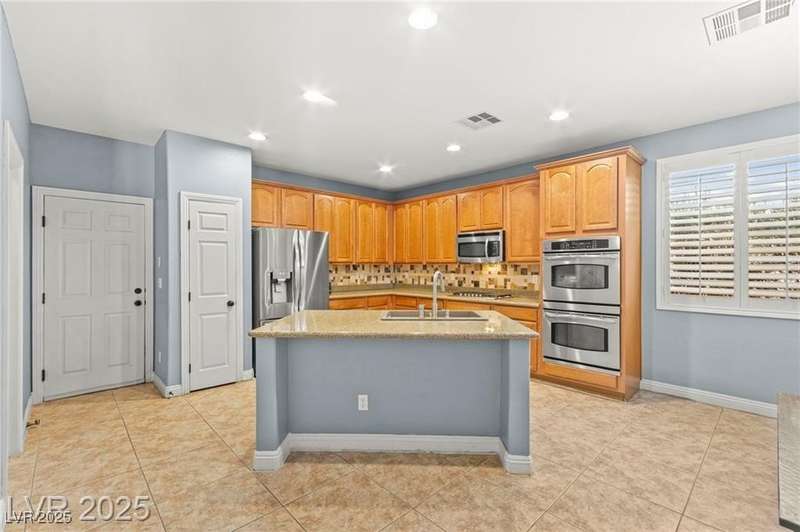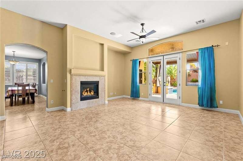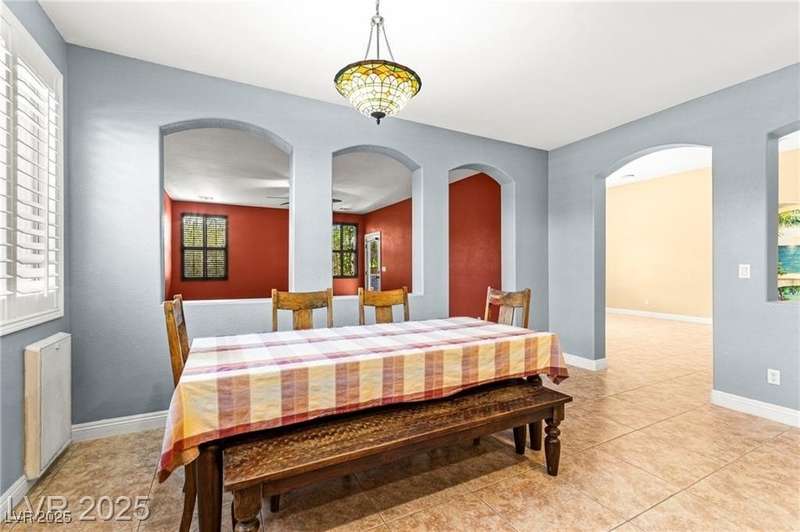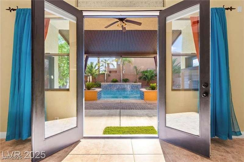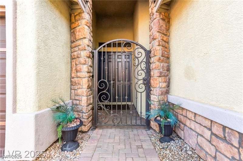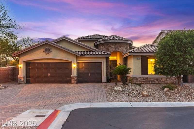 Welcome to this stunning single-story home on a spacious corner lot in the desirable gated community of Mountains Edge. This well-maintained residence features an open-concept floor plan perfect for modern living and entertaining. Step into your private backyard oasis—complete with mature trees, manicured landscaping, a sparkling pool, separate spa, shaded seating, and a fully equipped outdoor kitchen. Ideal for relaxing weekends or gatherings with friends and family. Inside, you'll find four spacious bedrooms, two and a half bathrooms, a formal living room, and a separate family room for added flexibility. The chef’s kitchen shines with stainless steel appliances and ample space to cook, dine, and entertain. Energy-saving solar panels offer long-term value and lower utility costs. This home is the perfect blend of comfort, style, and functionality—don’t miss your chance to make it yours!