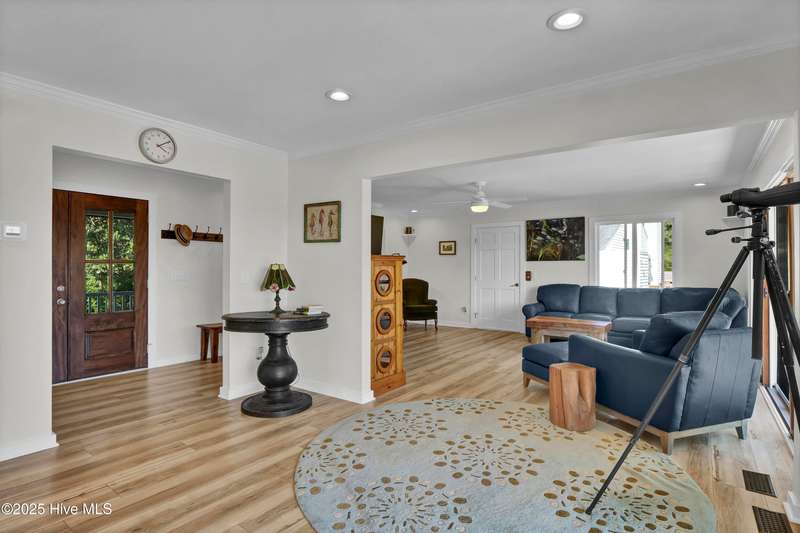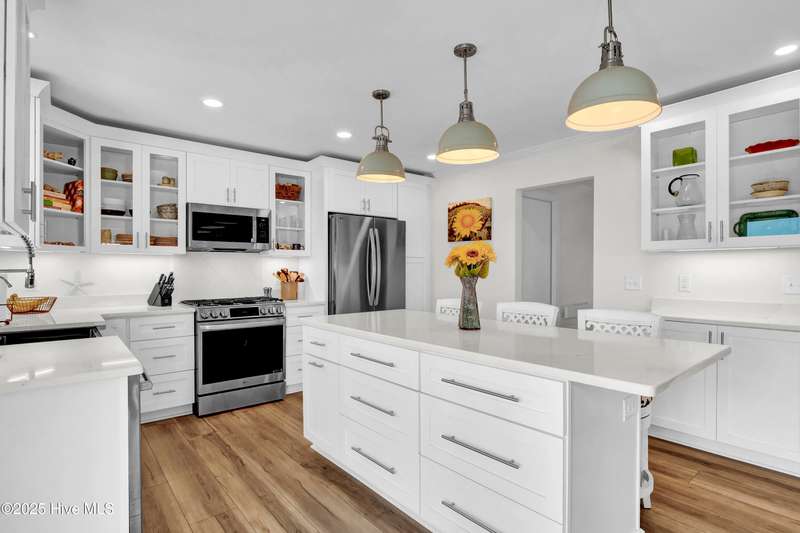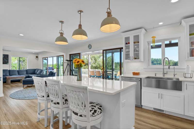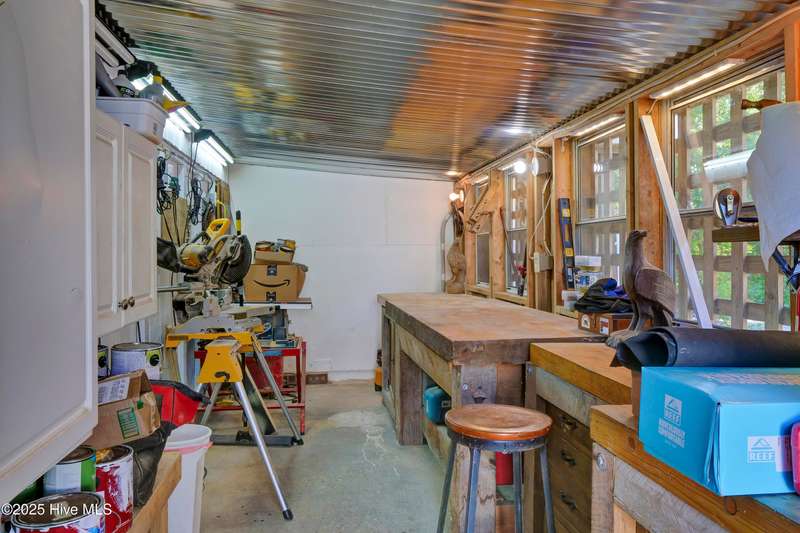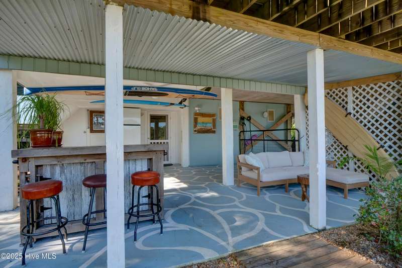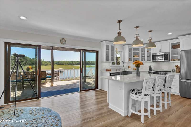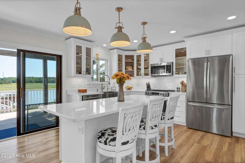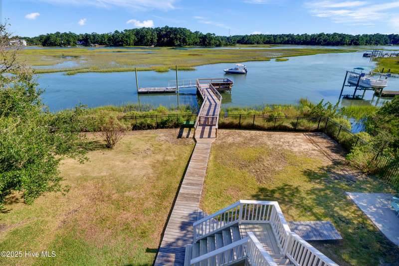 Ready for waterfront living? Spectacular location on Page's Creek with sweeping creek views and easy access to the Intracoastal Waterway. Experience the luxury of your private pier with 2 boat slips just steps off your deck! Great location on the creek with deep water boating. 2024 Renovations included a new metal roof, new windows, new HVAC including attic ducts and insulation, plus a new electric hybrid hot water heater. Beautifully renovated interior with new kitchen and baths. Enjoy cooking in the pretty white kitchen that features a stainless farmhouse sink, LG dual fuel range, plus a spacious island making it the perfect spot for entertaining or casual dining. Electric fireplace in family room combines ambiance and a cozy space for cooler weather. Access the 3-bedroom 2 bath second floor via the pretty open staircase or choose a quick elevator ride. Stair free access as the elevator services all levels to make life simple. Newly refinished wood flooring throughout the second level living areas plus renovated baths with tile, quartz, walk-in shower in master bath and a claw foot tub/shower combo in the guest bath. Never worry about loss of electricity with the newly purchased and completely paid for 14 panel 2 battery solar system that powers the house day and night. There is an additional whole house generator to back up the solar! Amazing outdoor living spaces with over 1,000 sq. ft. of covered porches, decks, and patios! Soak up the sun or have a relaxing afternoon in the shade, your choice. Downstairs tiki bar area, large outdoor shower with hot water and a peek a boo view of the creek. Workshop area plus a detached shed for storage. Mature and lush landscaping provides a home for wildlife, yet it is minutes to Mayfair, Wrightsville Beach, or easy access to I-140 and downtown. No HOA and low county taxes. Ready for coastal living and boating? This is the one!